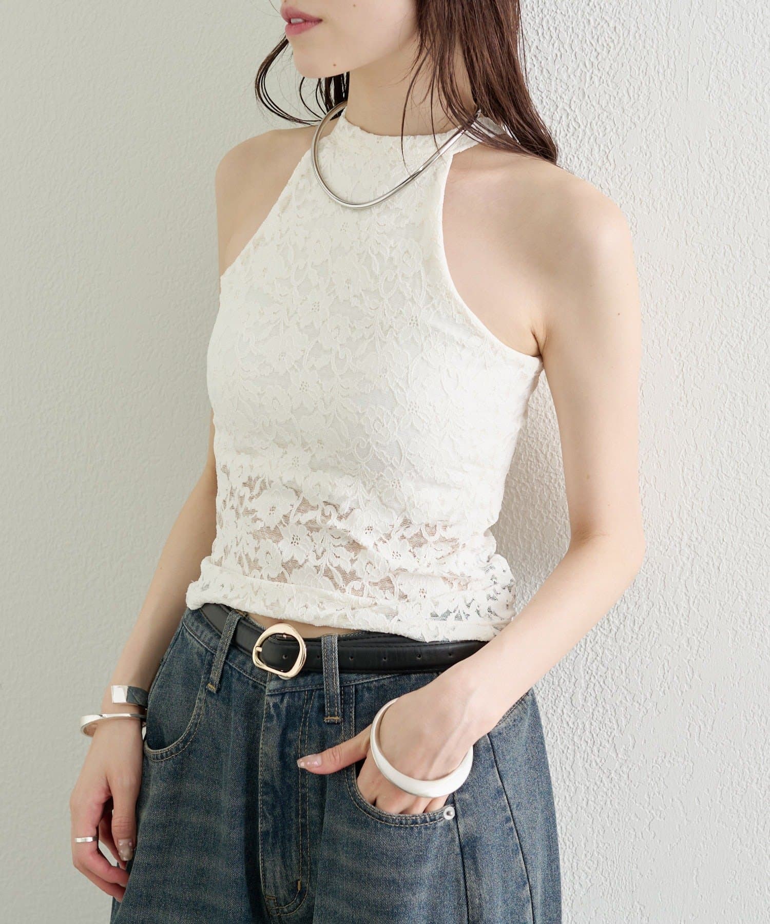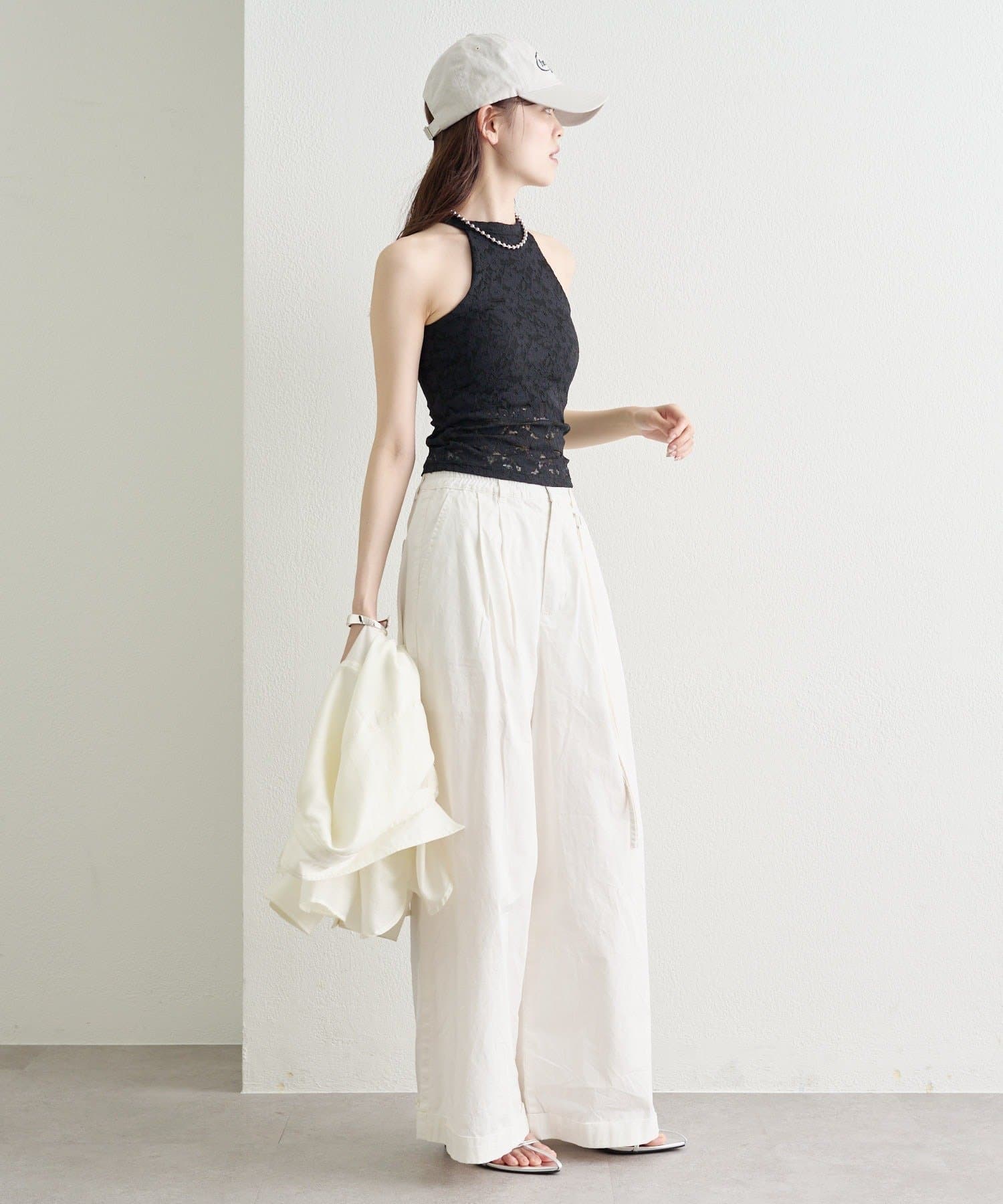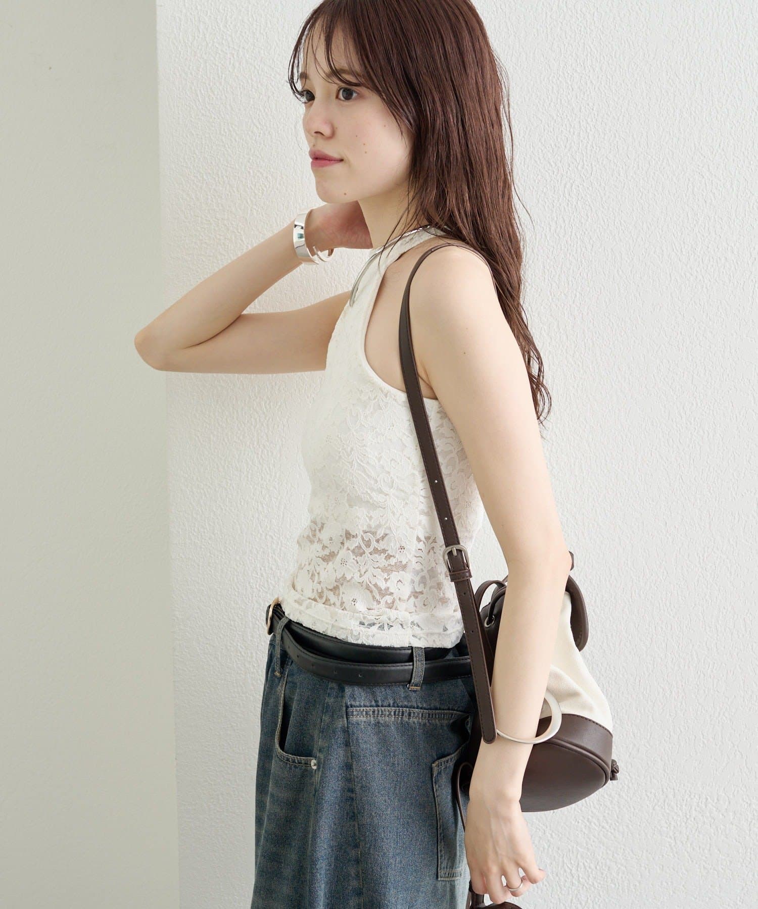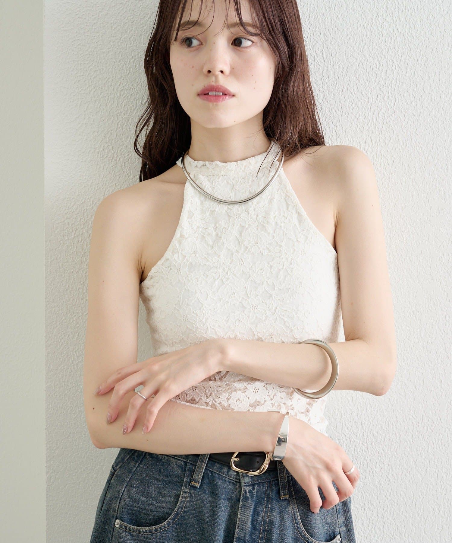 デニムやワイドパンツと合わせて、甘さをプラスしたカジュアルな着こなしに。