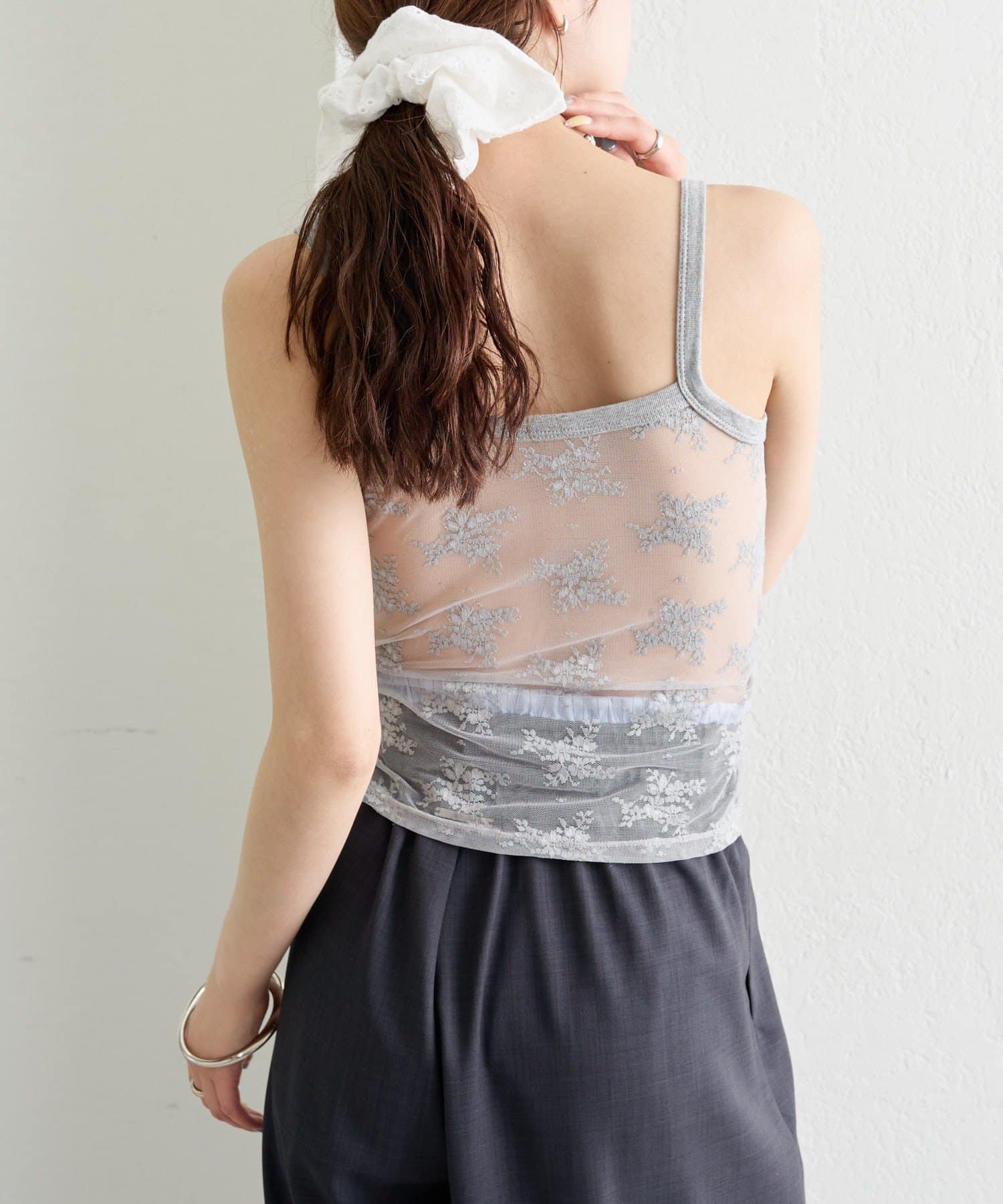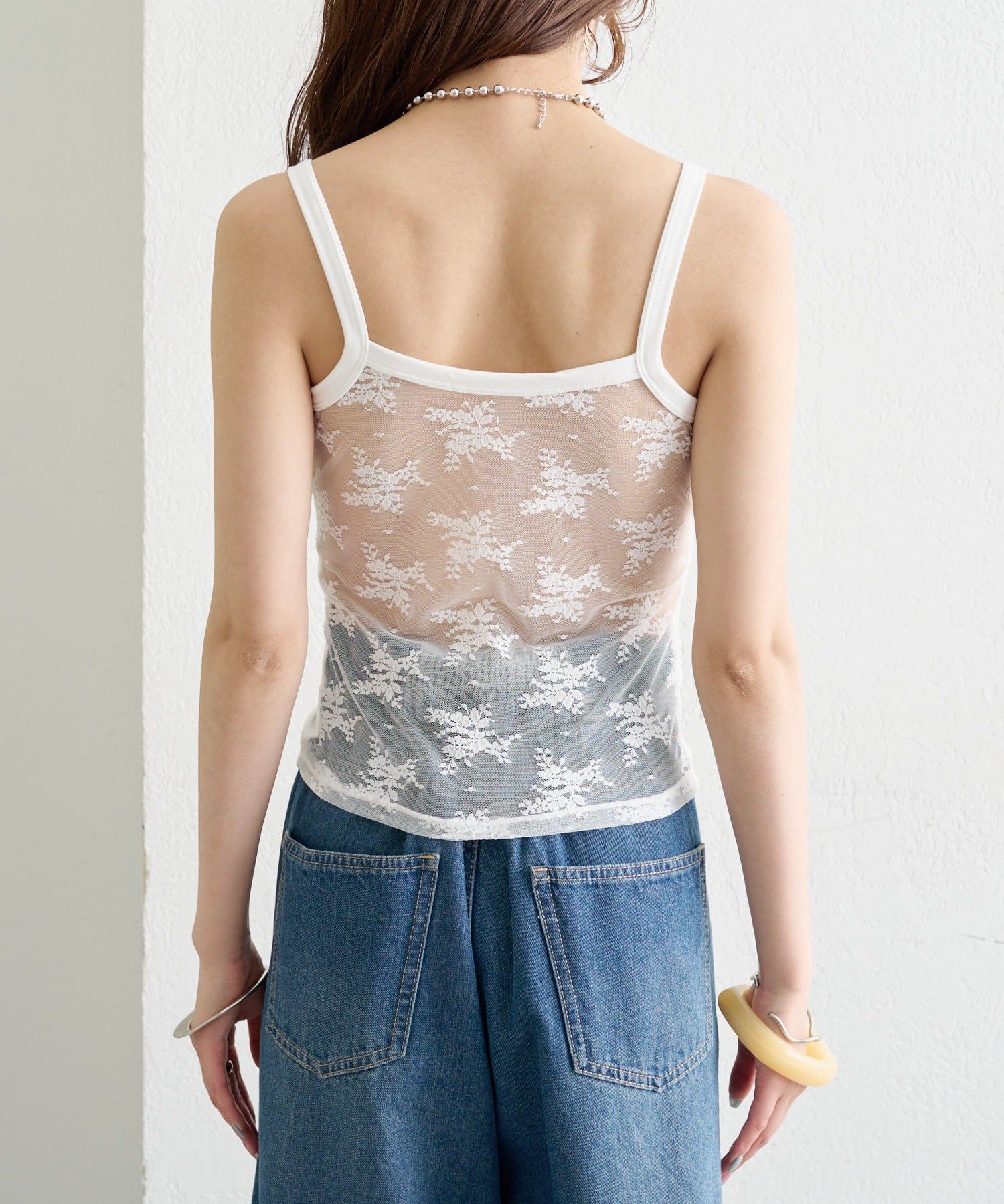 繊細なレースを贅沢に使用した、バックシャンデザインのキャミソール