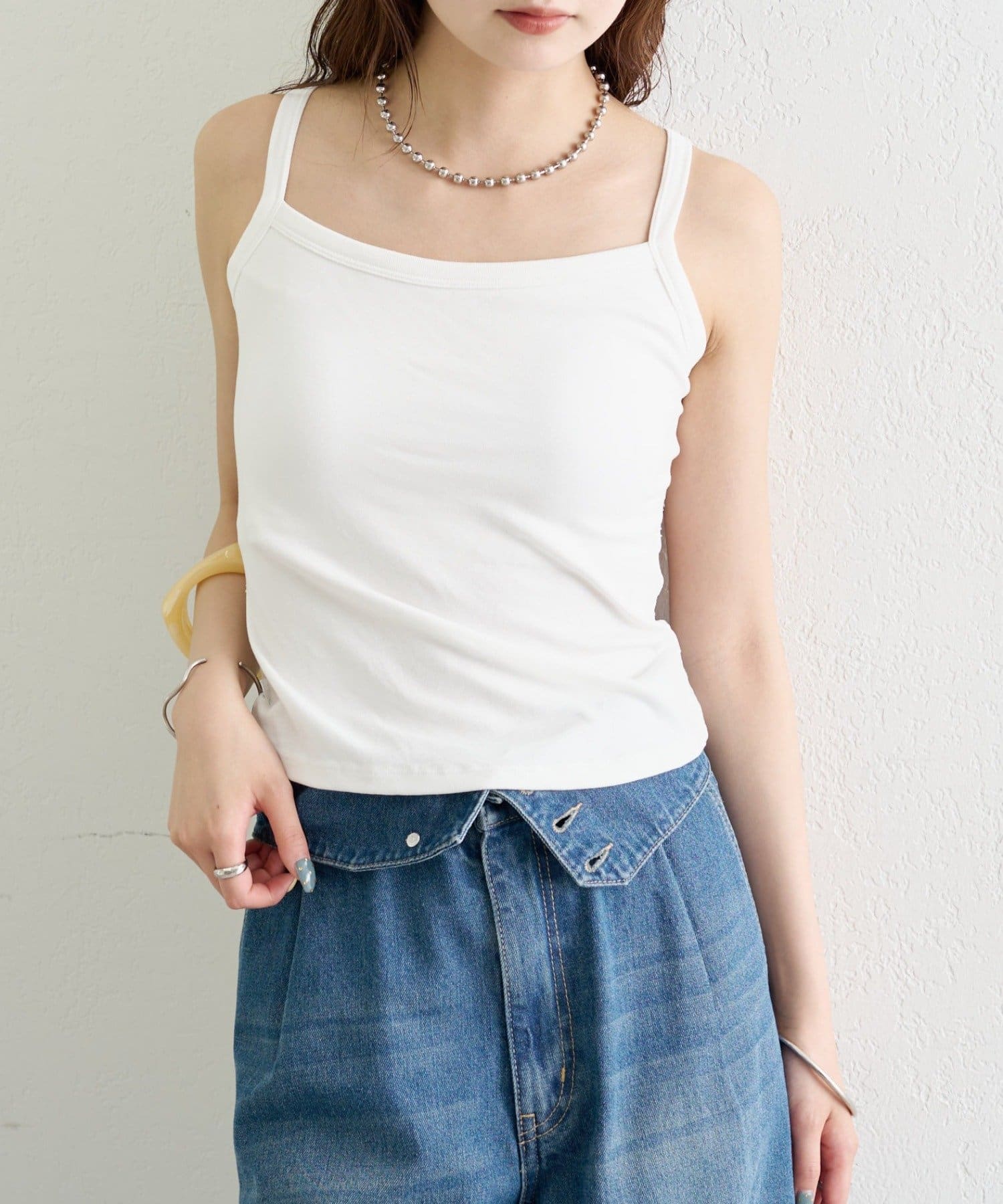 カジュアルからフェミニンまで、幅広いスタイリングに合わせやすいアイテムです。