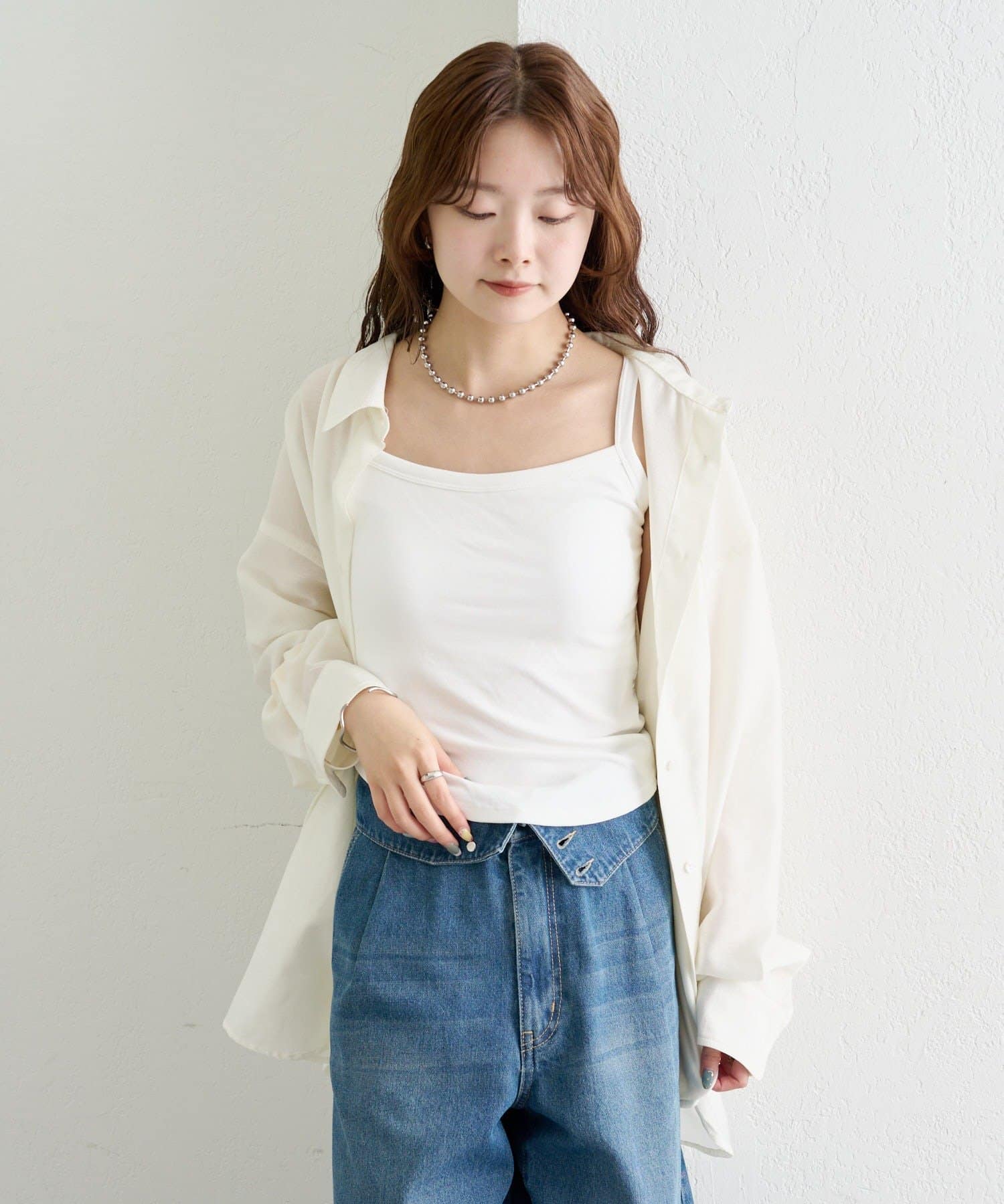 デニムやワイドパンツと合わせてカジュアルに着こなすのがおすすめ。