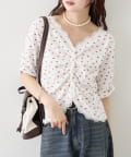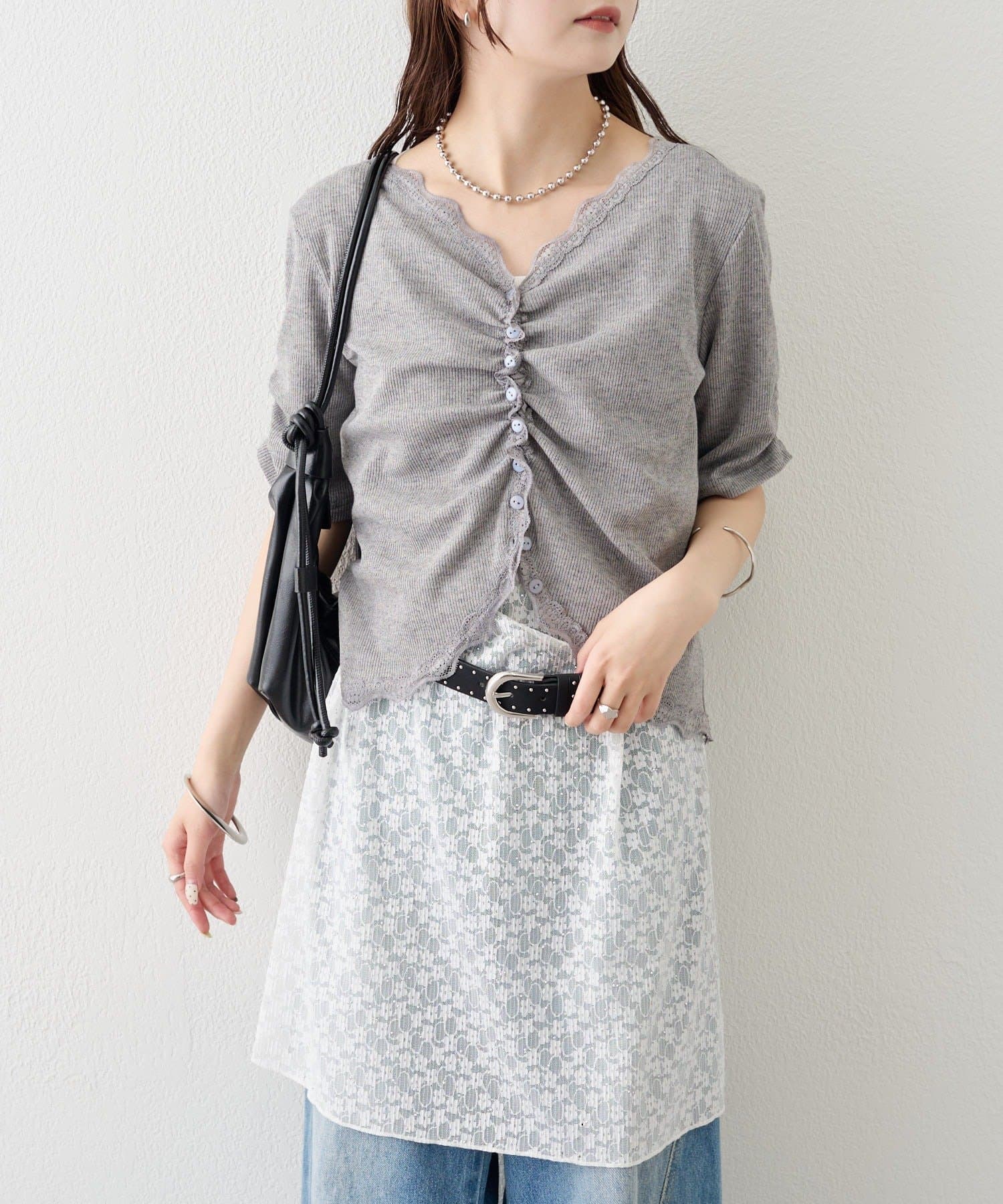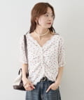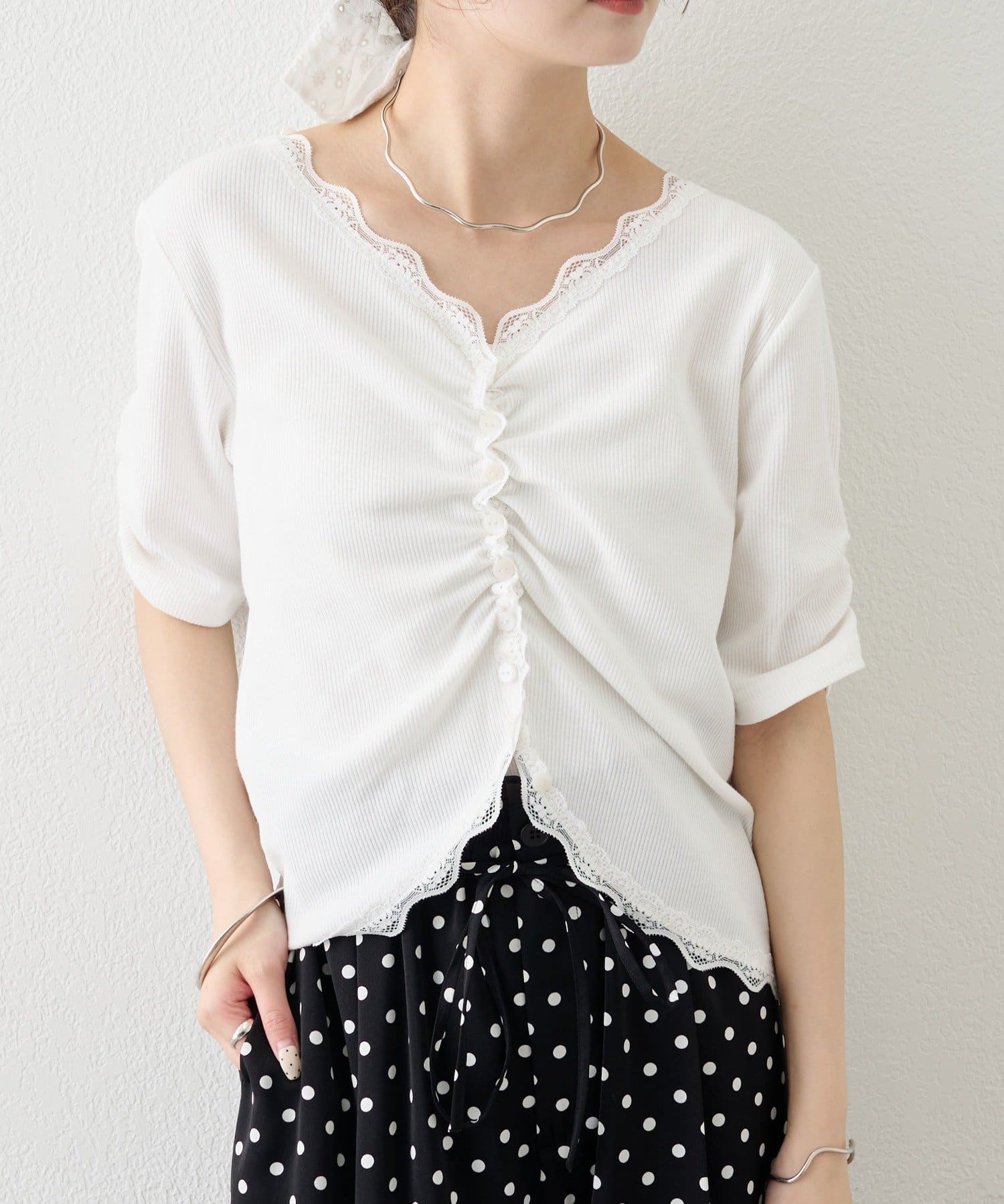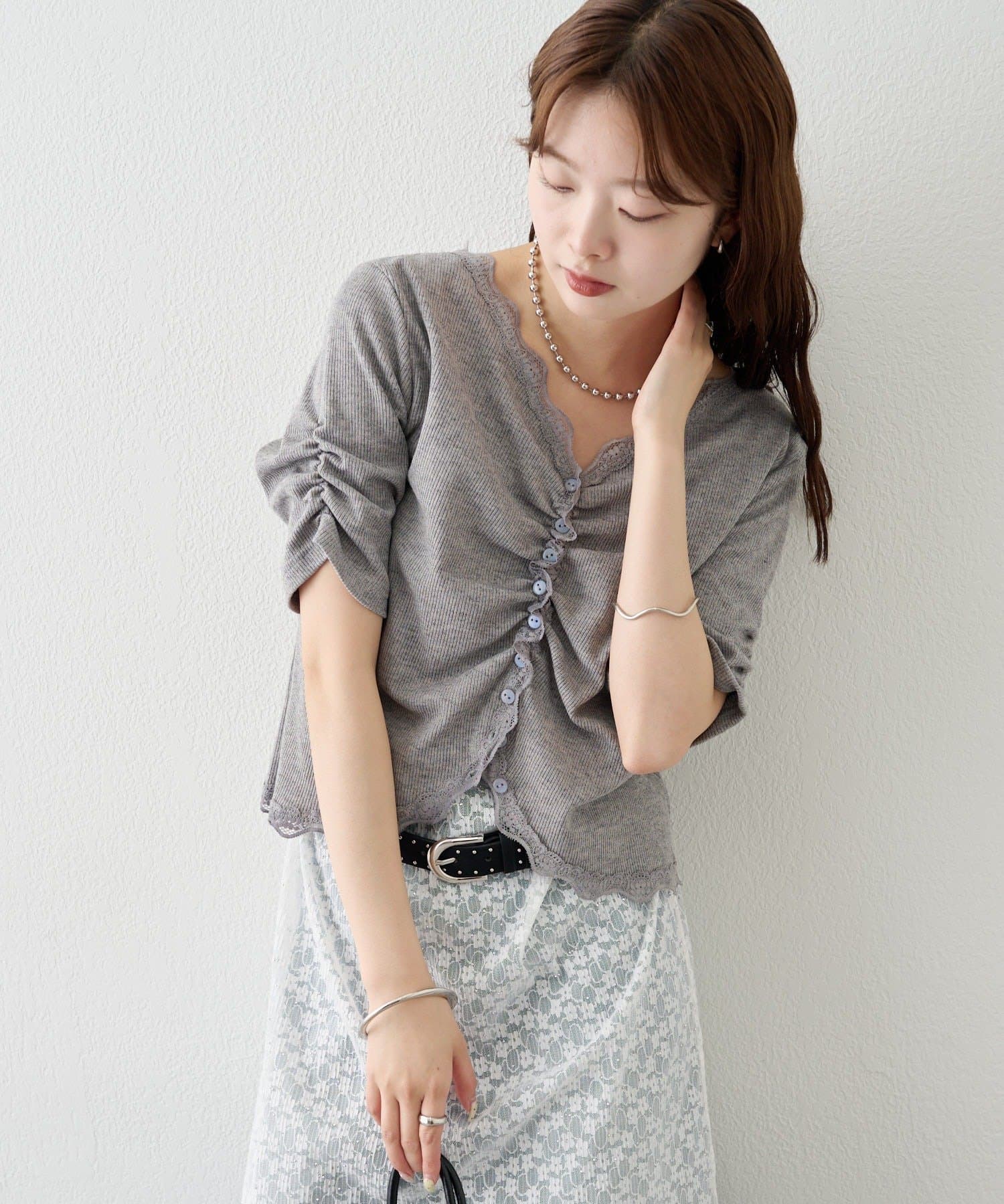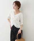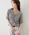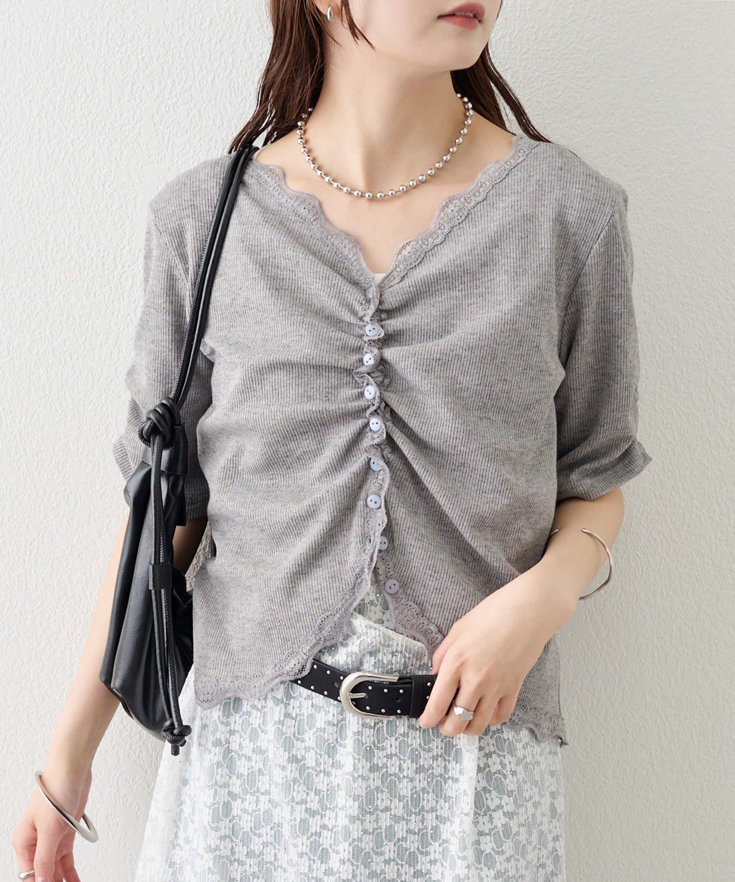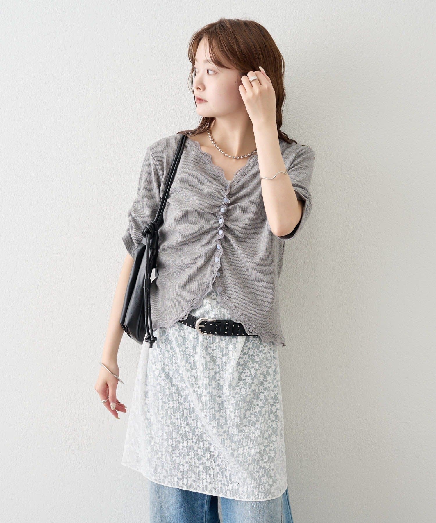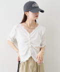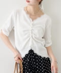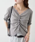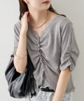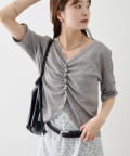 • mystic(ミスティック) 《人気のため半袖登場!》半袖ギャザーリブカーディガン