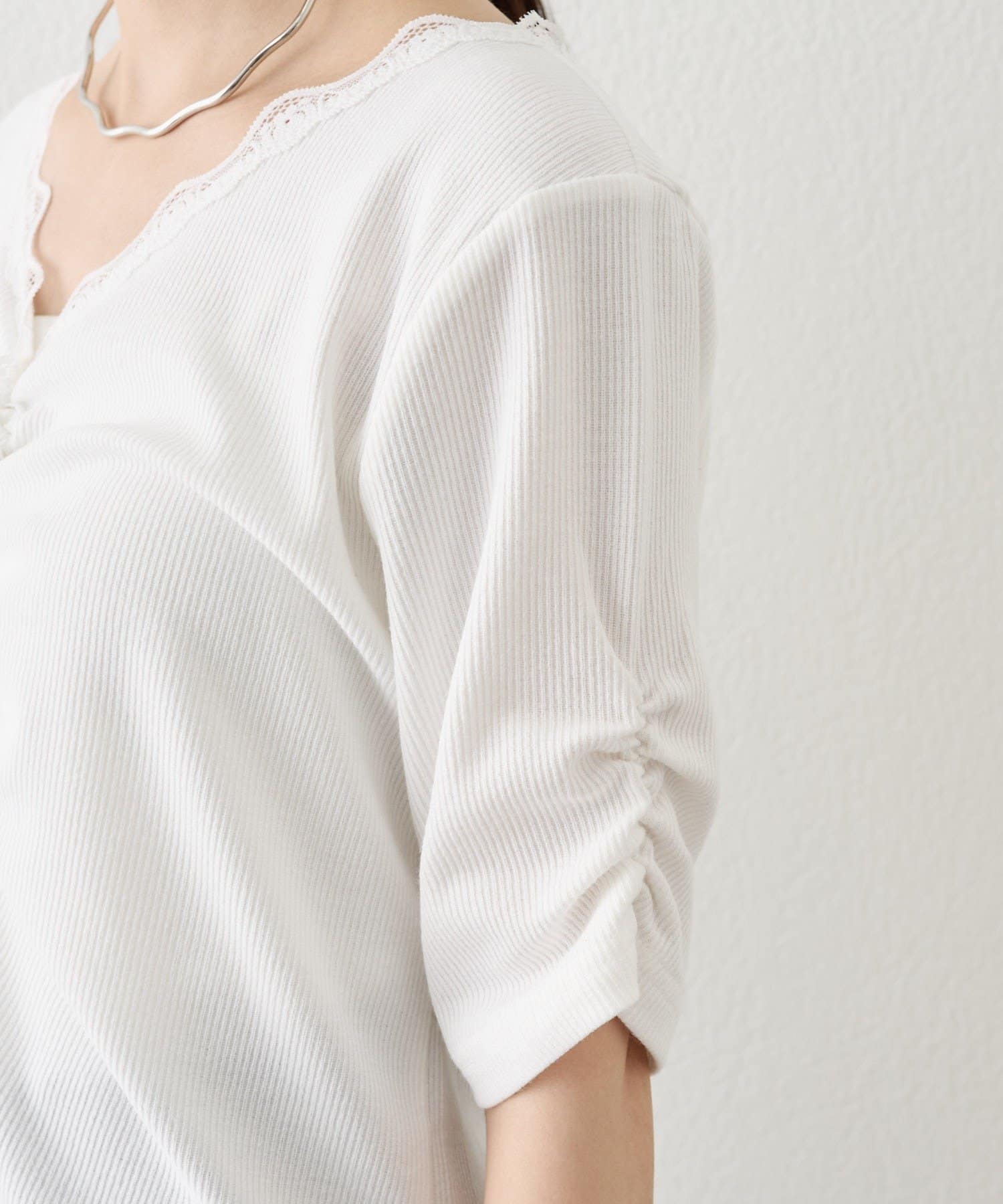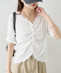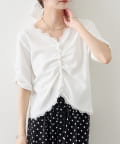 TOP > mystic > レディース > トップス > Tシャツ/カットソー > 《人気のため半袖登場!》半袖ギャザーリブカーディガン