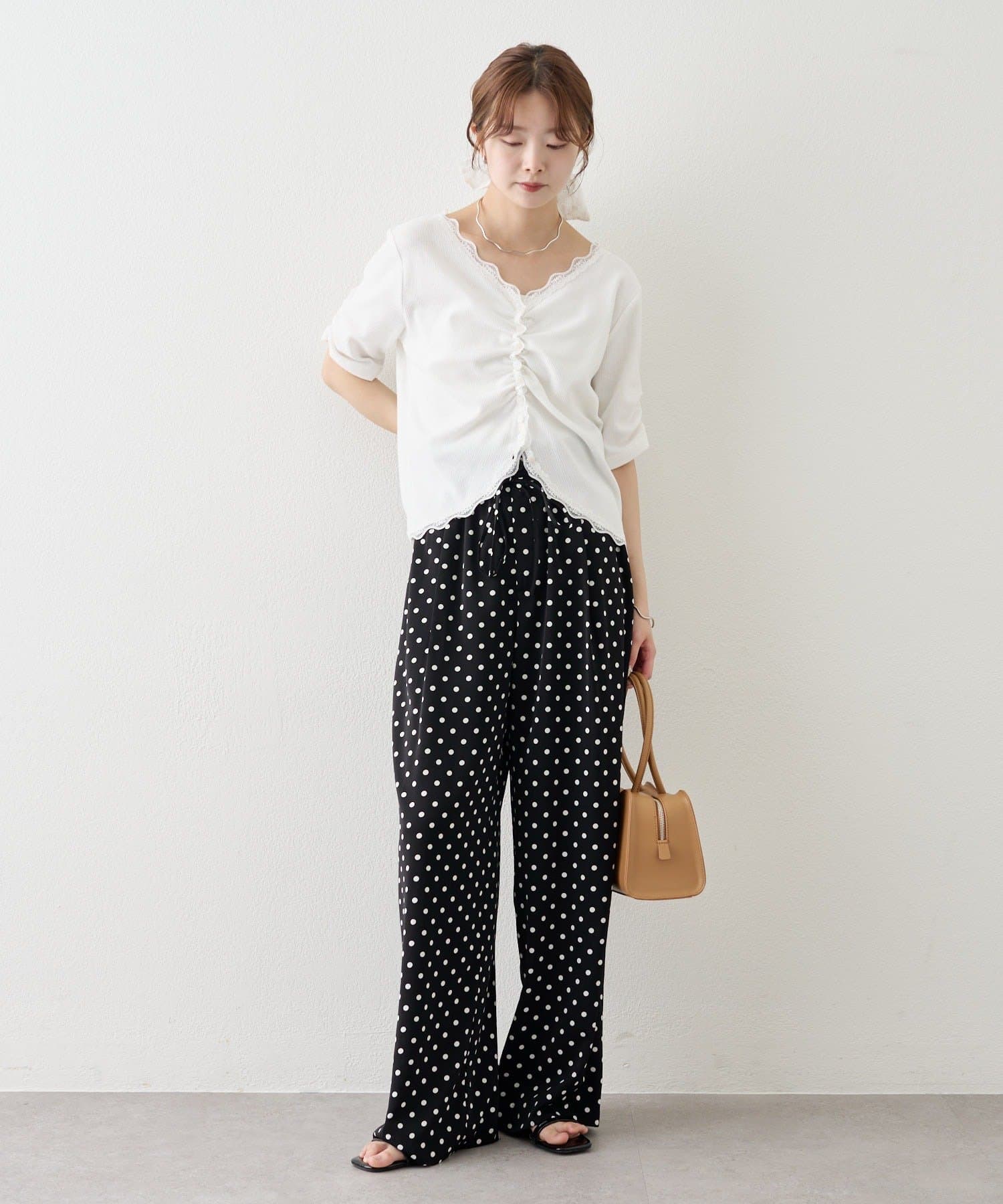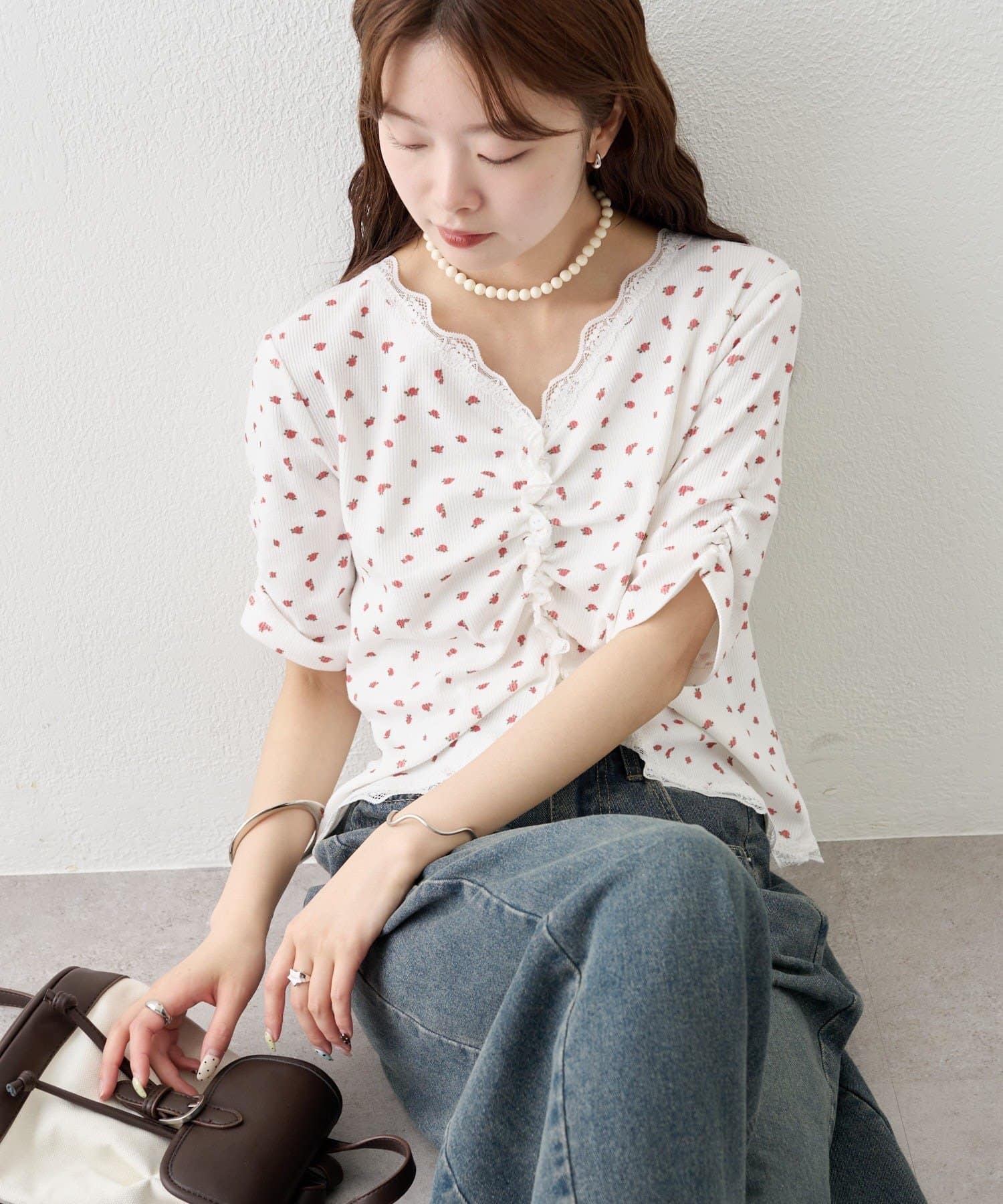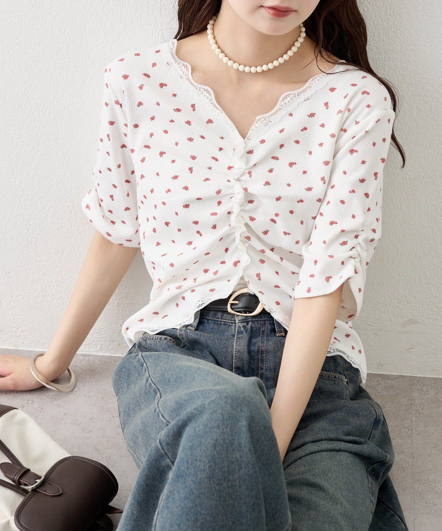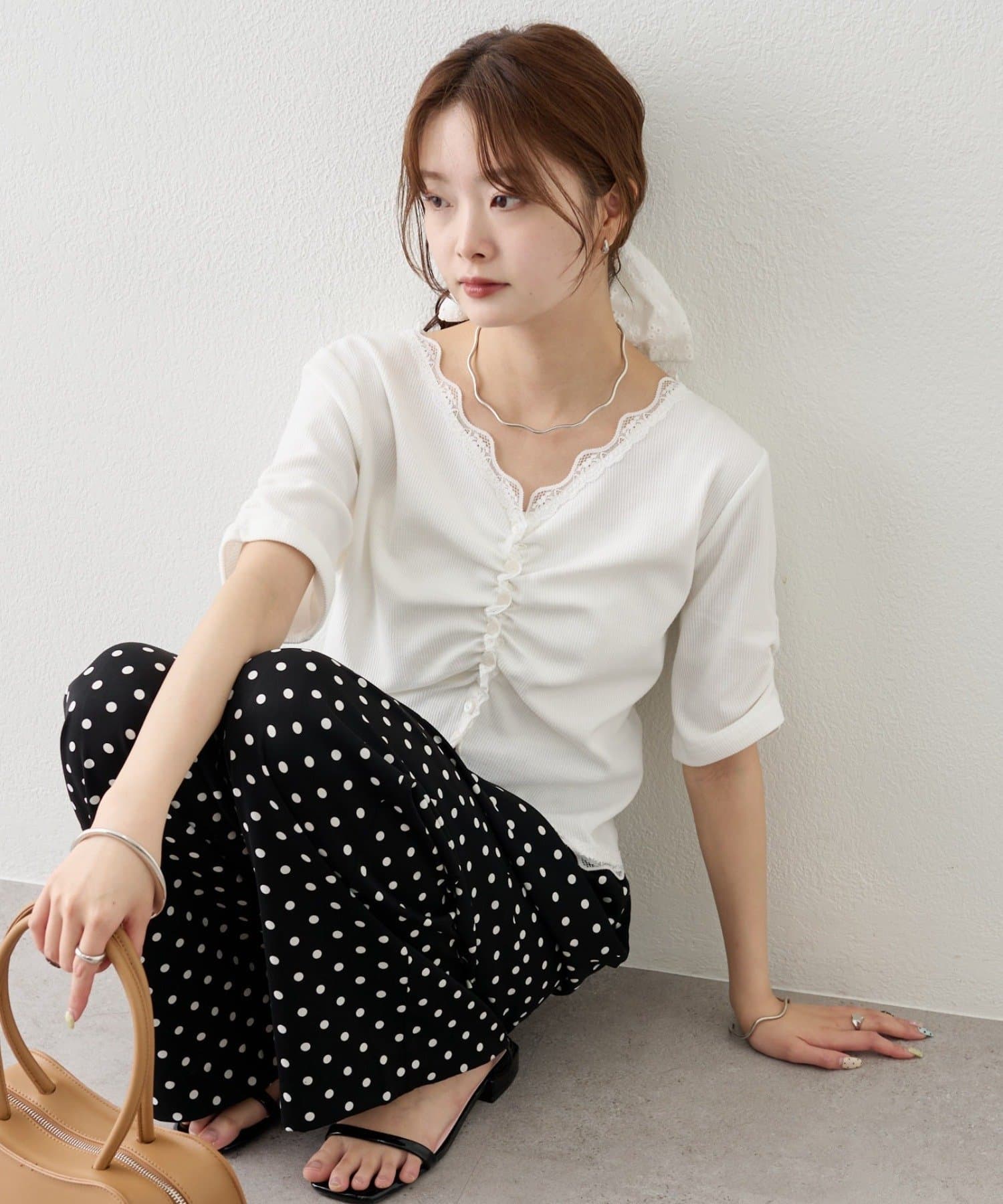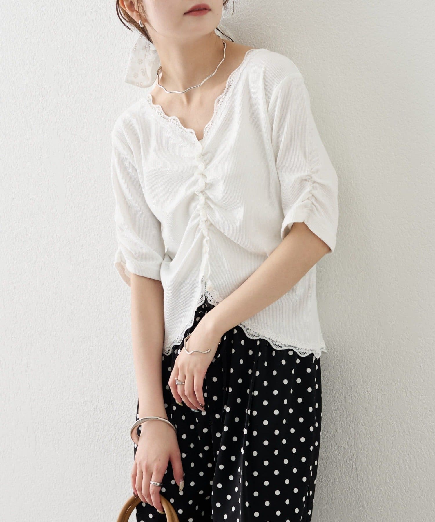 ・デニムやワイドパンツを合わせて、カジュアルフェミニンなスタイリングに。