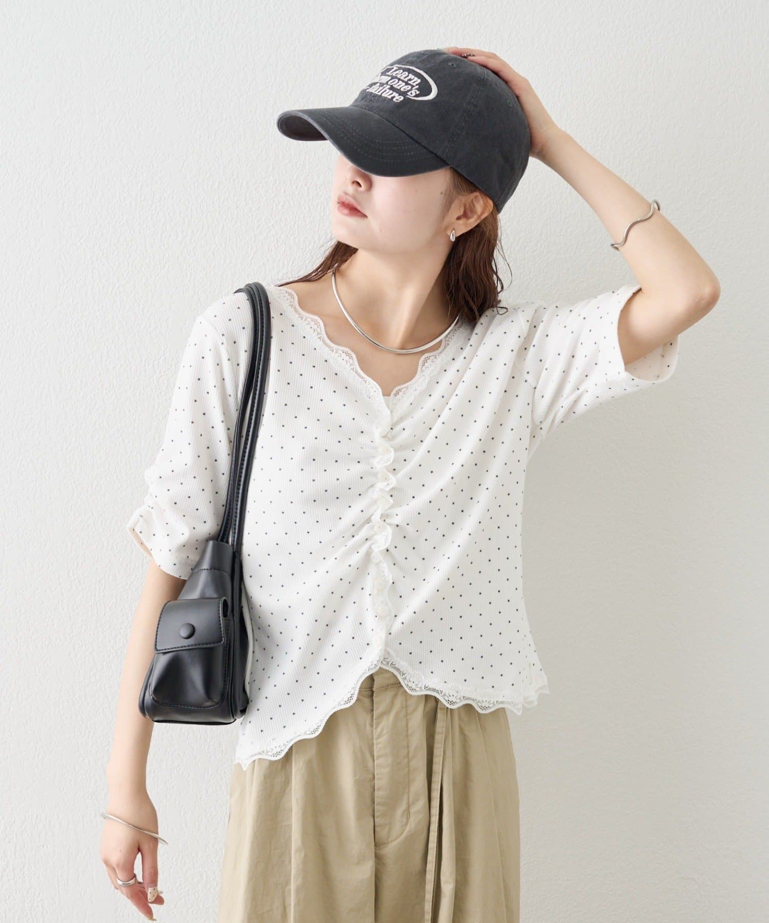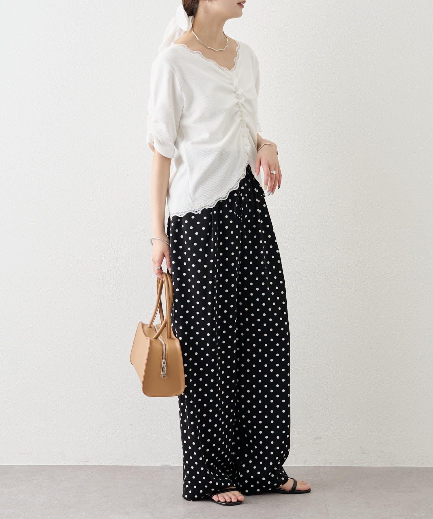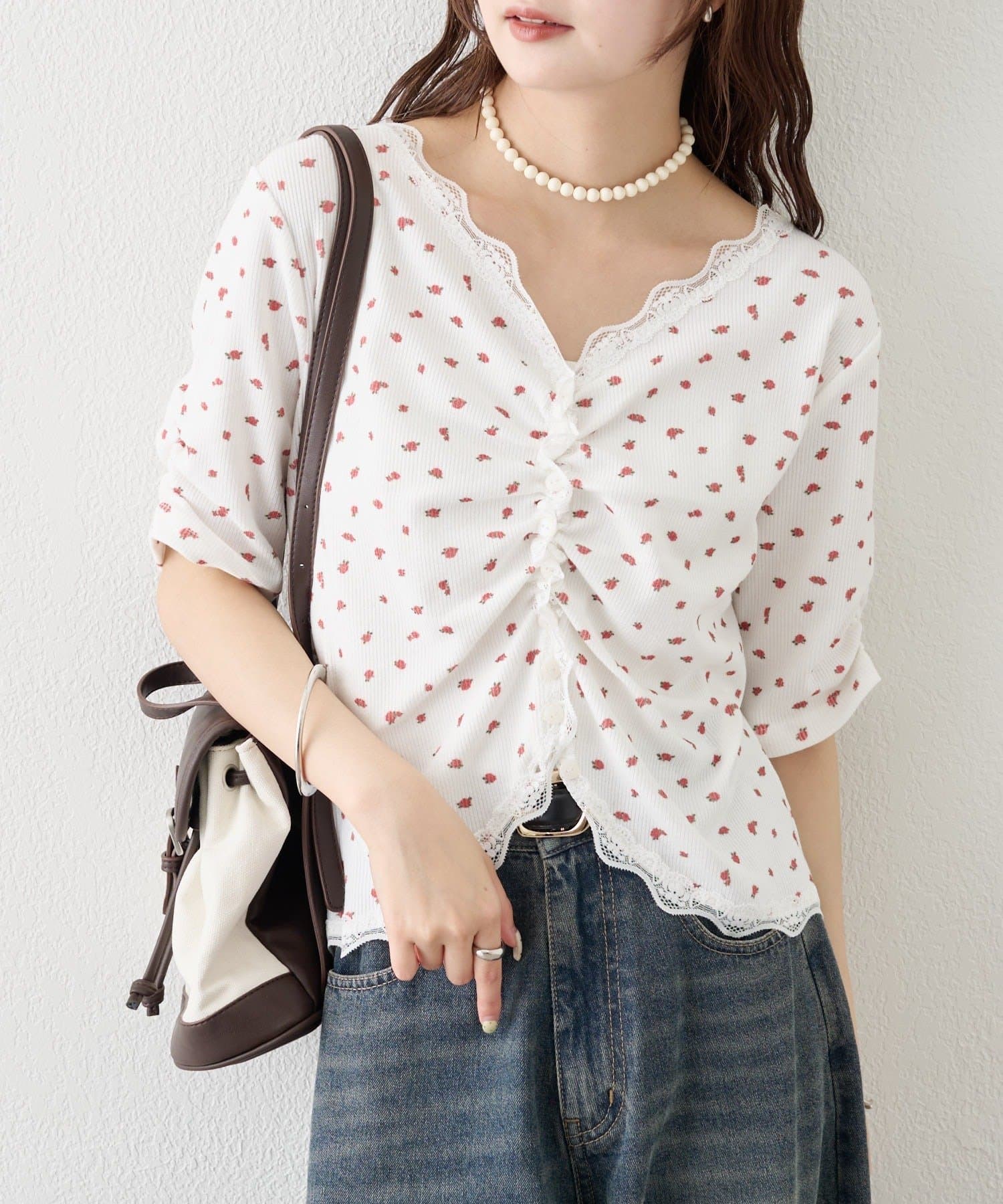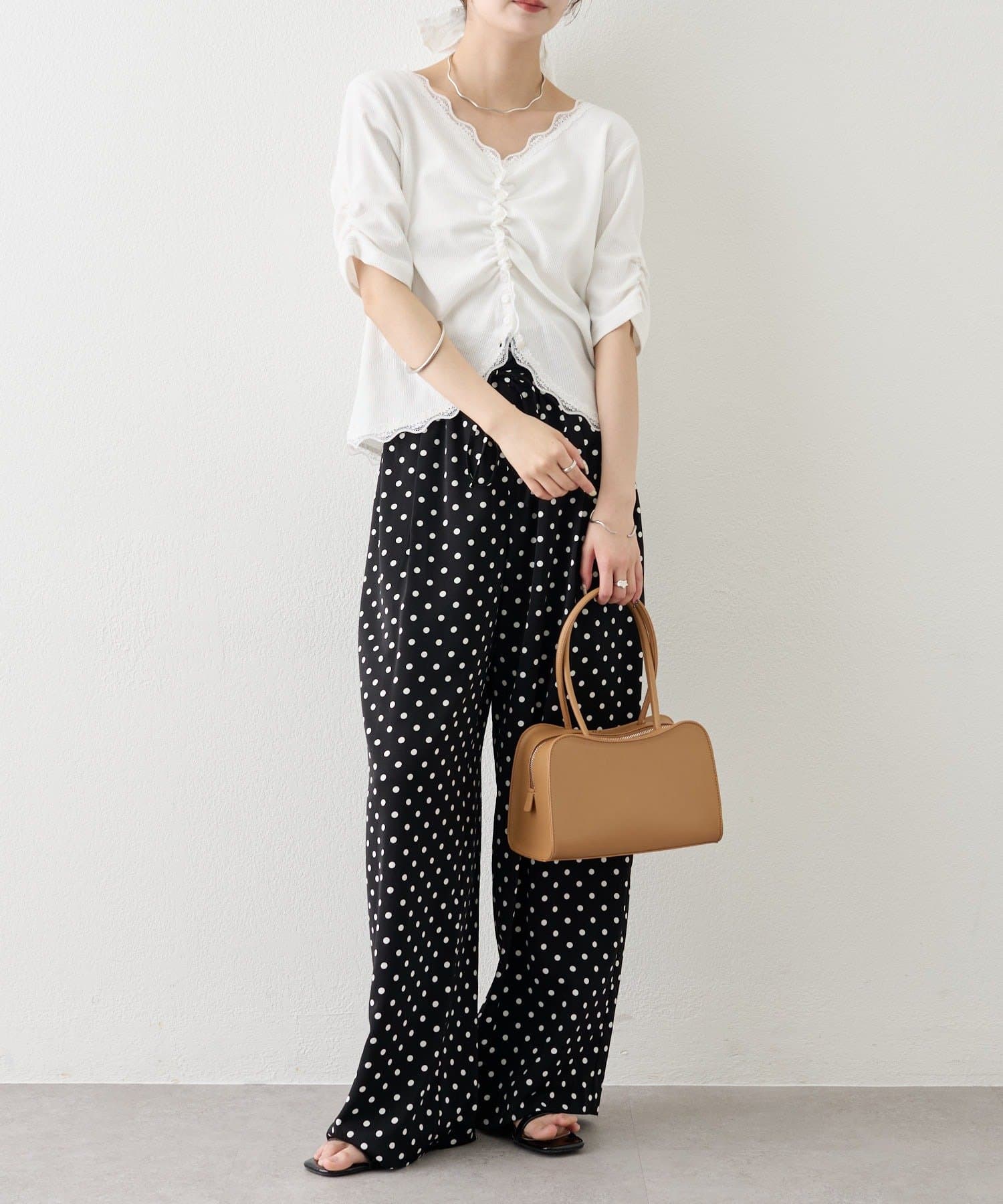 ・デニムやワイドパンツを合わせて、カジュアルフェミニンなスタイリングに。