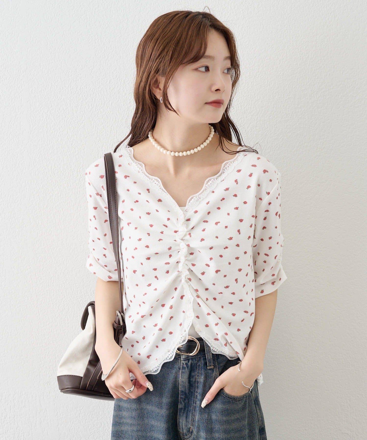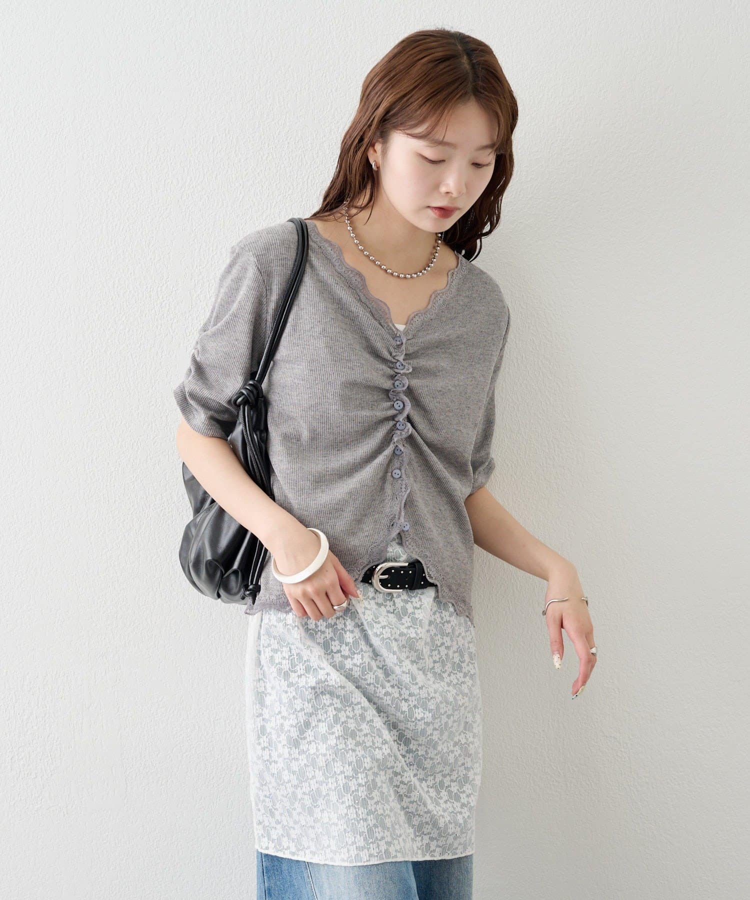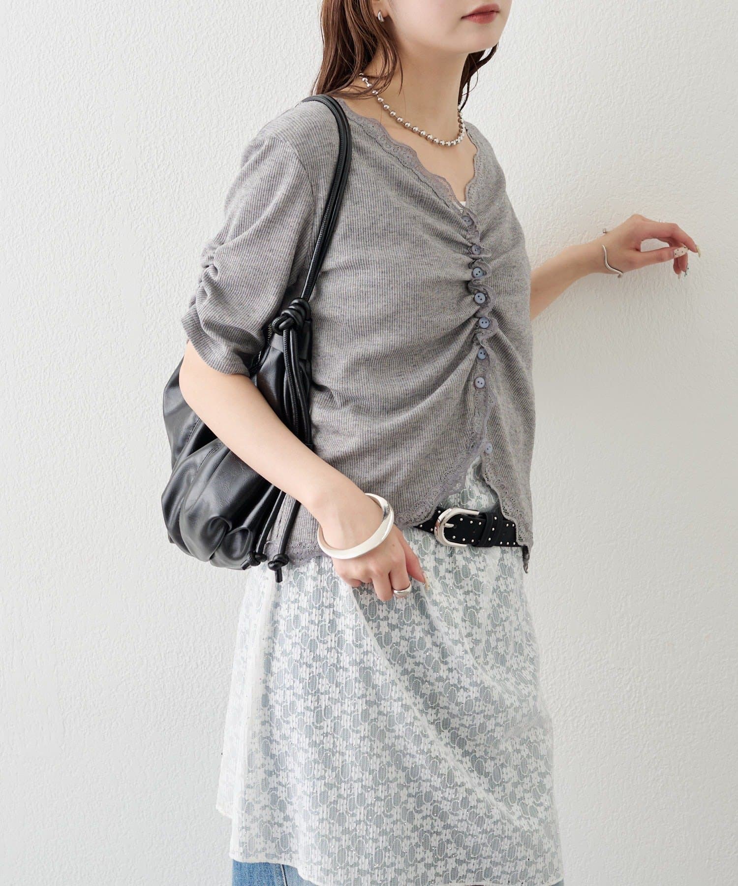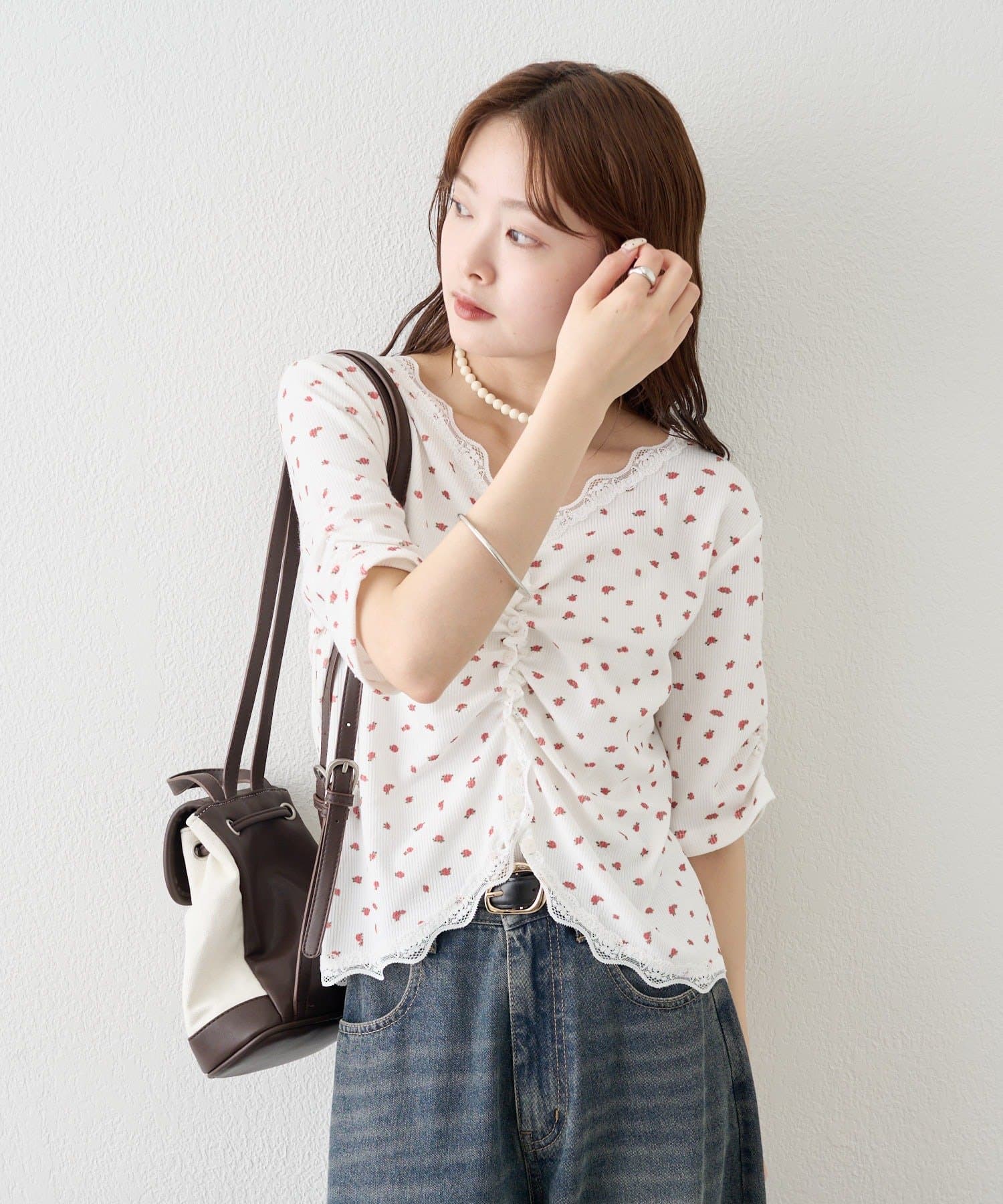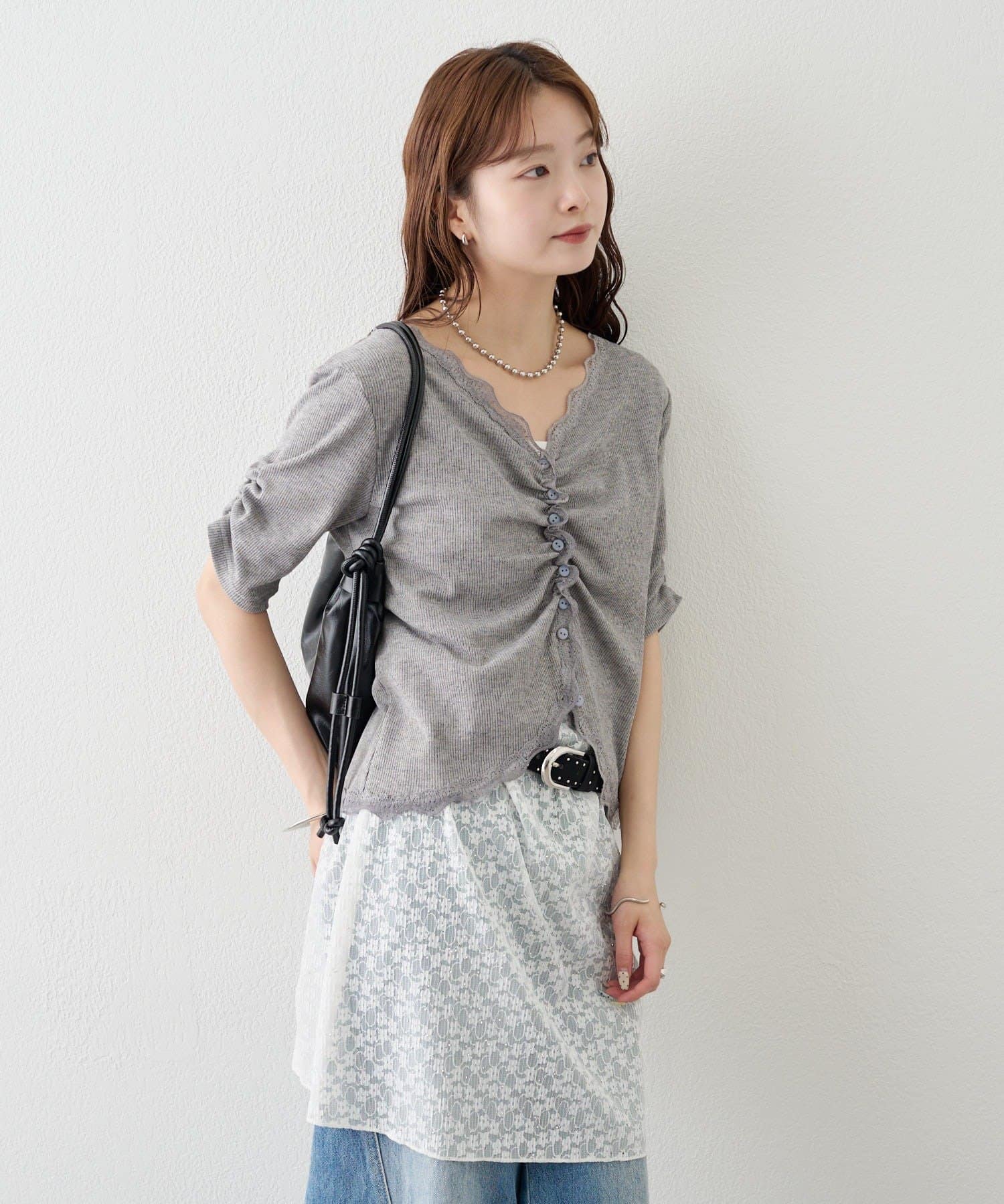 ・デニムやワイドパンツを合わせて、カジュアルフェミニンなスタイリングに。