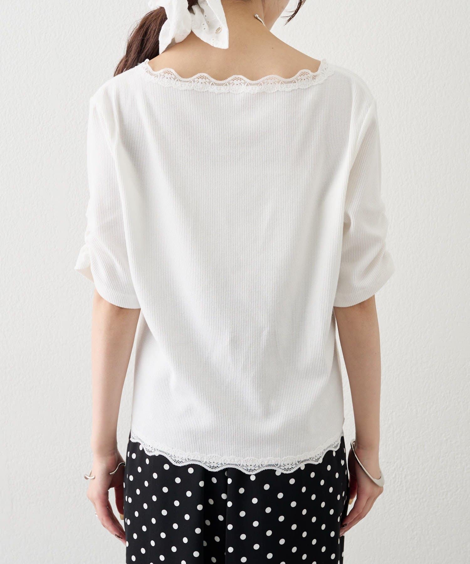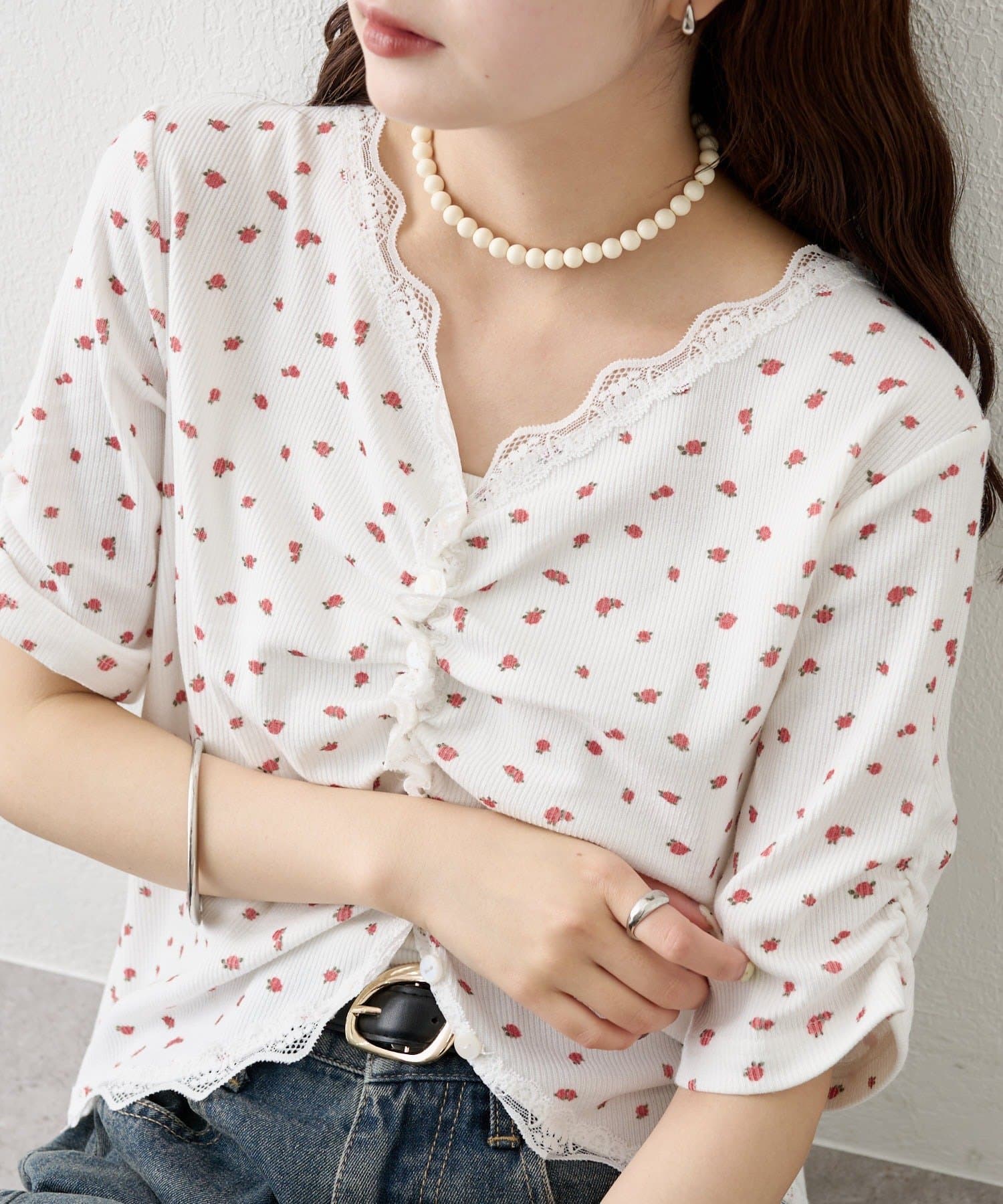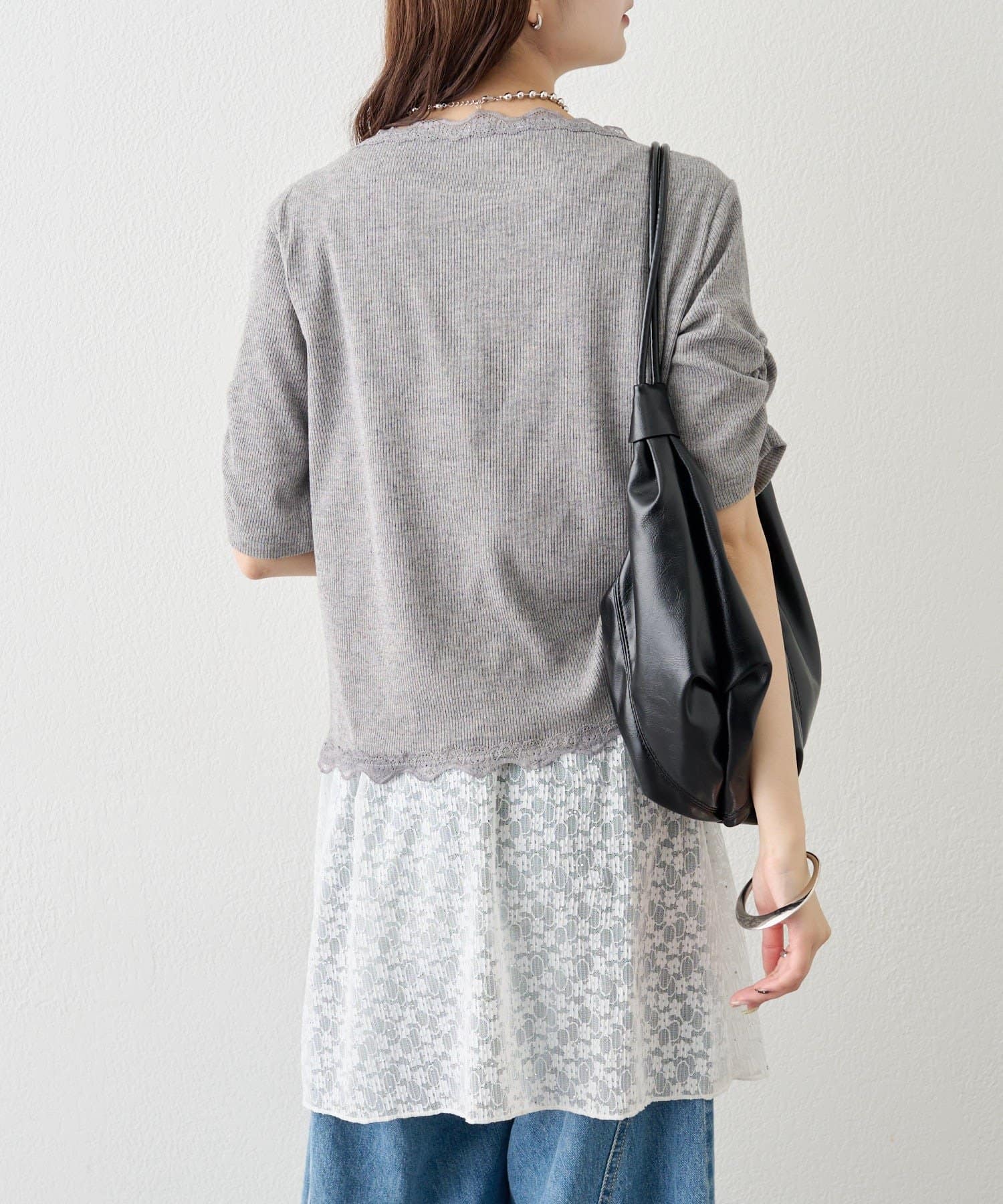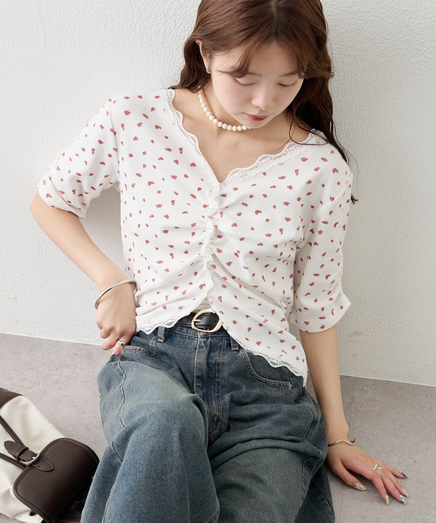 ・デニムやワイドパンツを合わせて、カジュアルフェミニンなスタイリングに。