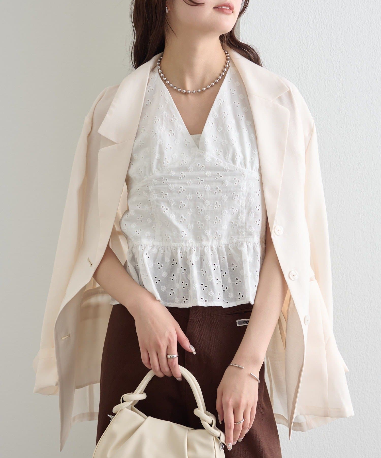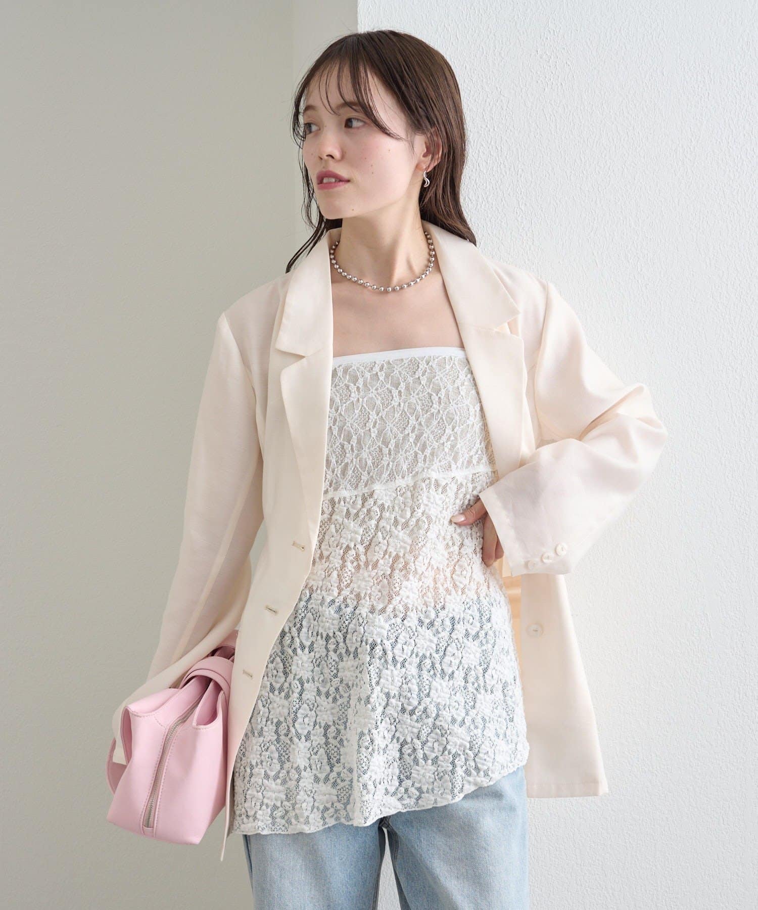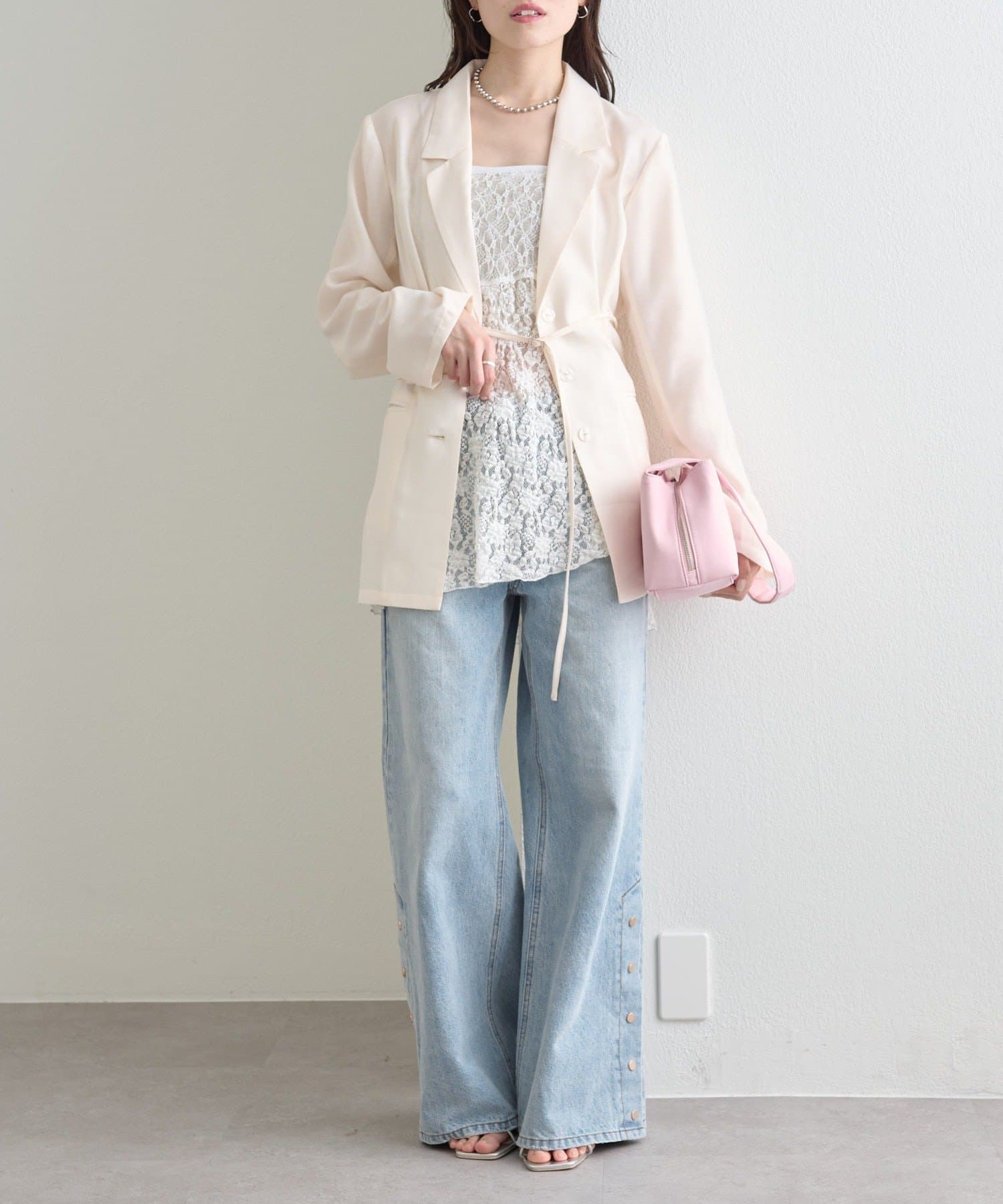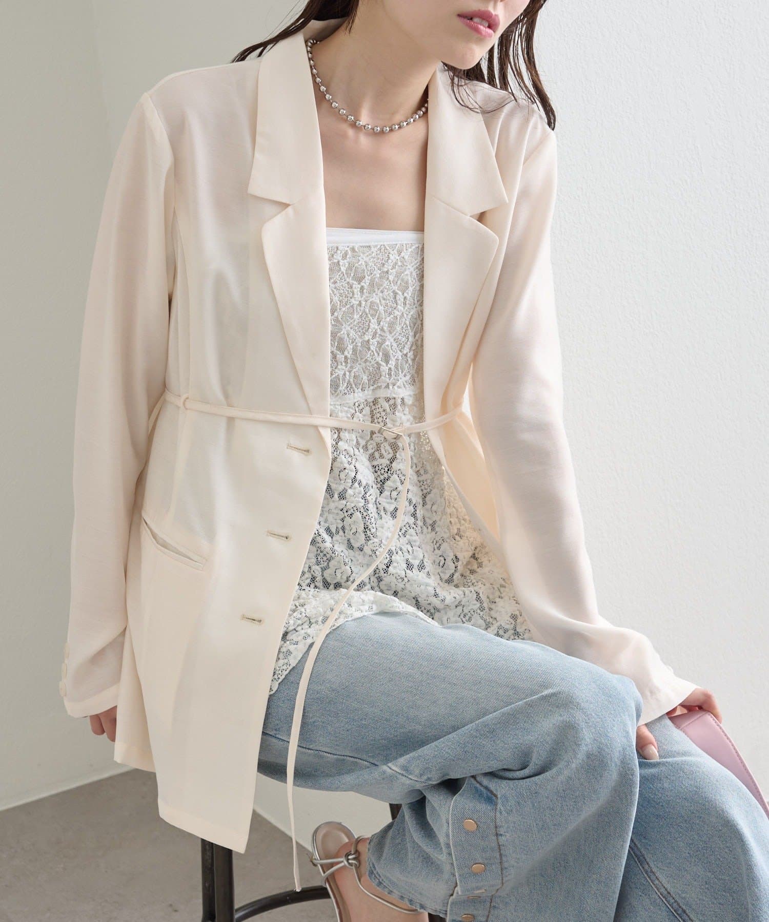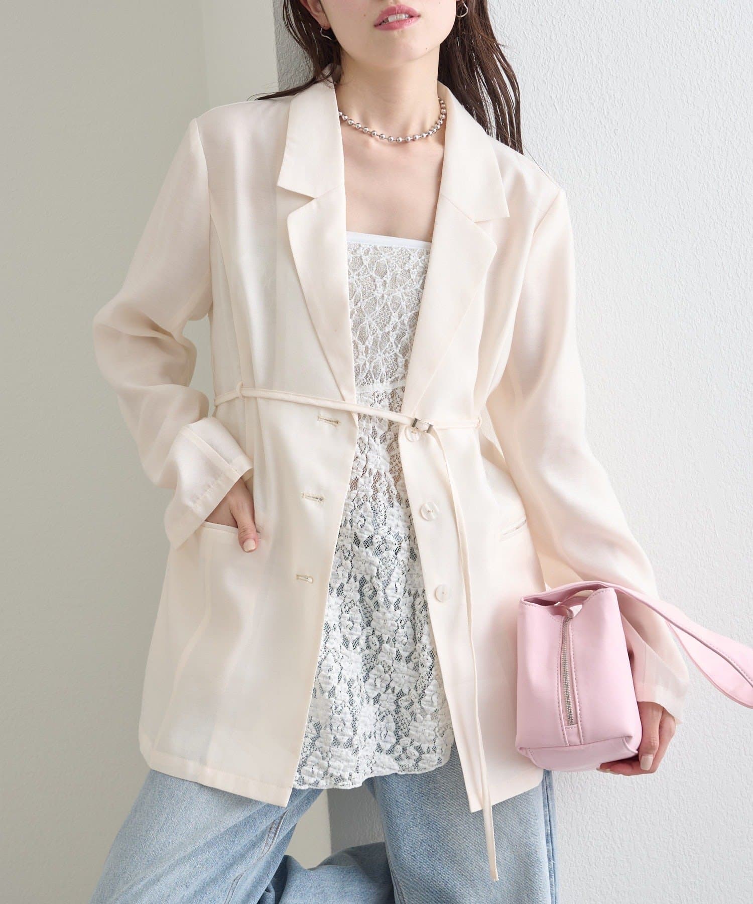 ・程よい透け感が魅力のシアー素材で、軽やかに着られるジャケット。
