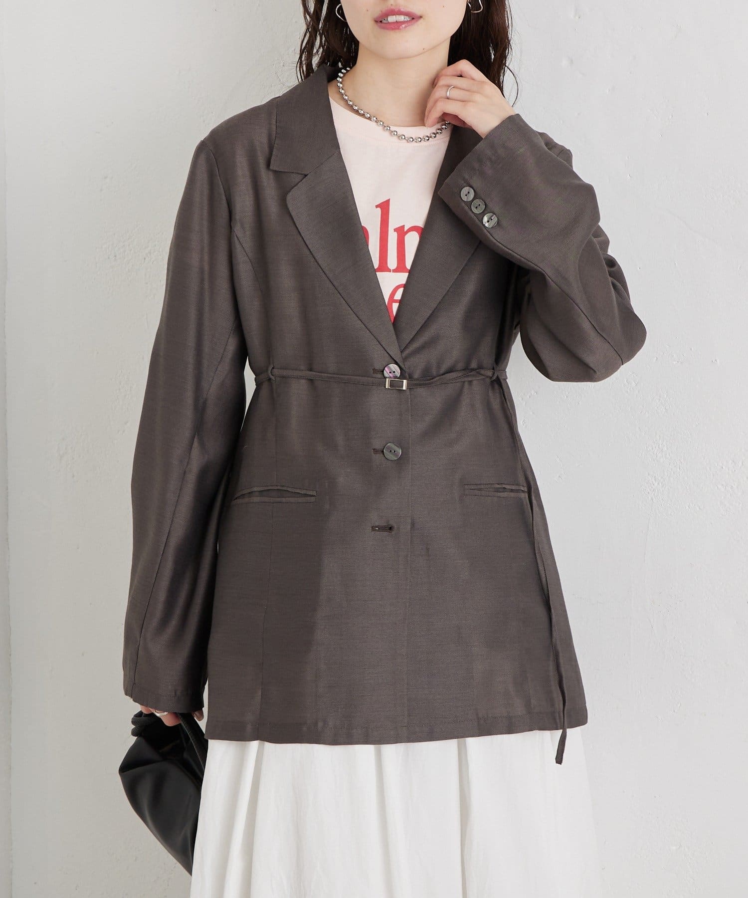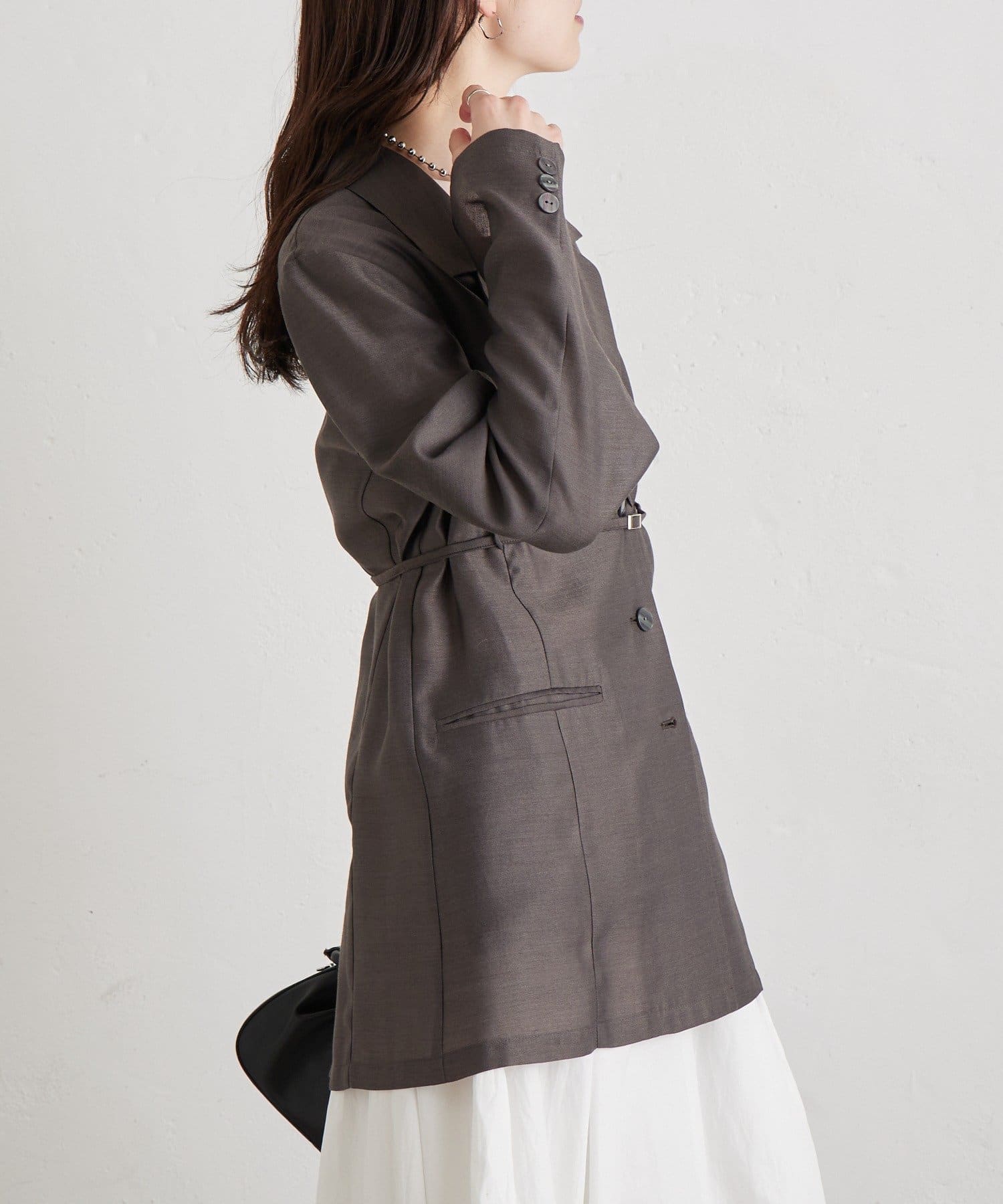 羽織るだけで品よく決まるベルト付きジャケット