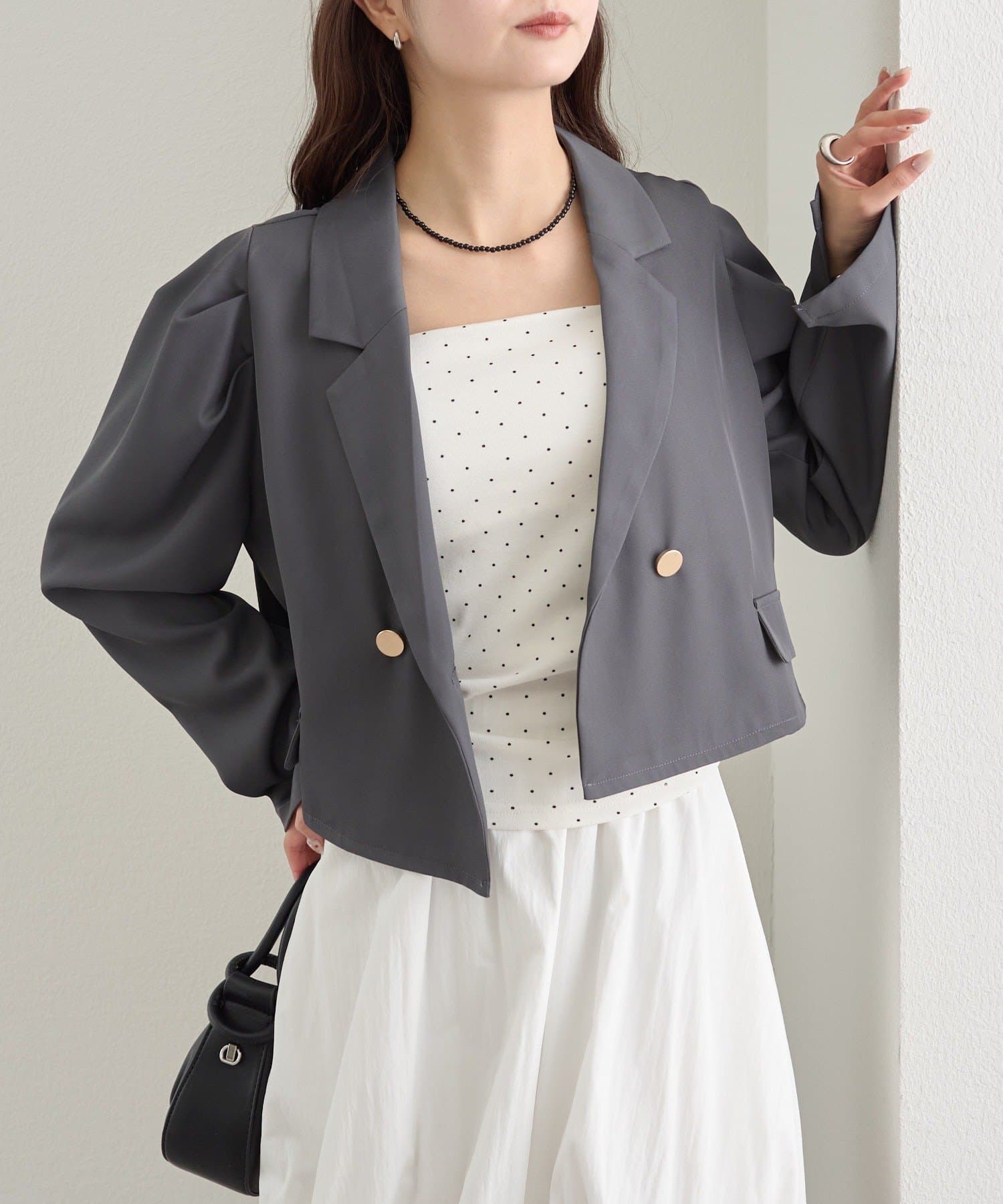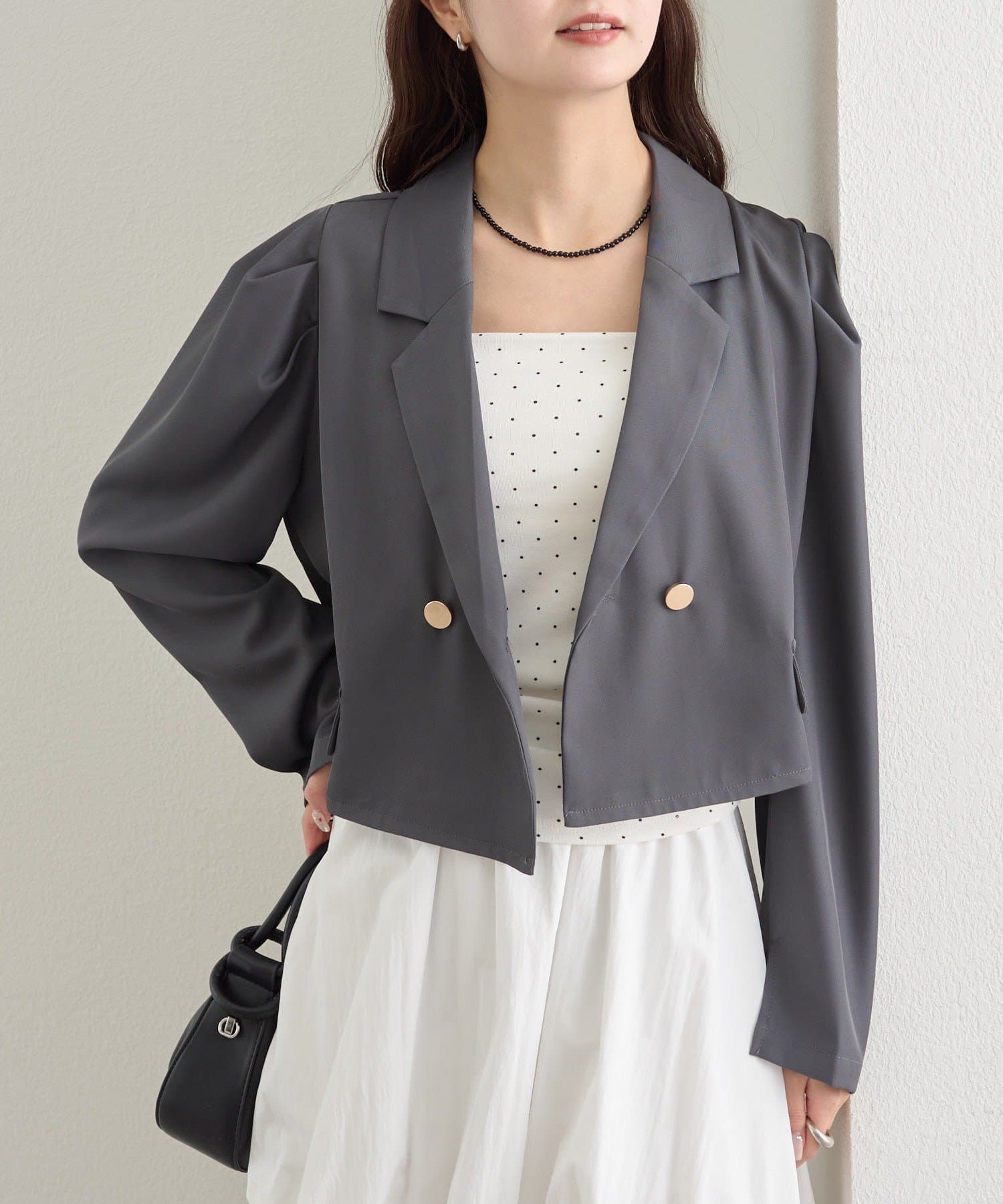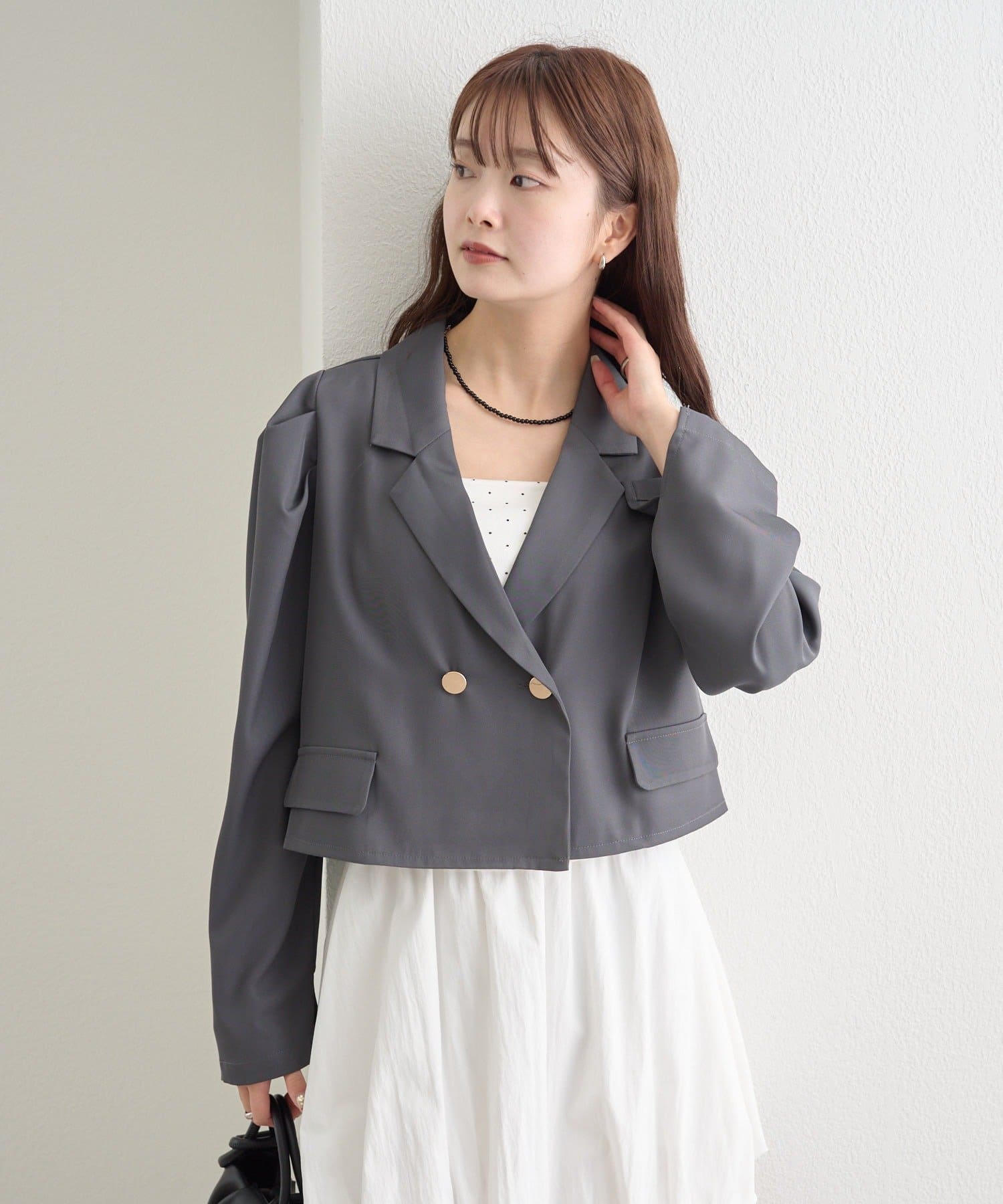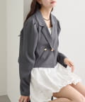 ・ダブルボタンデザインで大人っぽさもありつつ、コンパクトな丈感でスタイルアップ効果も◎
