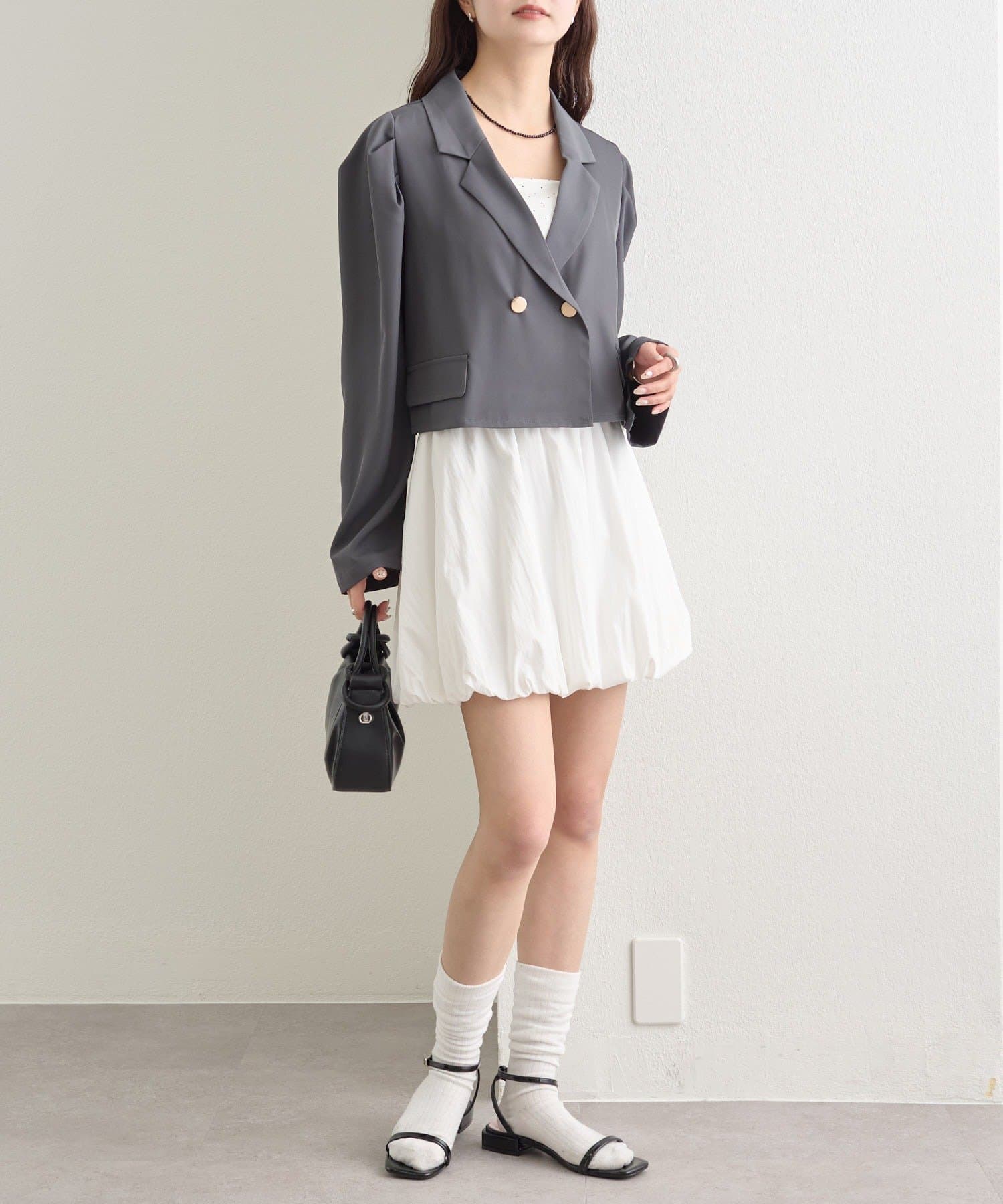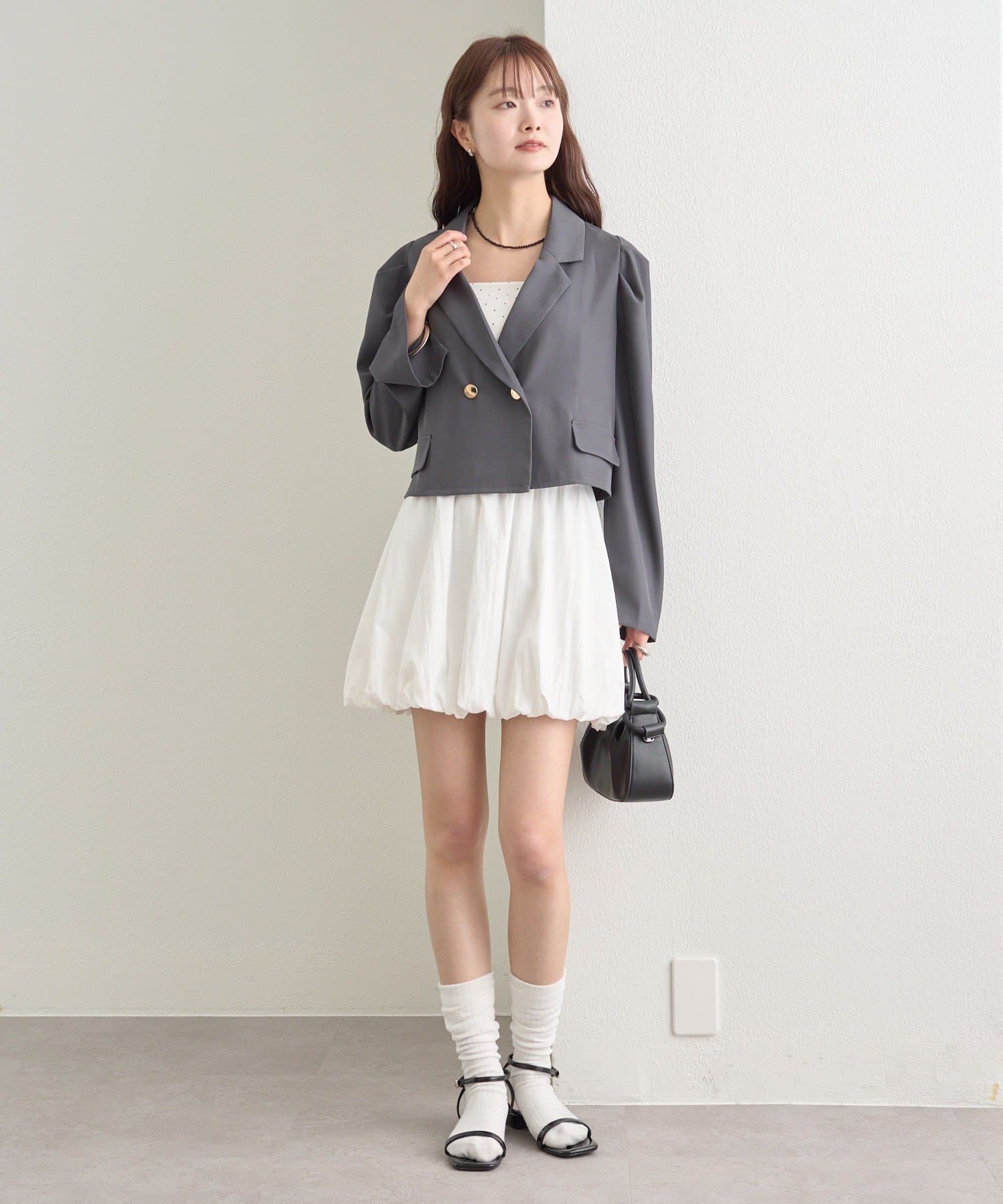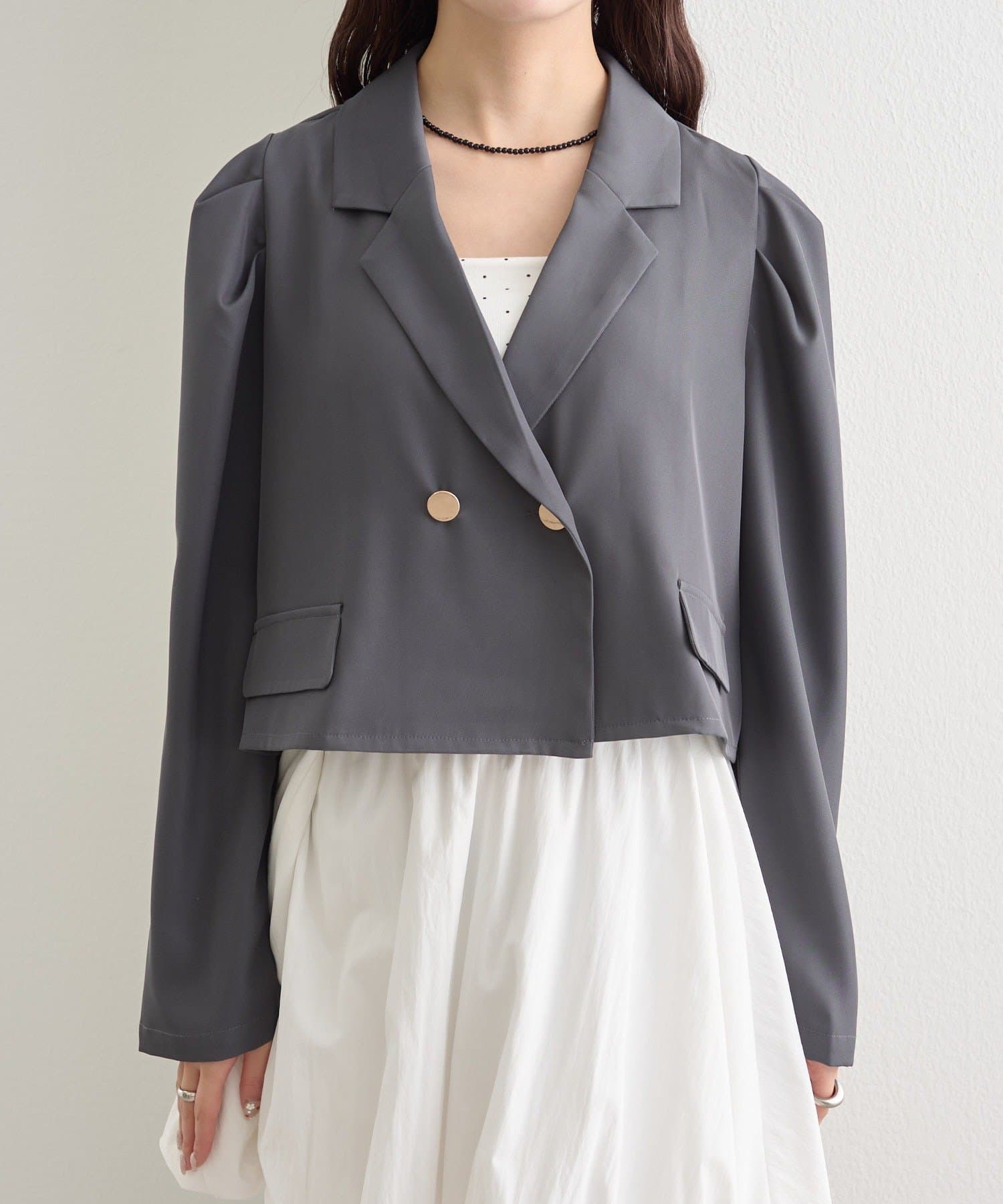 ・ダブルボタンデザインで大人っぽさもありつつ、コンパクトな丈感でスタイルアップ効果も◎