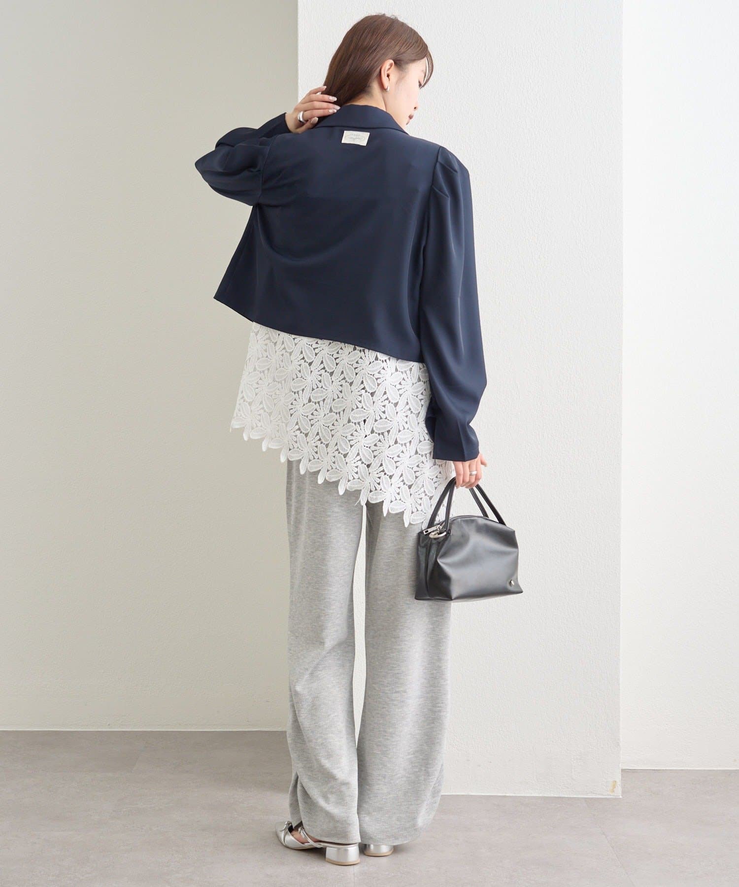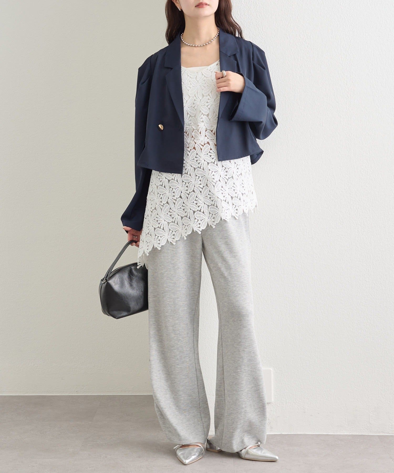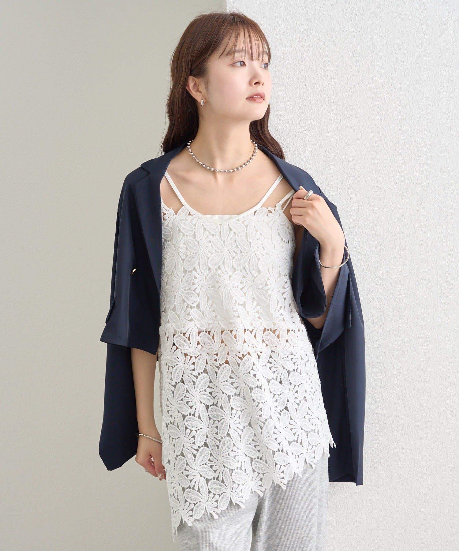 ・インナーにレースアイテムを合わせて抜け感と出すとトレンド感のある印象に。