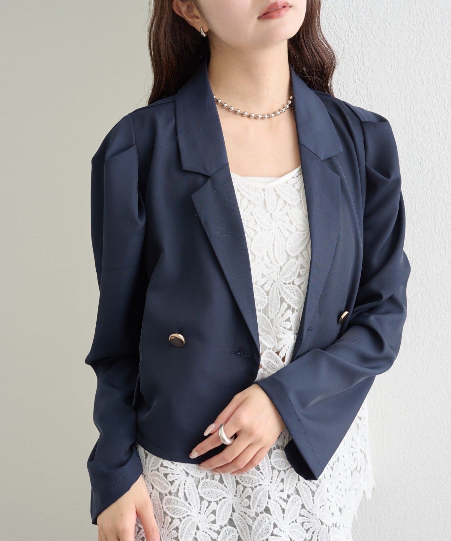 ・袖のボリューム感がポイントで、羽織るだけで華やかさをプラスするジャケット。