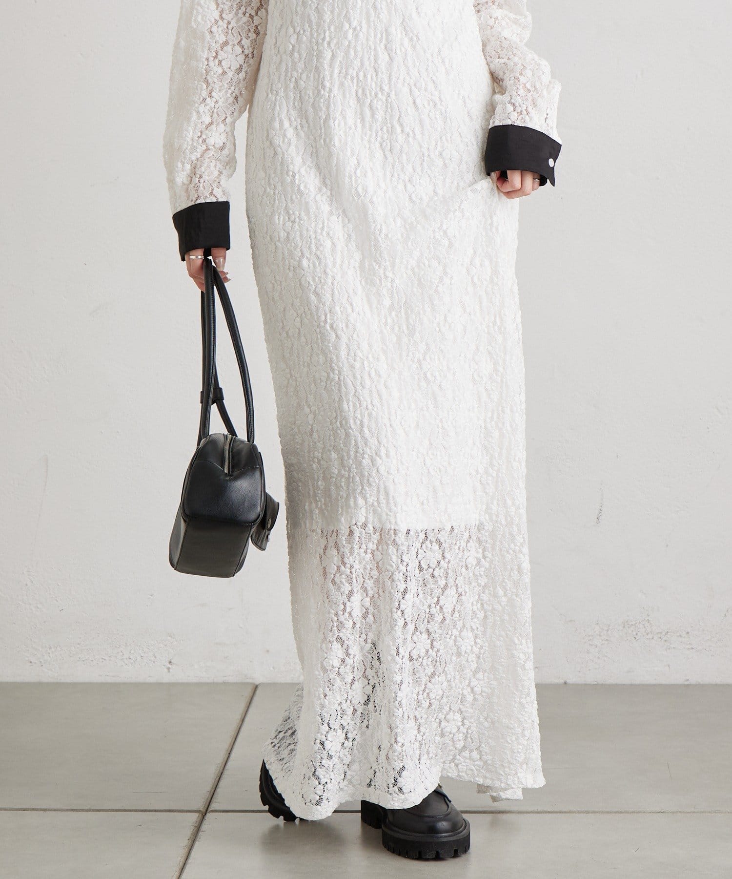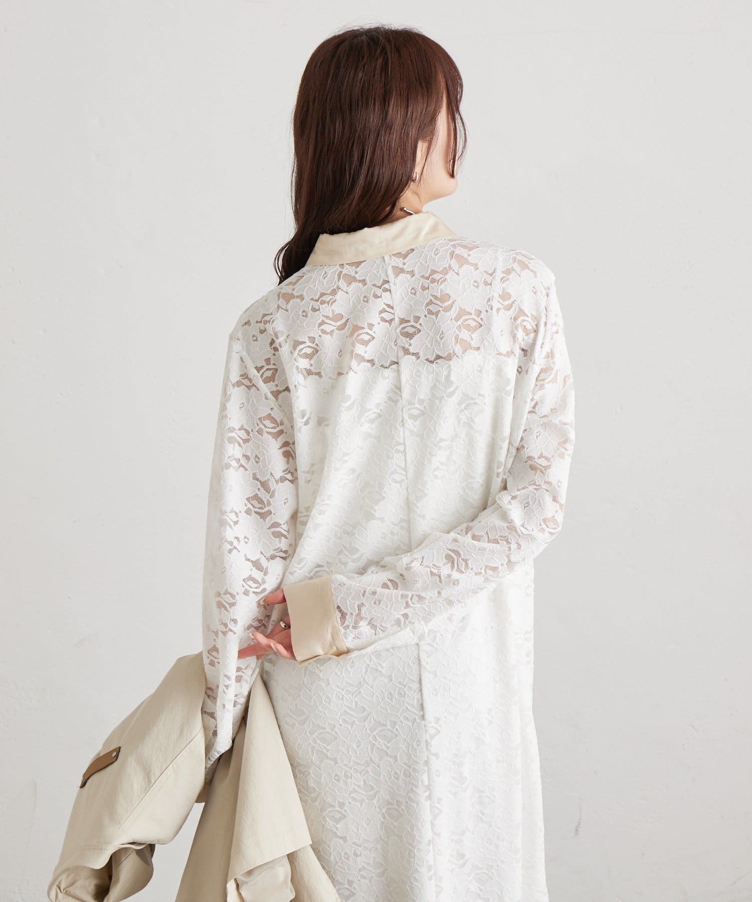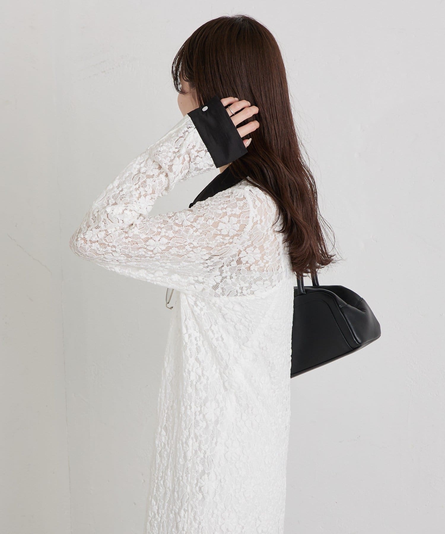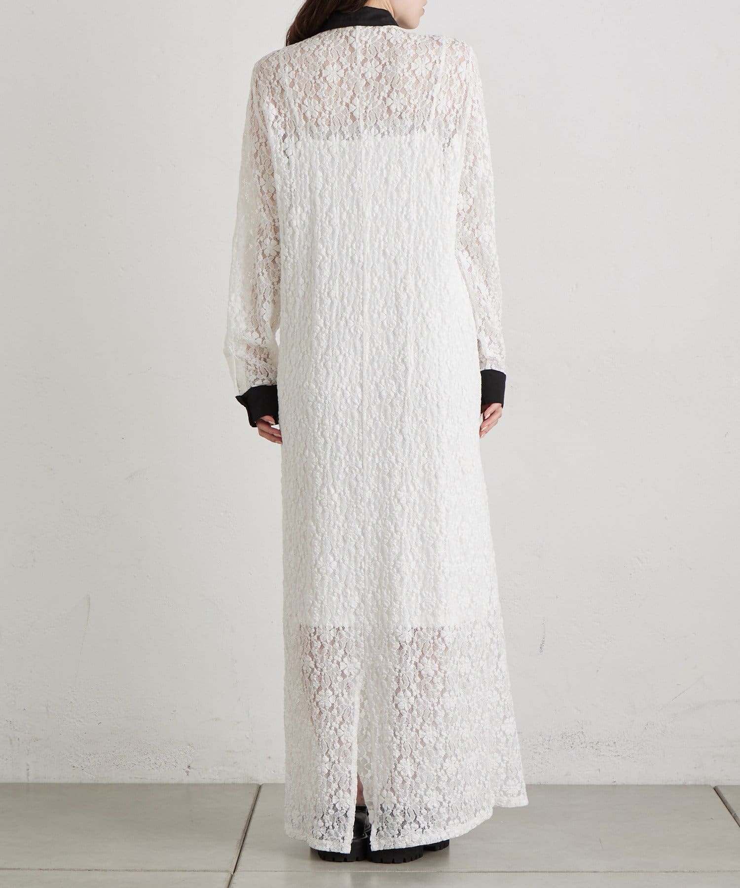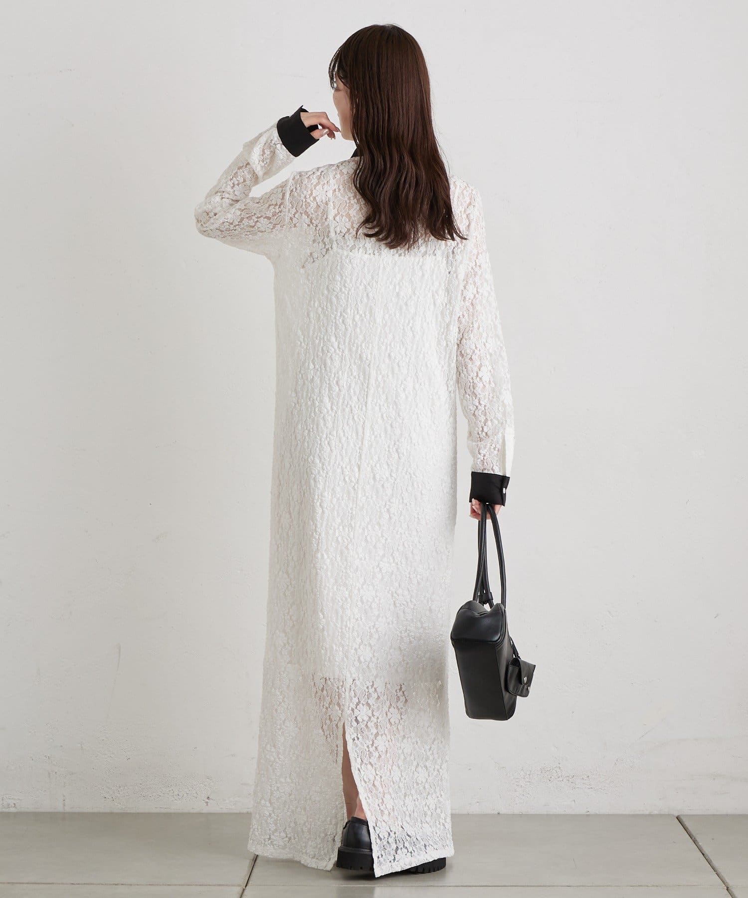 ・襟と袖口の配色デザインが、レースの甘さを引き締めクラシカルで大人っぽい印象に。