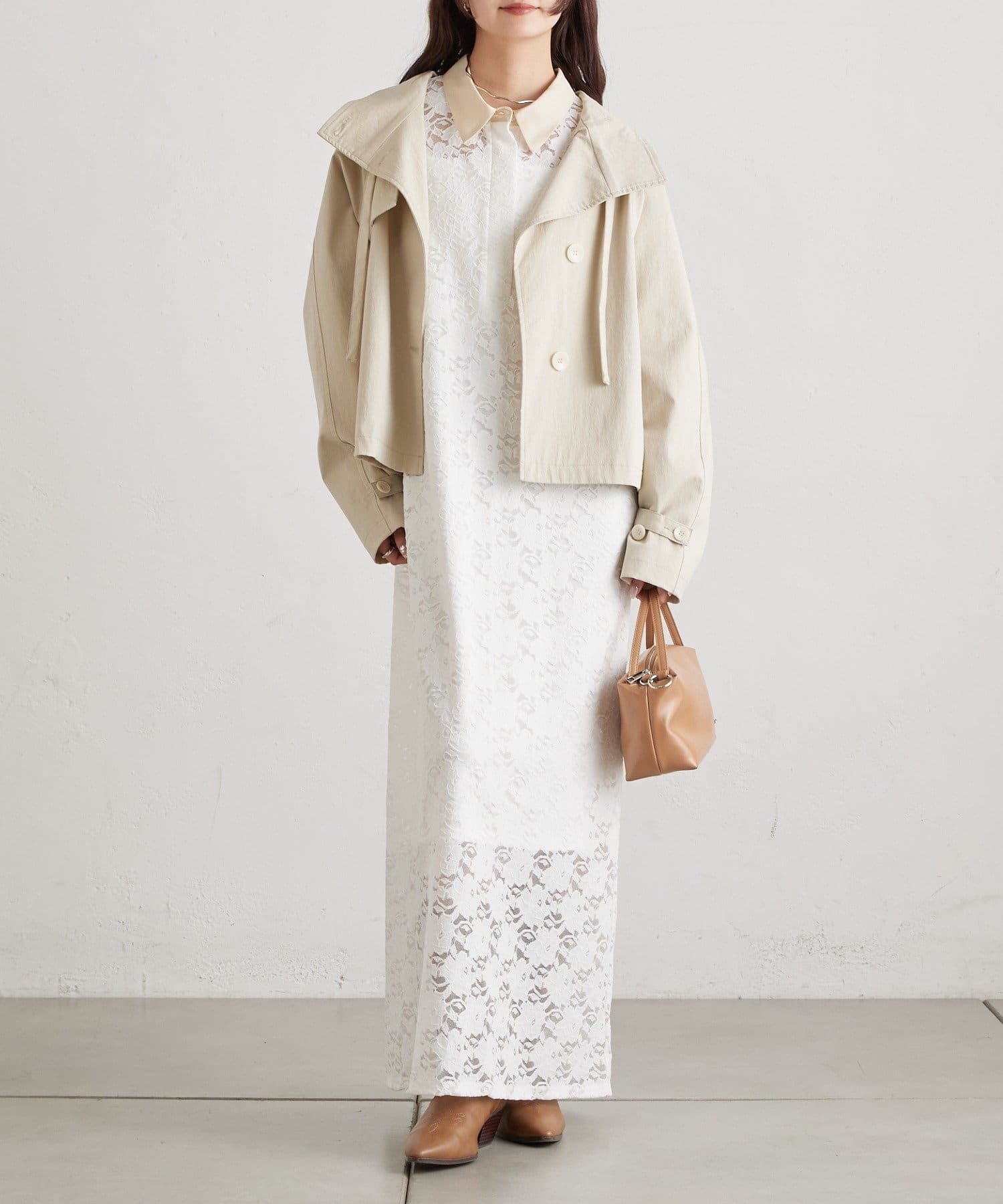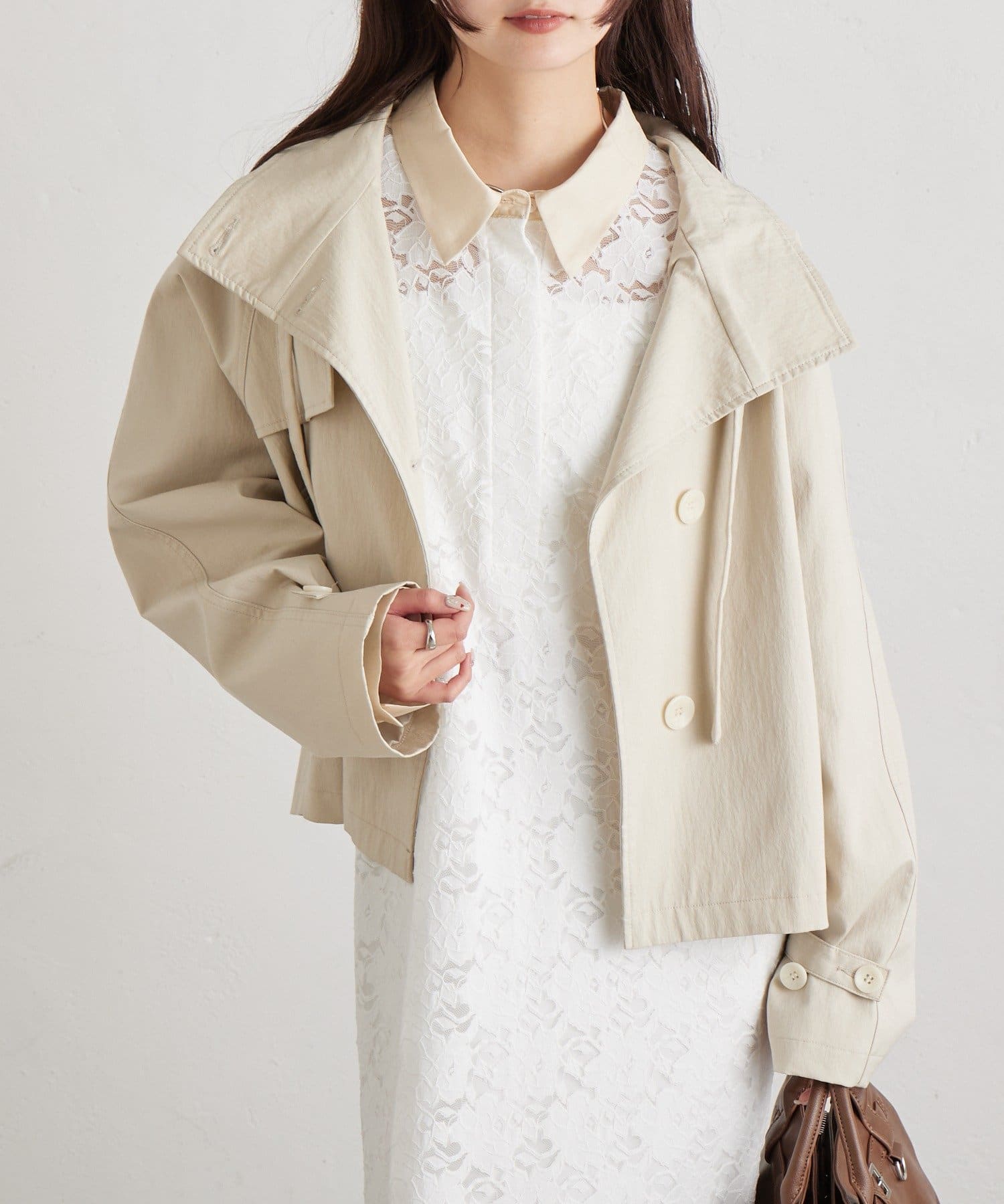 スタンドカラーショートトレンチ