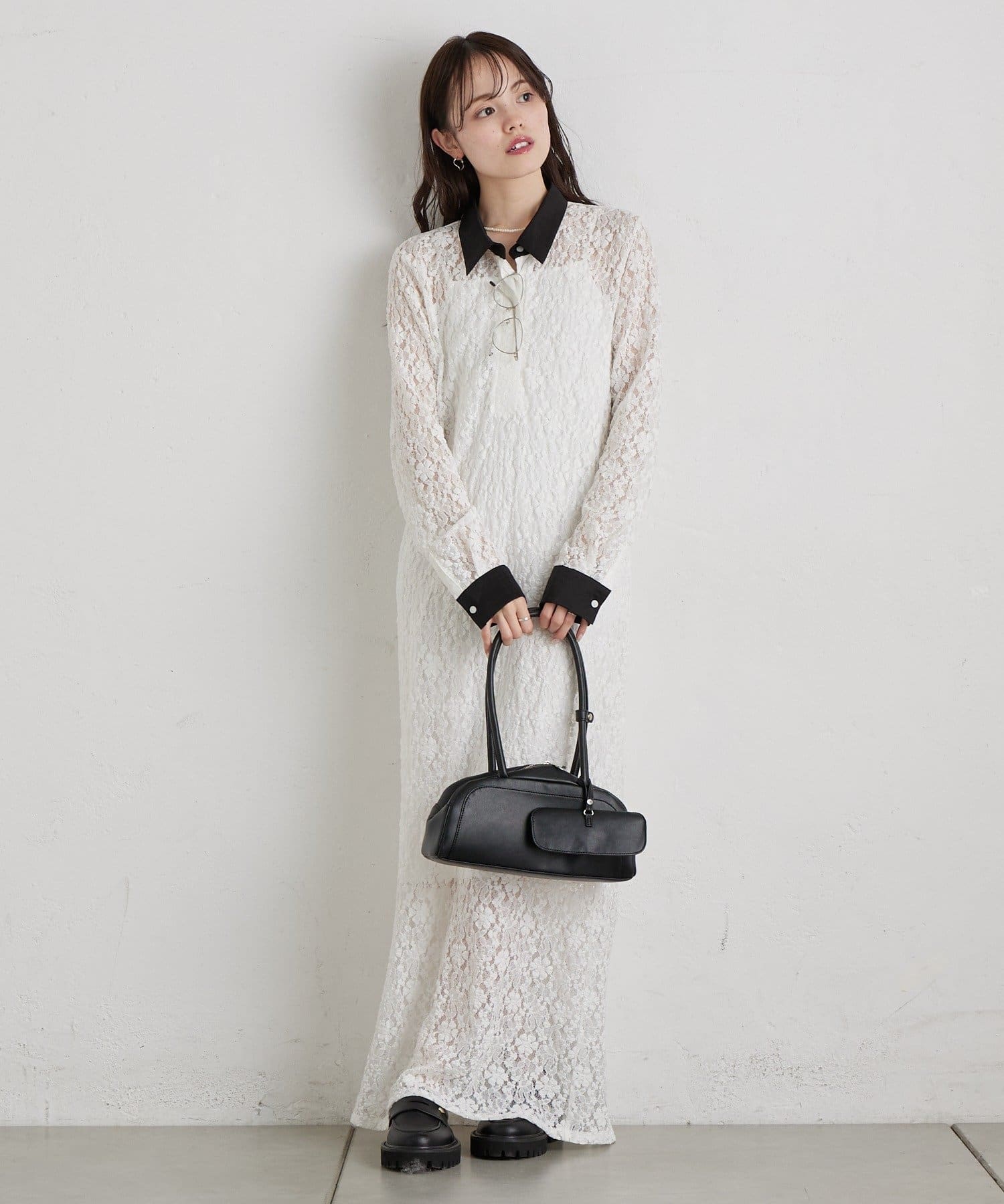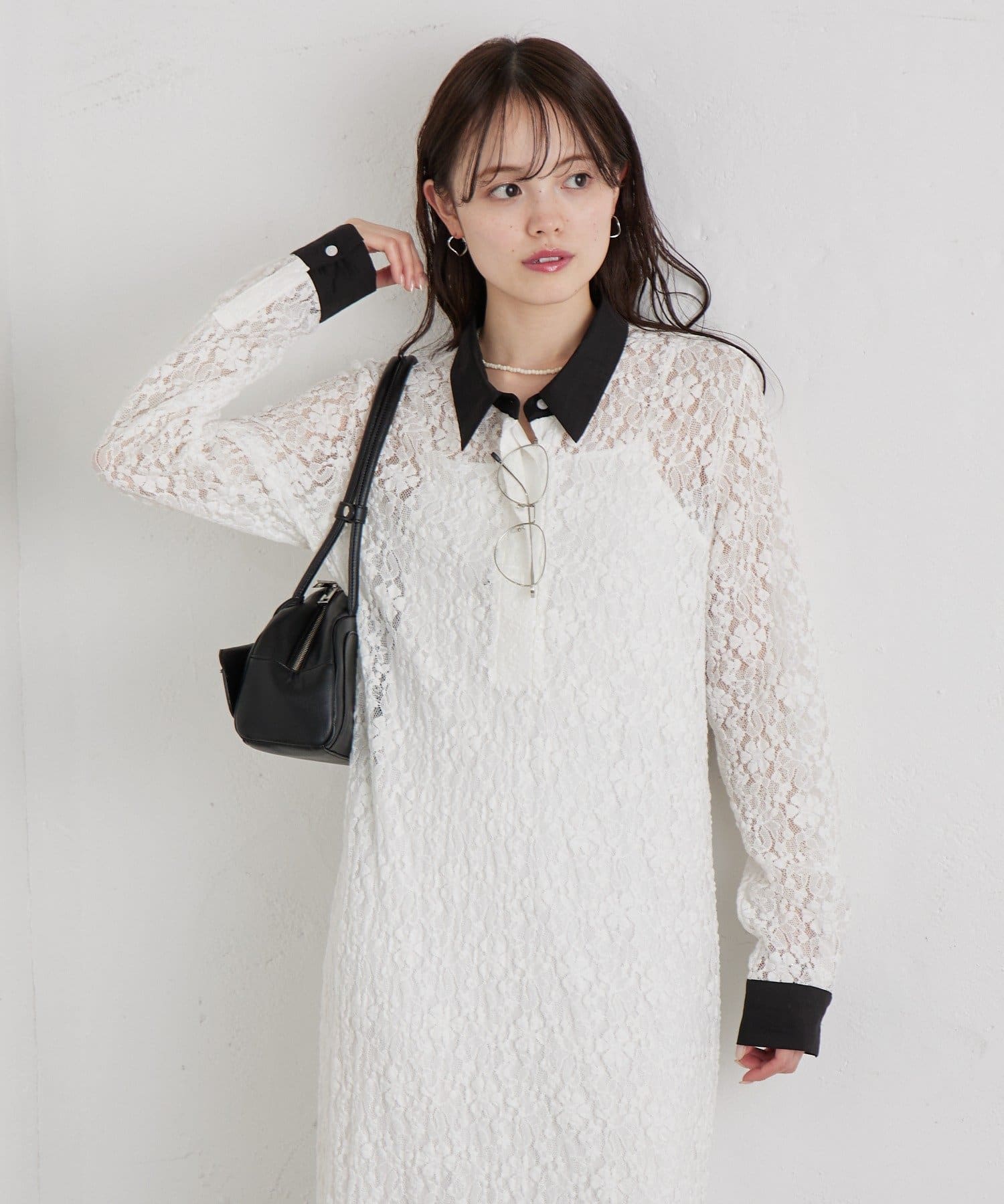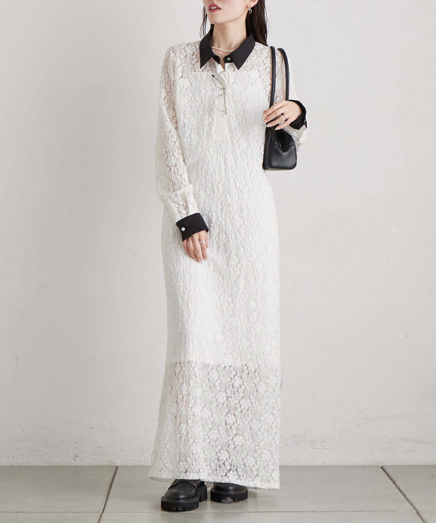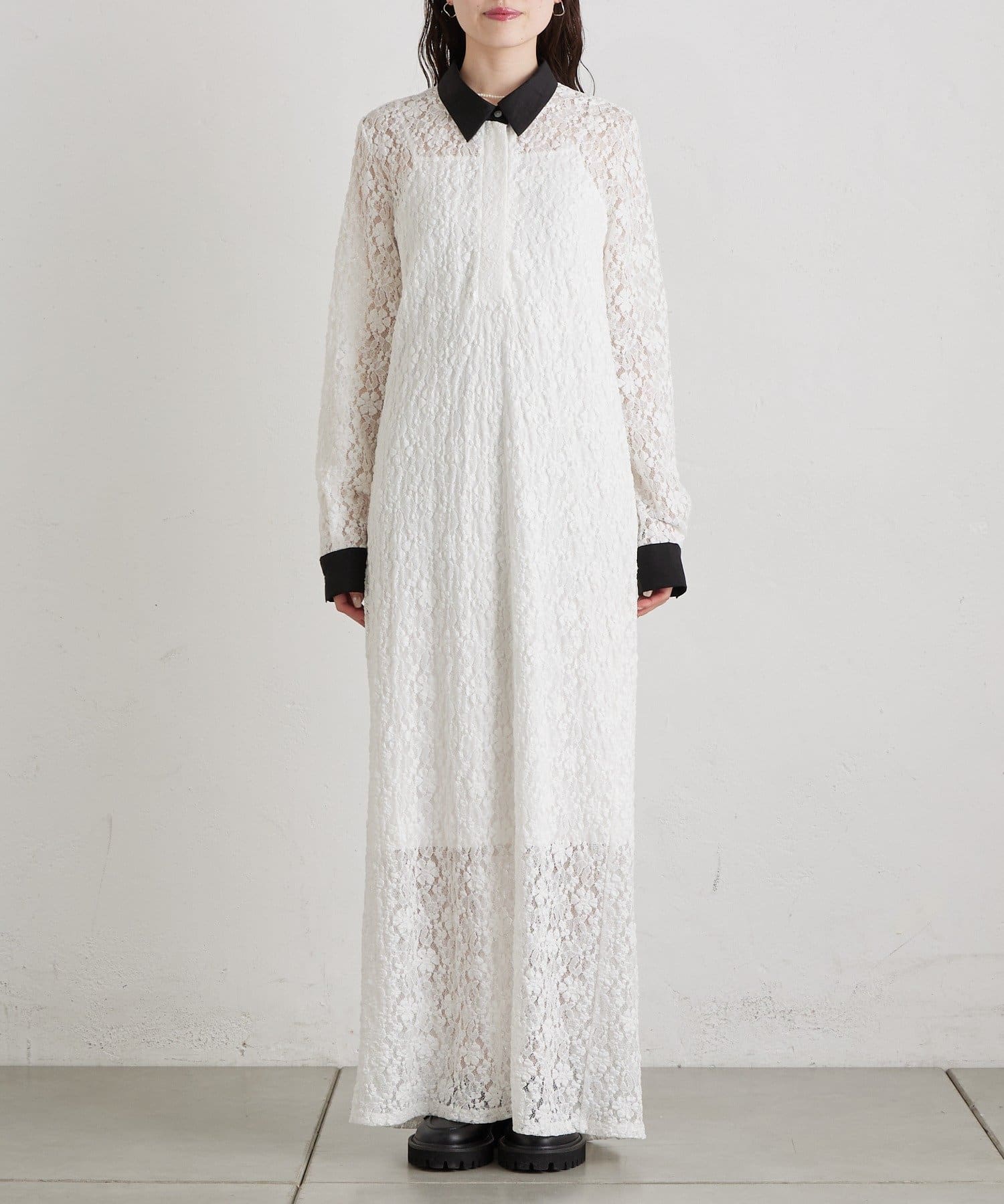総レース素材が目を惹く、主役級襟付きワンピース