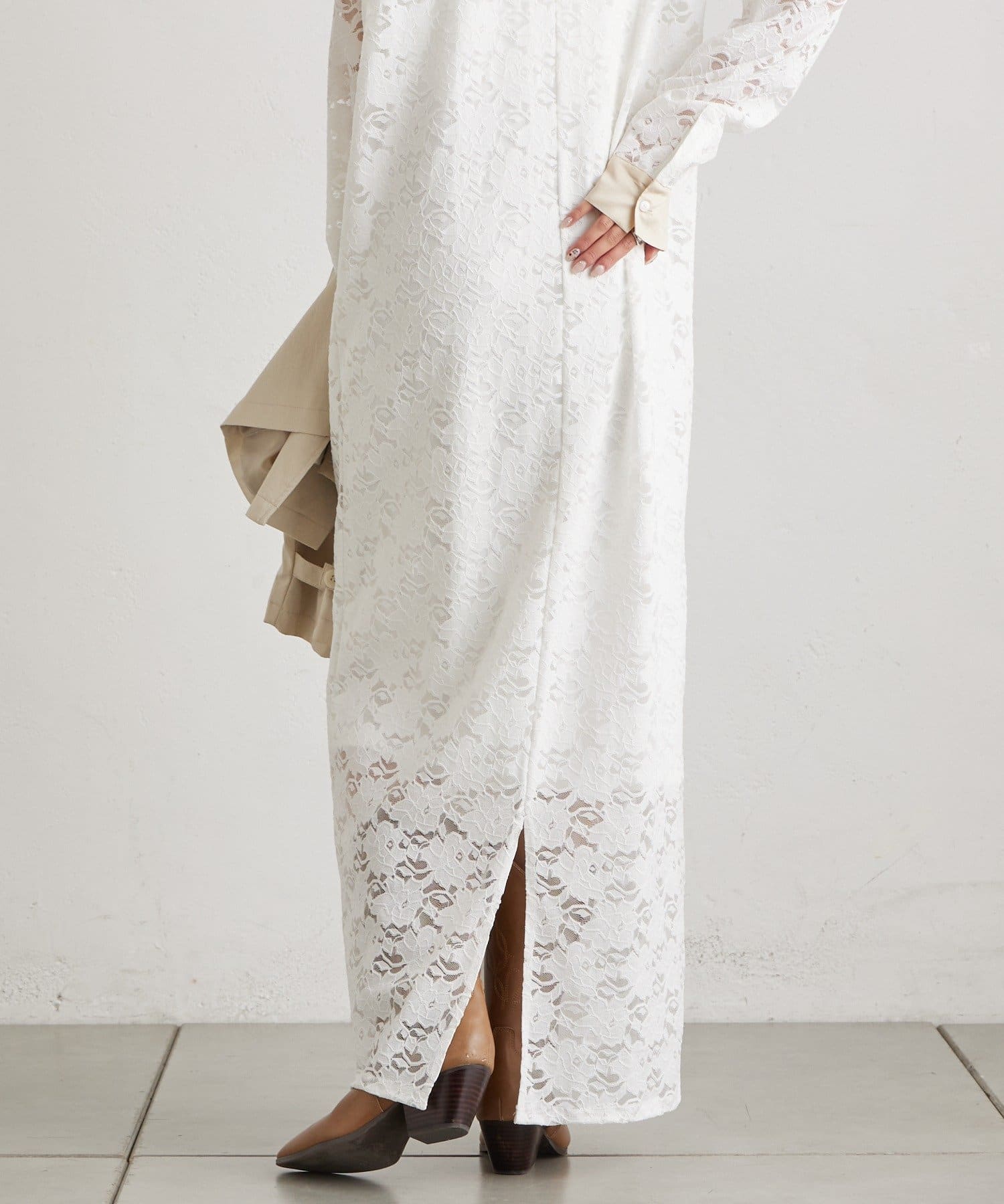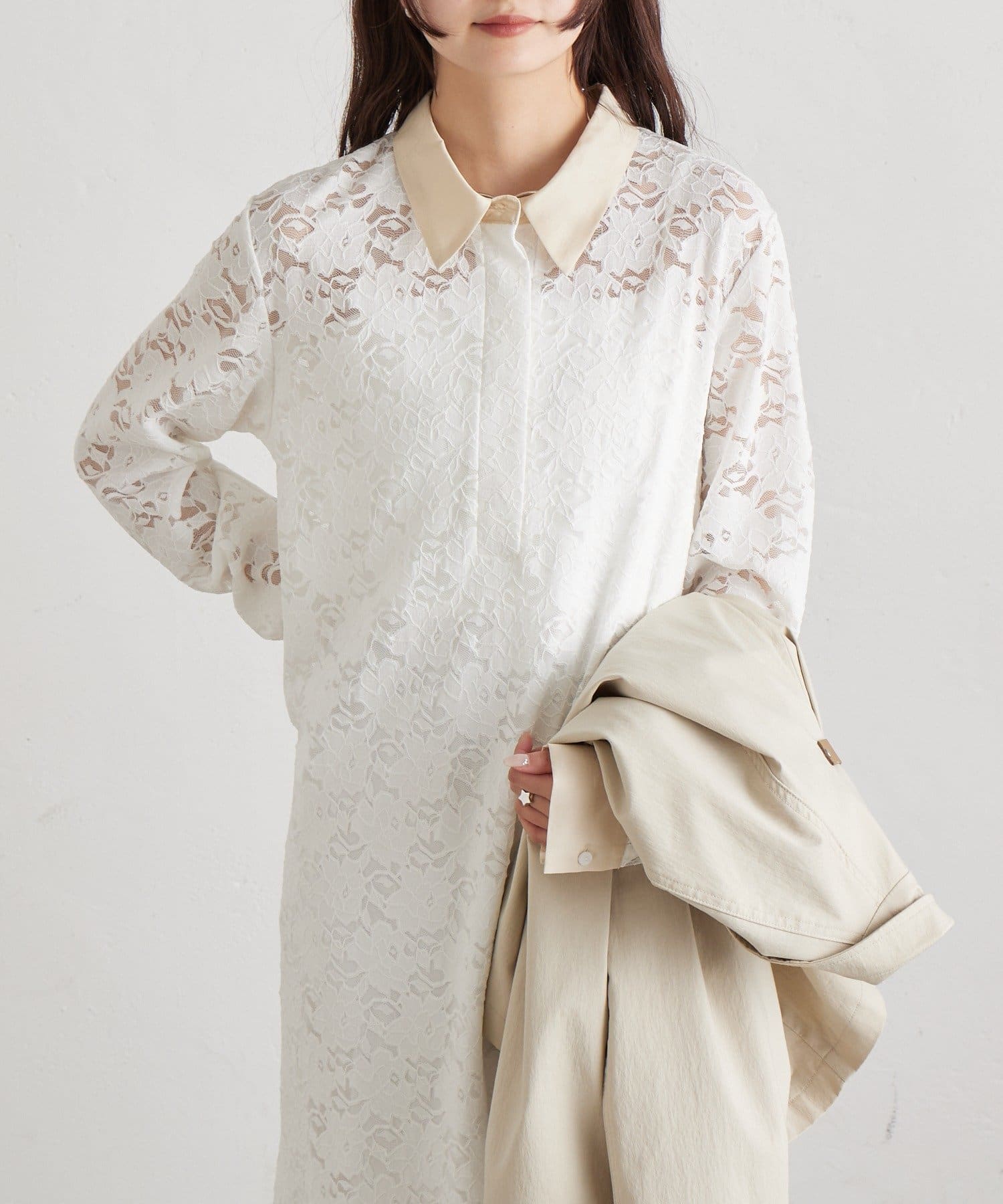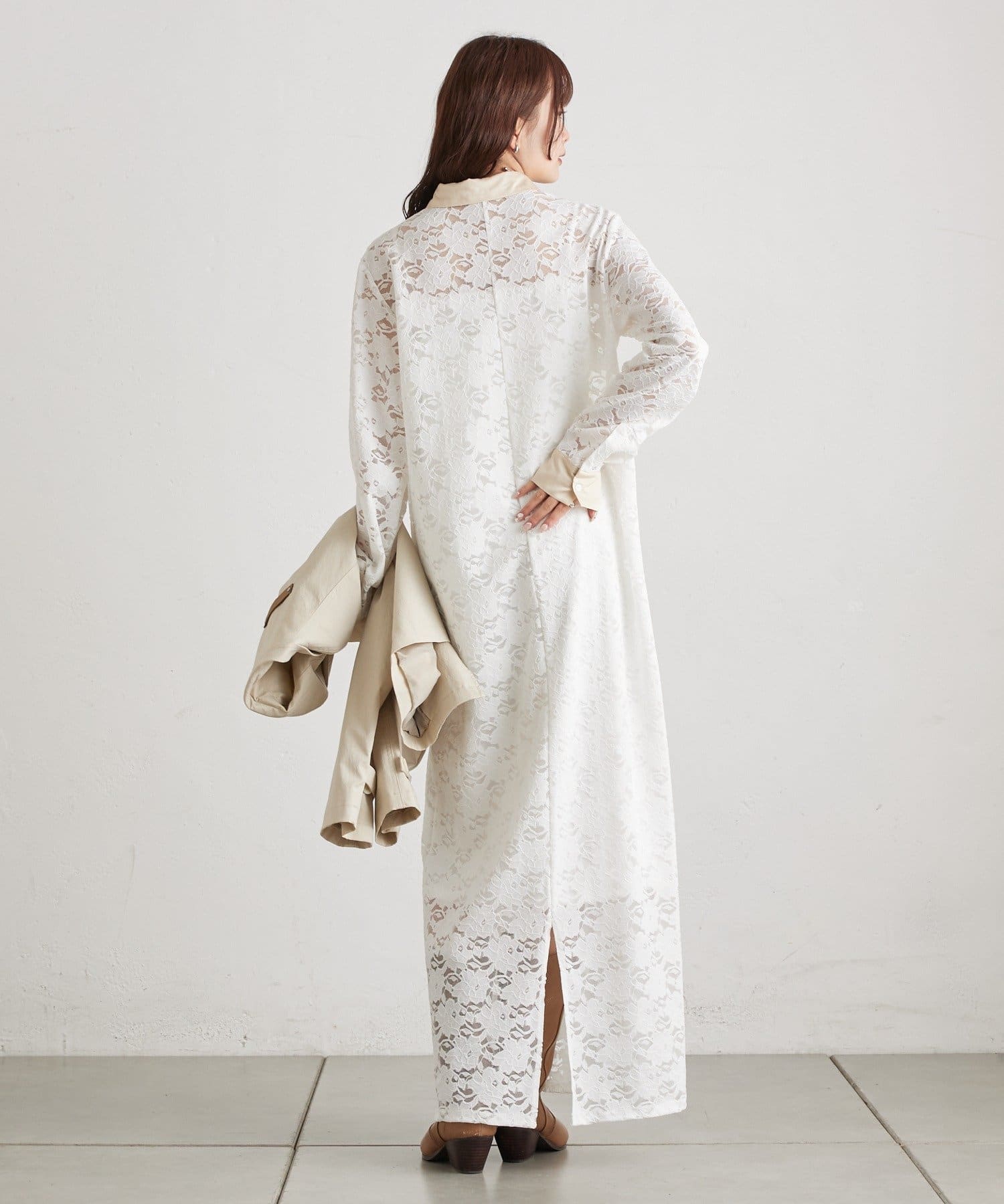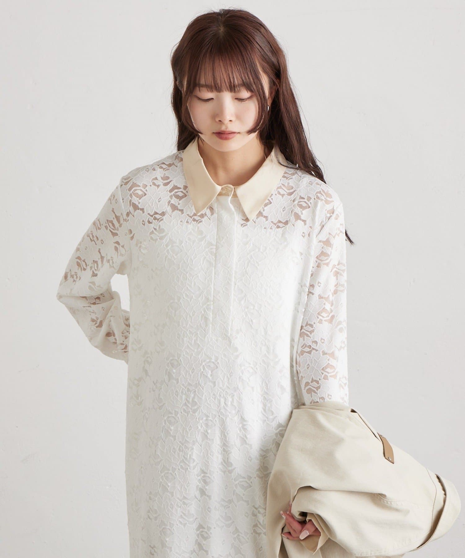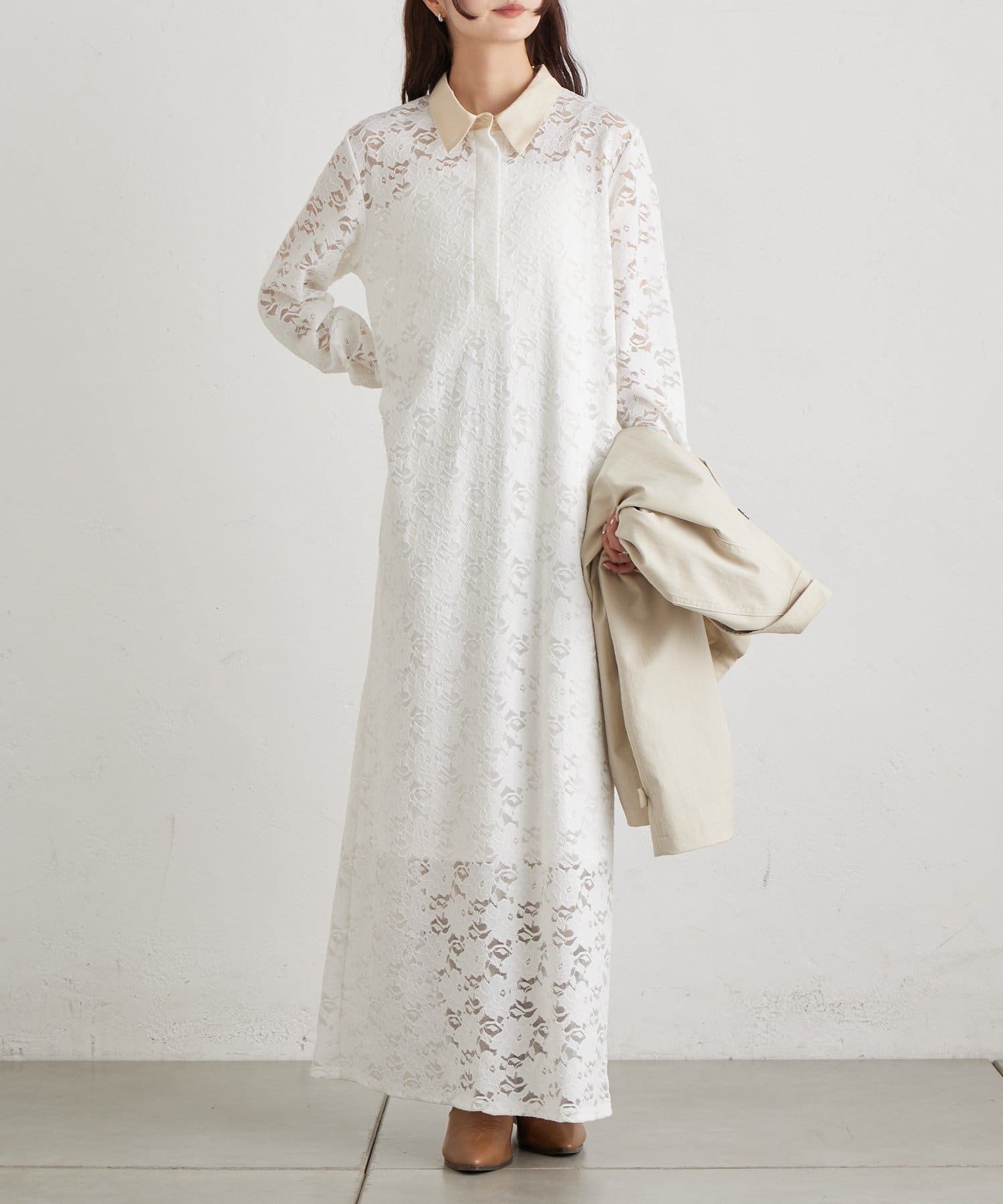 総レース素材が目を惹く、主役級襟付きワンピース