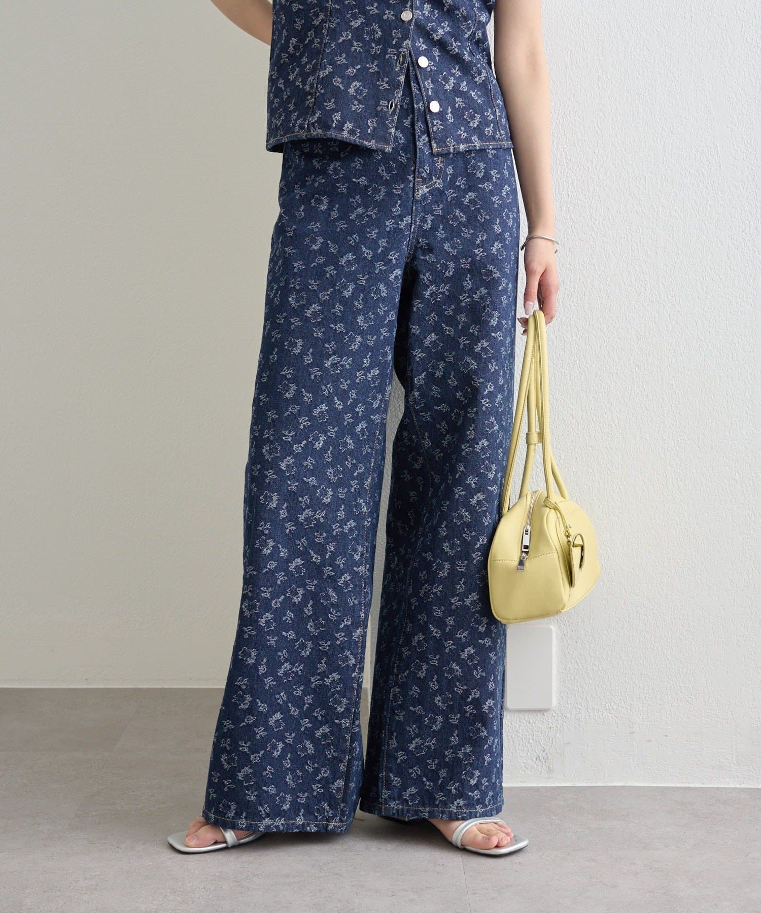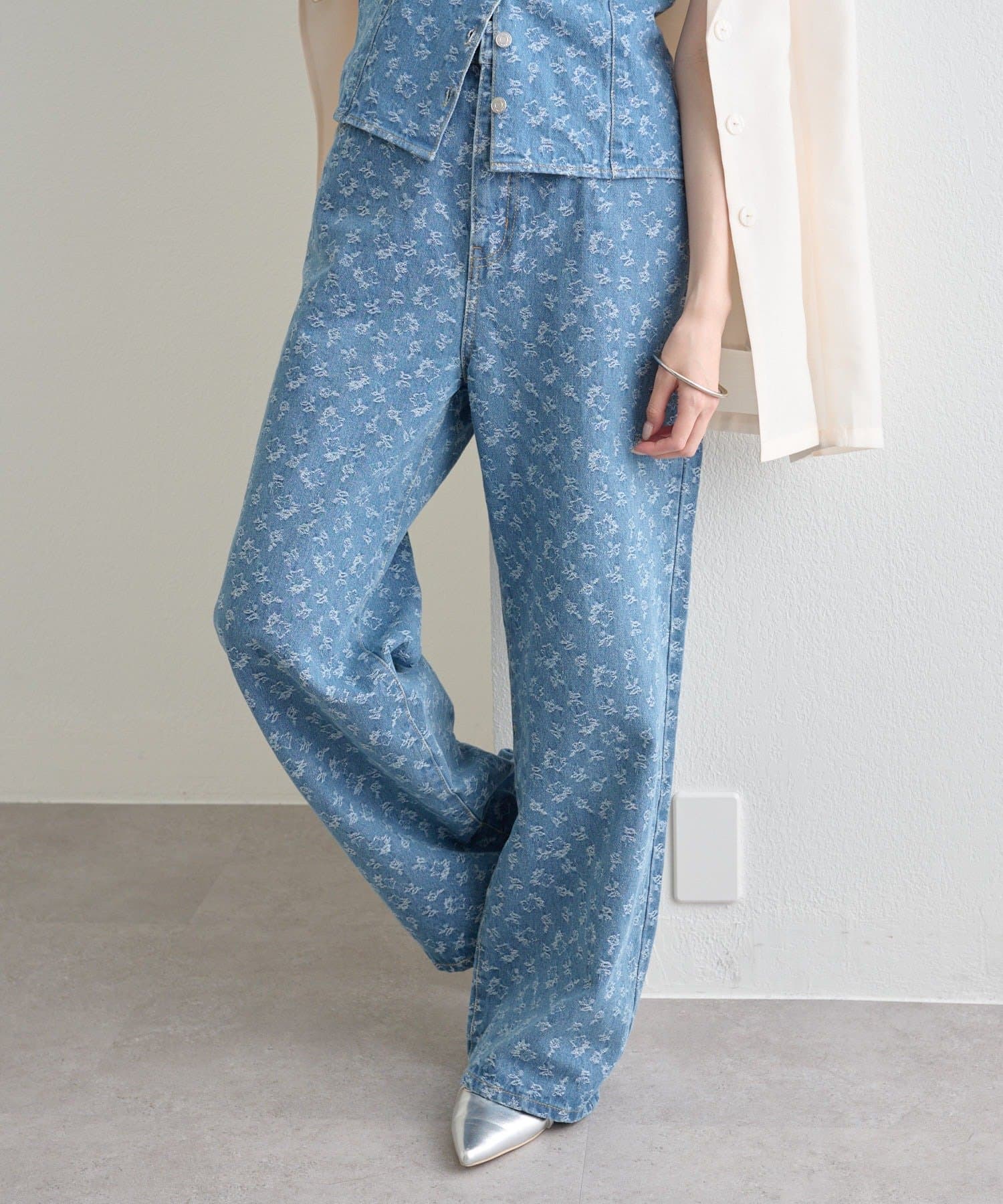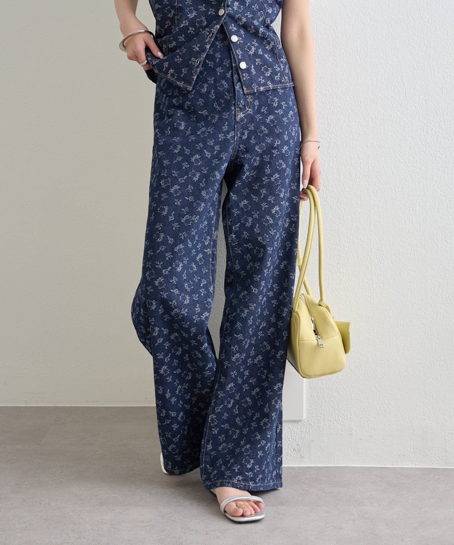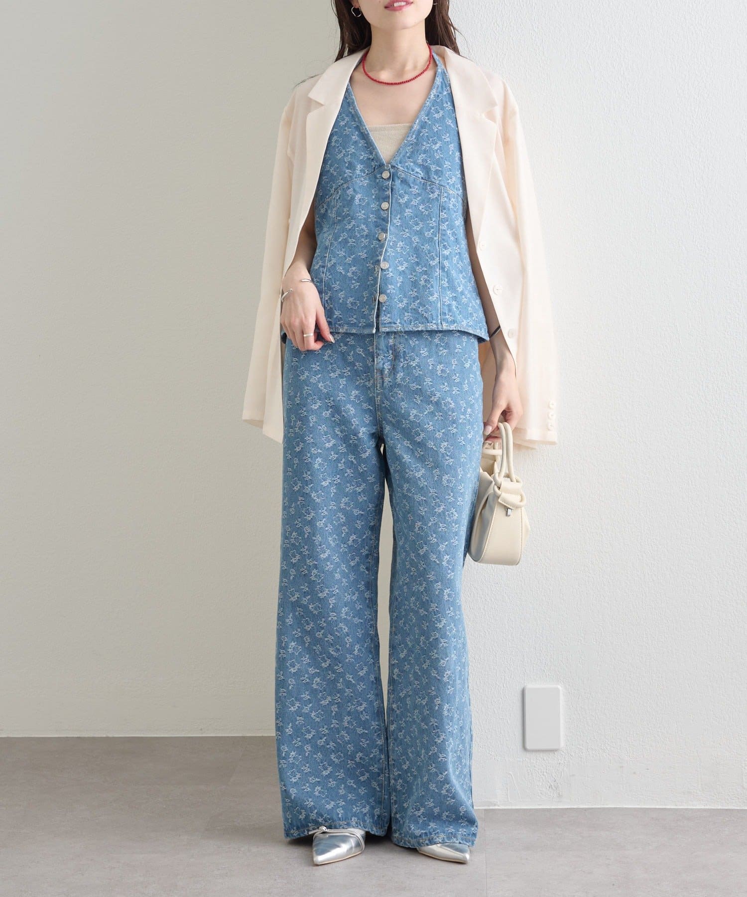 ・フラワー柄を落とし込んだデニム素材で、カジュアルになりすぎず女性らしさ感じられるセットアップアイテム。
