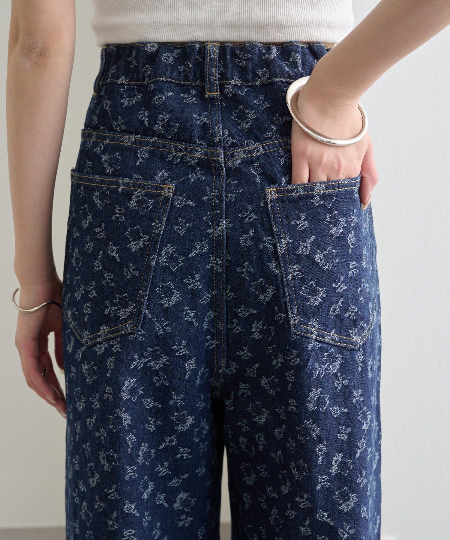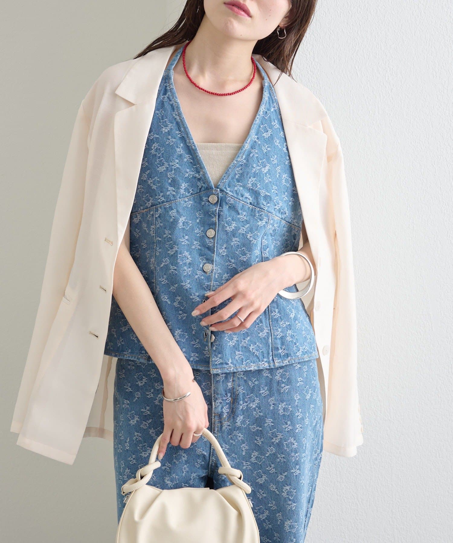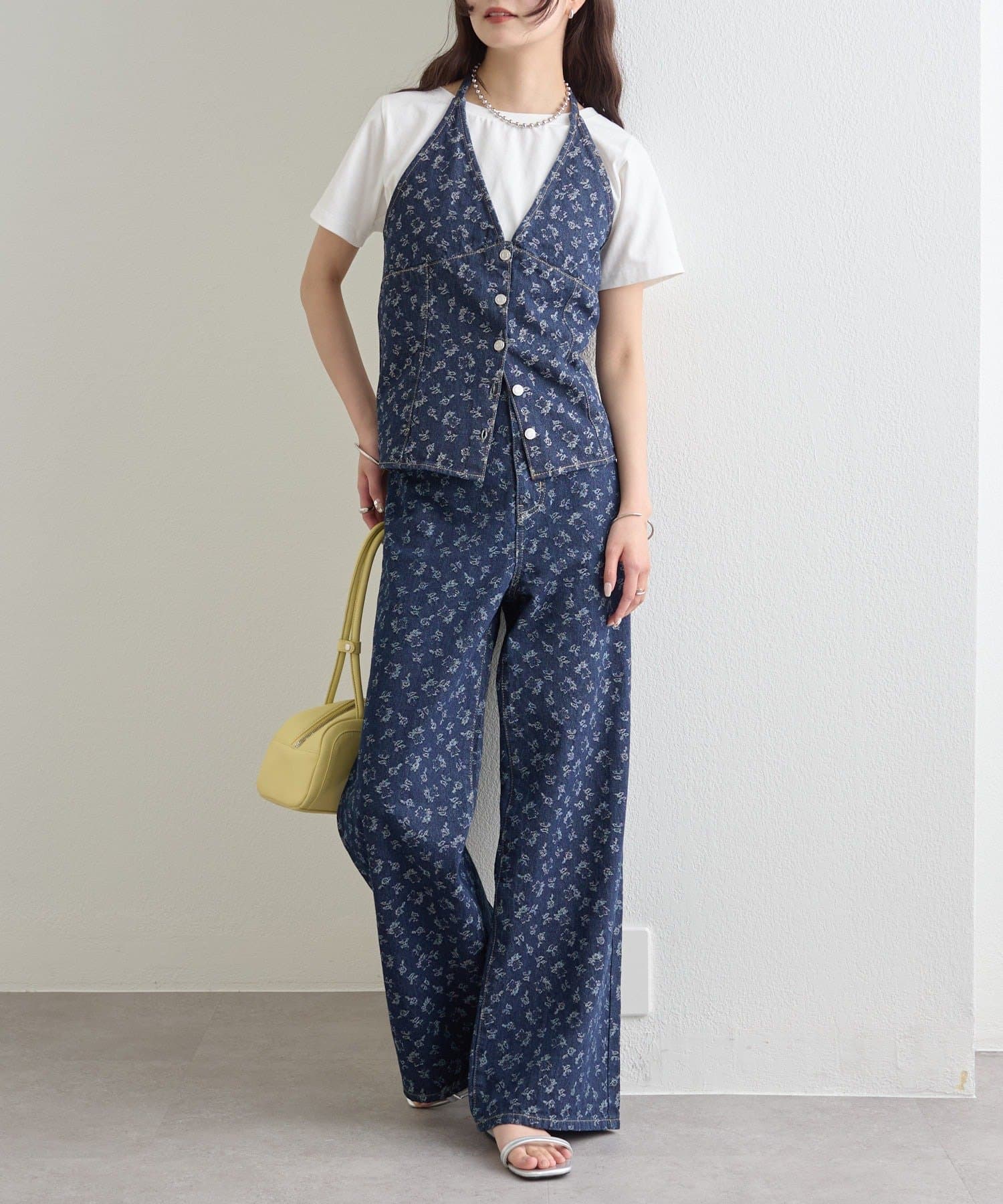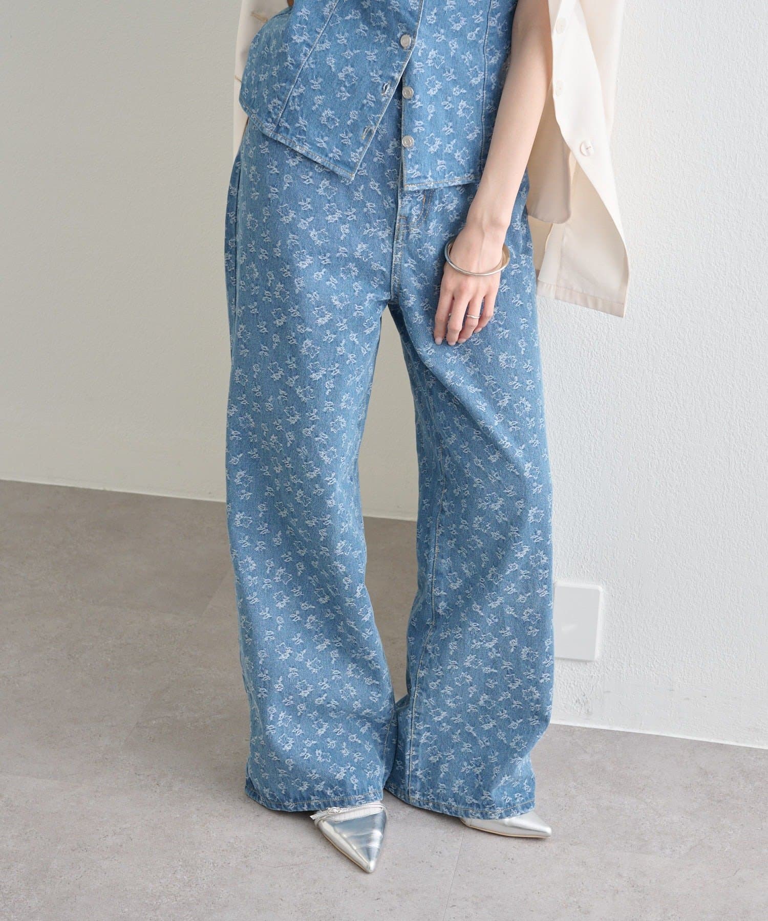 ・フラワー柄を落とし込んだデニム素材で、カジュアルになりすぎず女性らしさ感じられるセットアップアイテム。