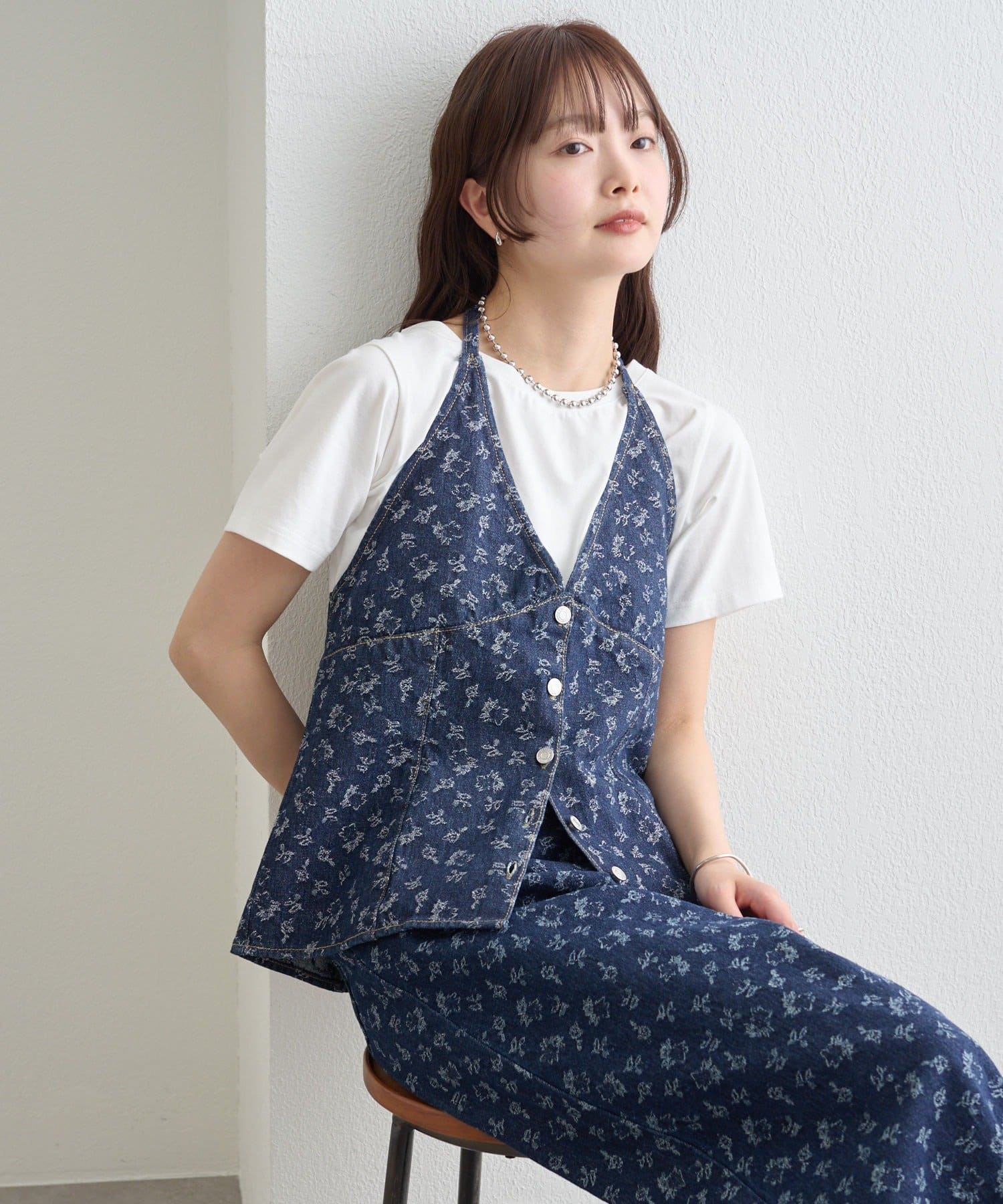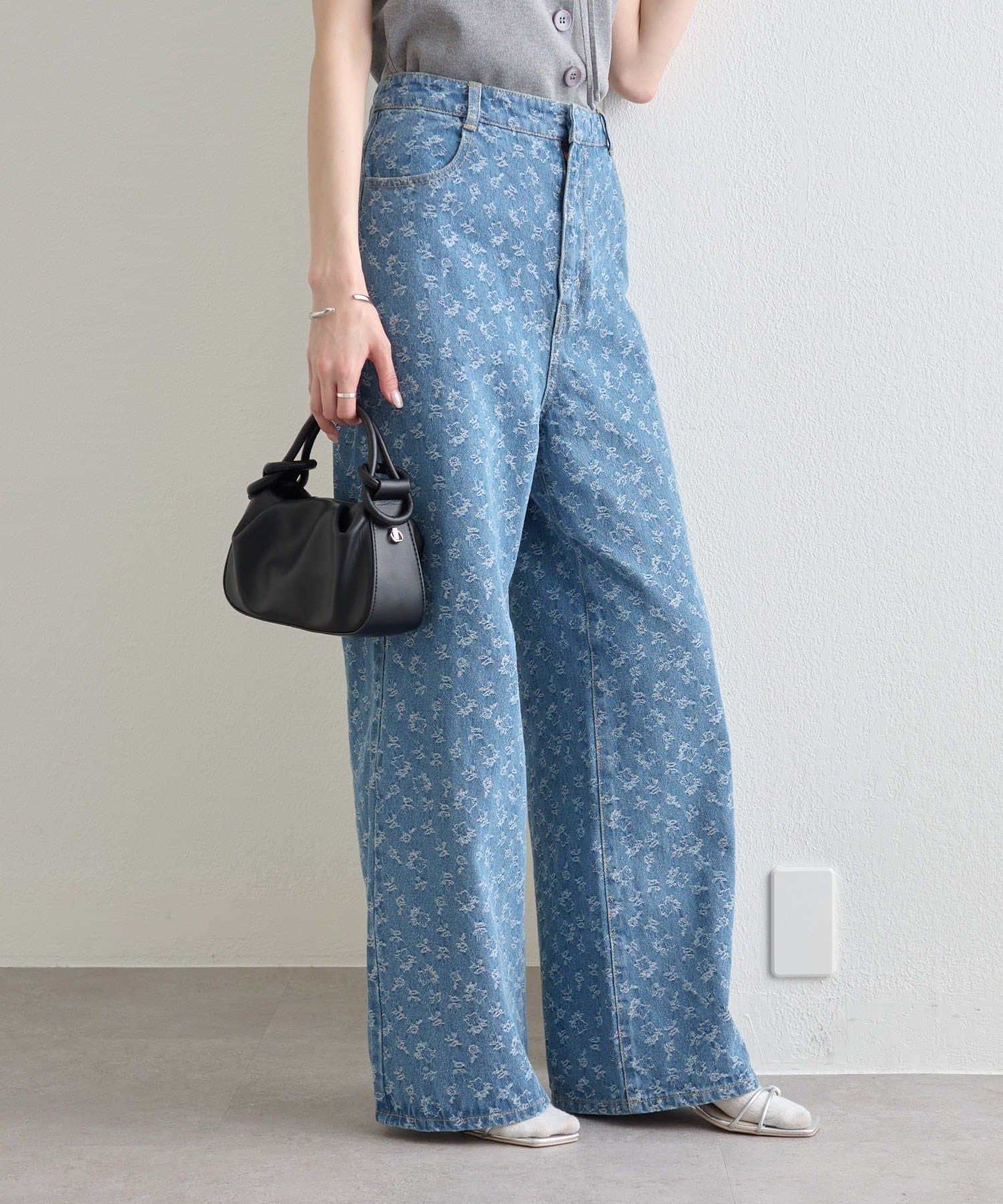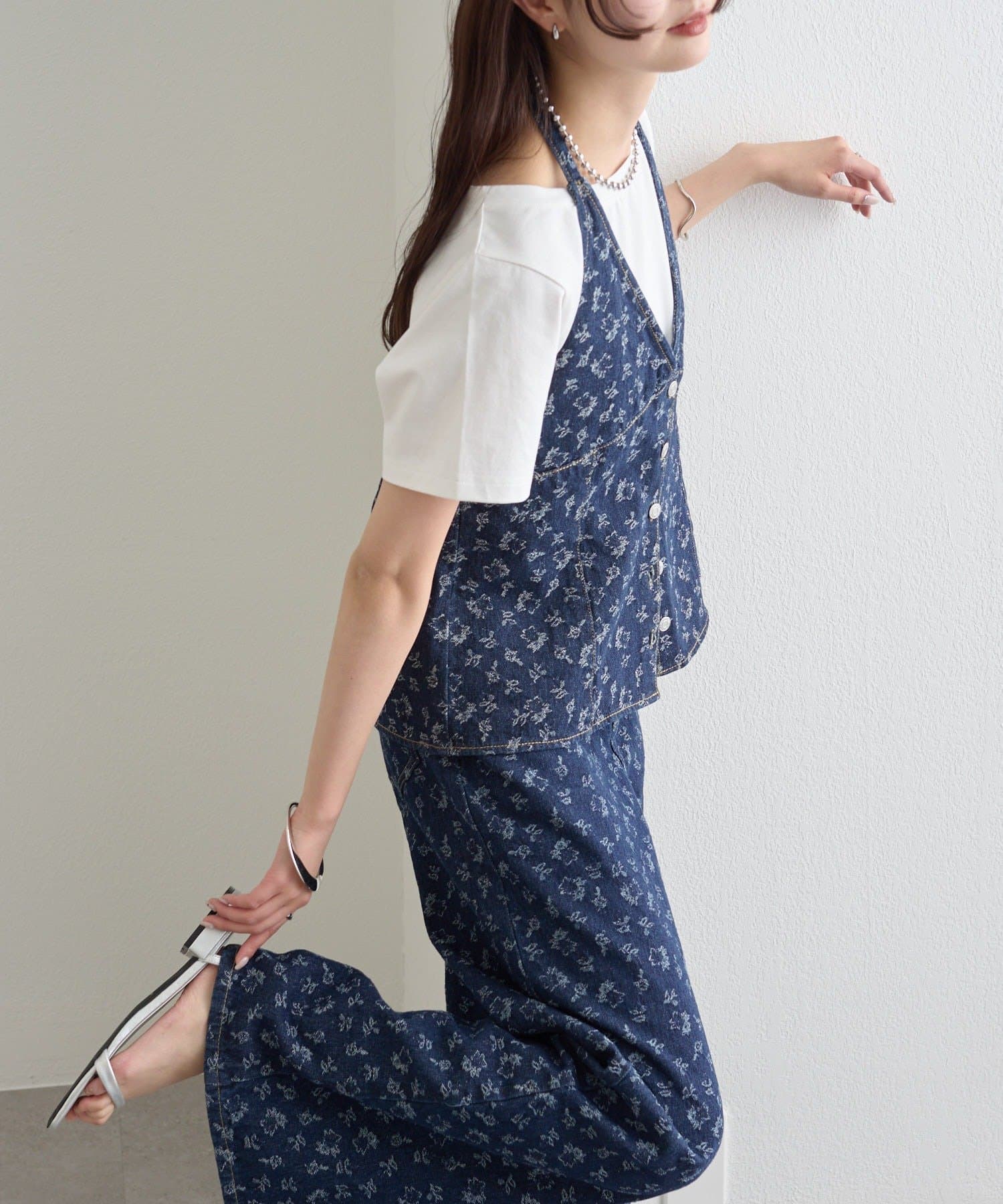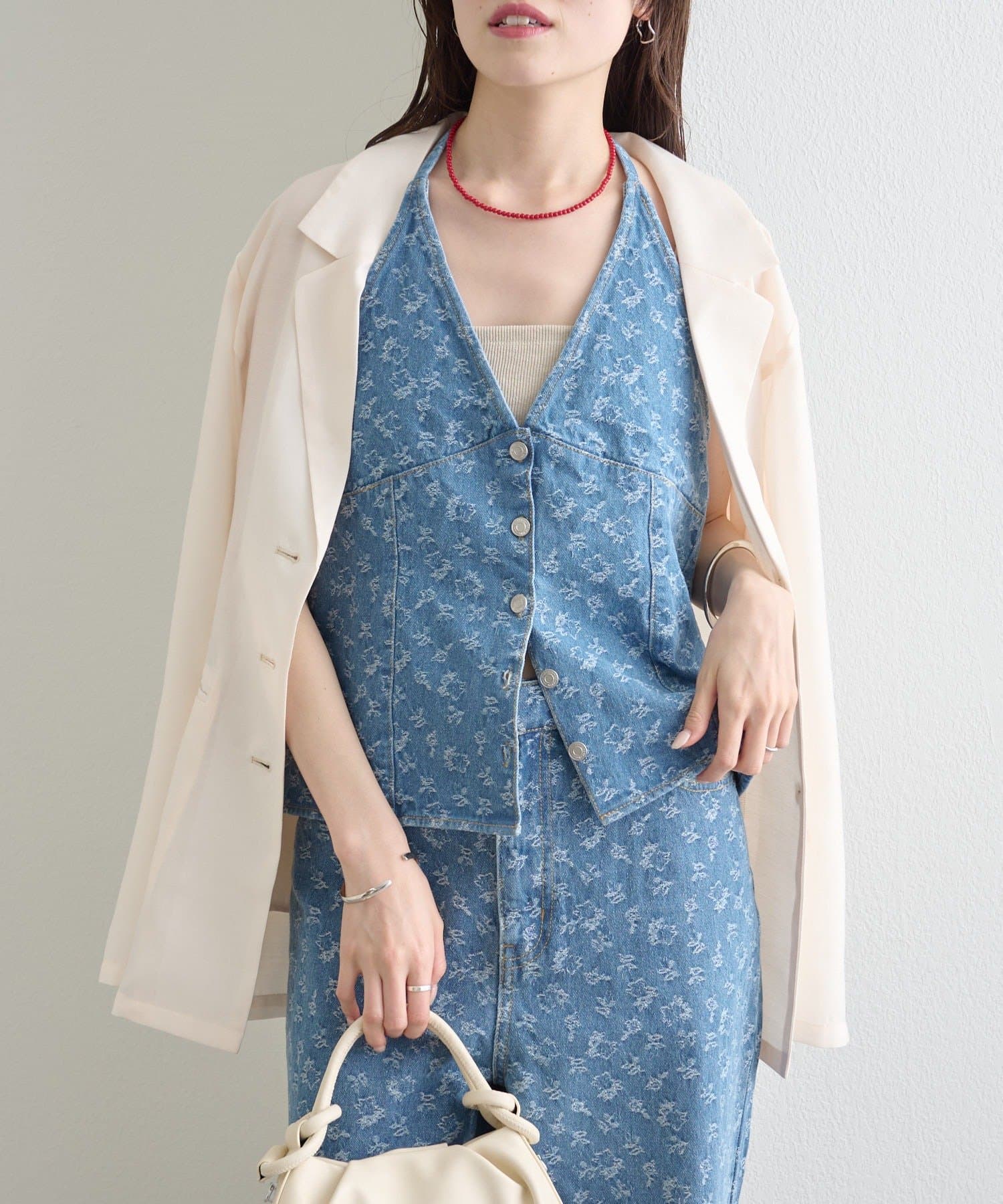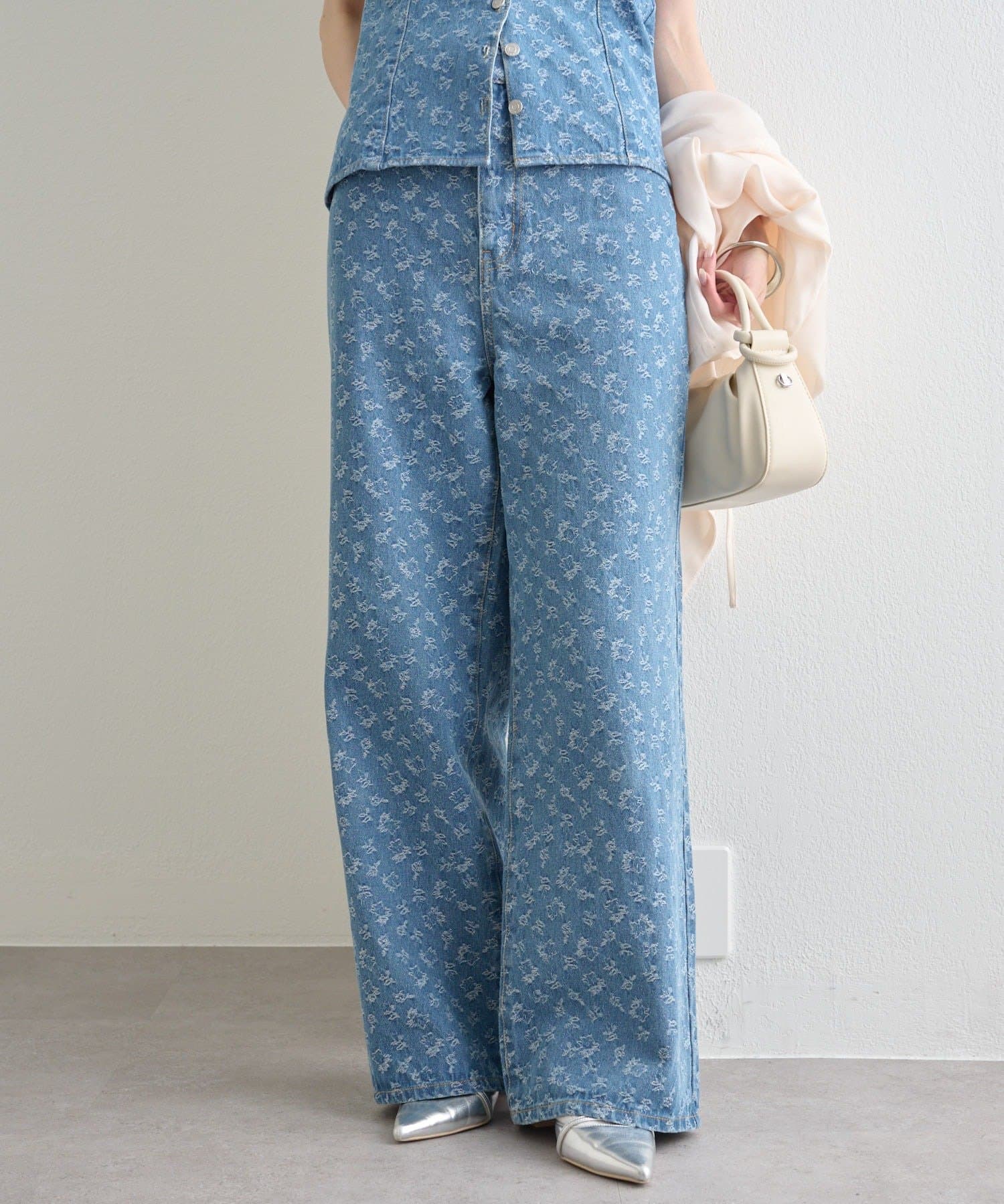・フラワー柄を落とし込んだデニム素材で、カジュアルになりすぎず女性らしさ感じられるセットアップアイテム。