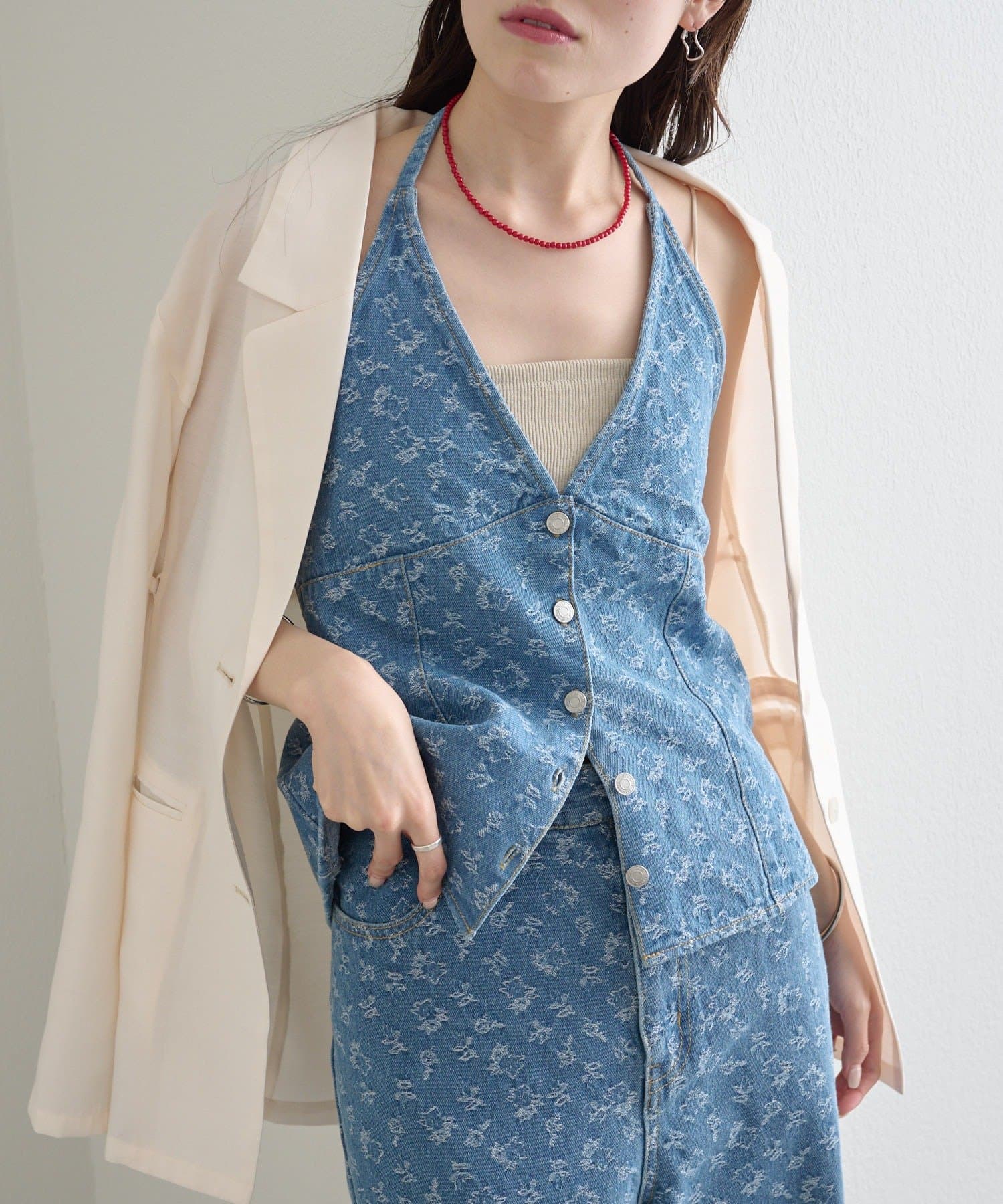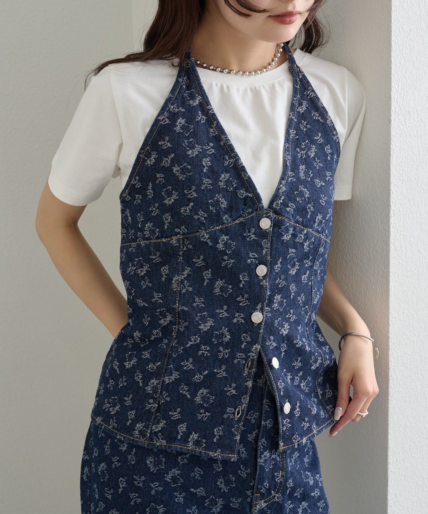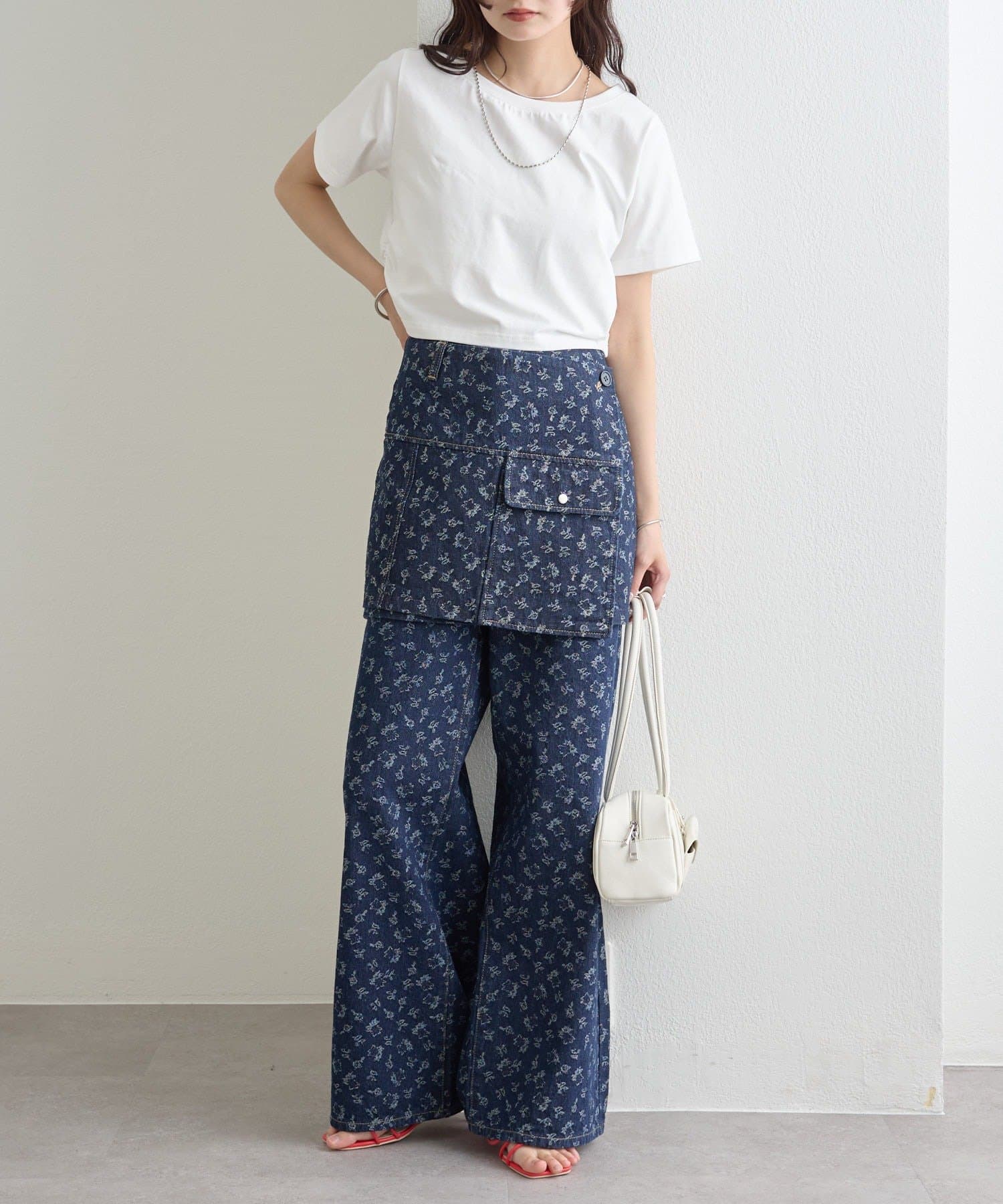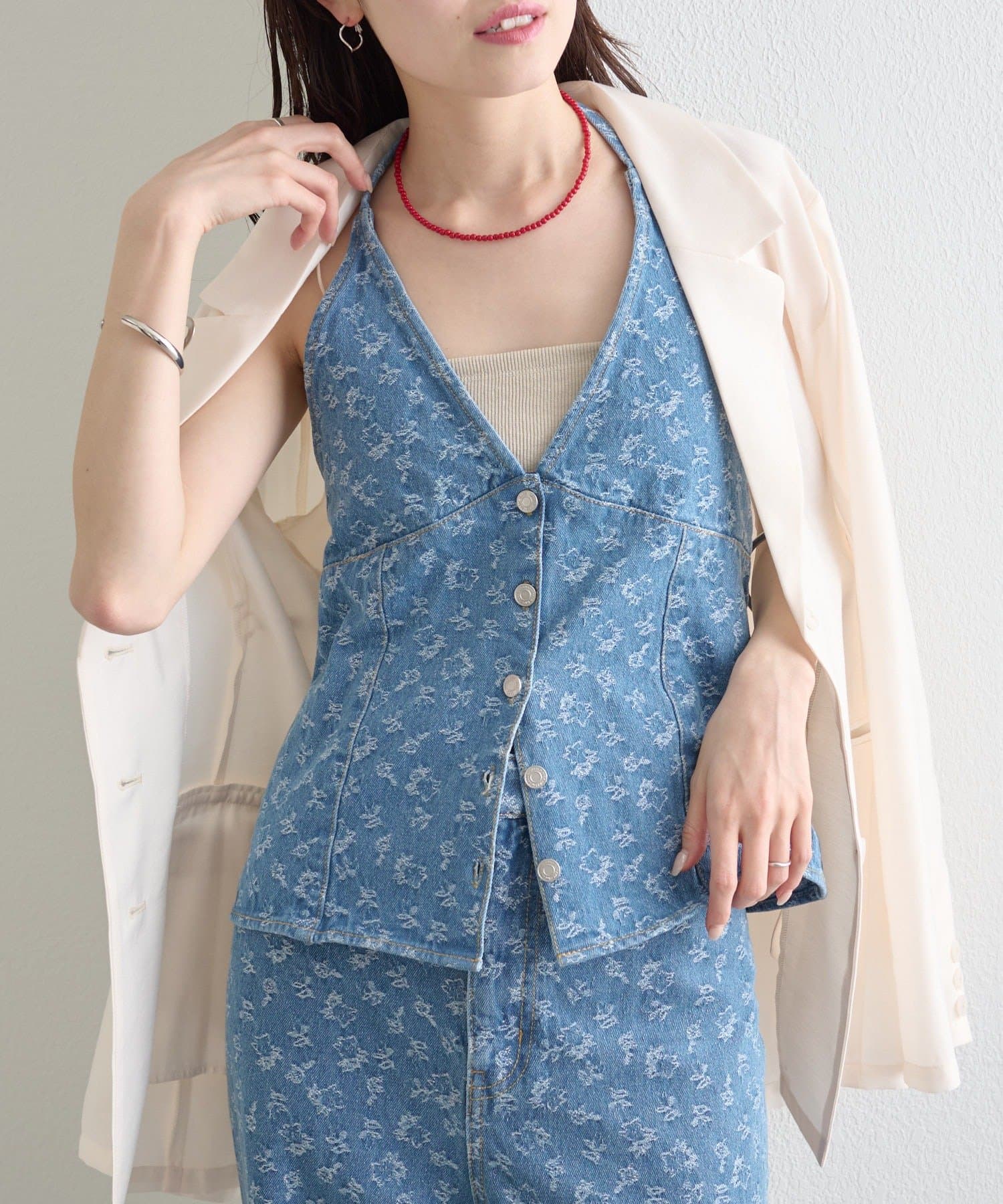 ・フラワー柄を落とし込んだデニム素材で、カジュアルになりすぎず女性らしさ感じられるセットアップアイテム。