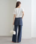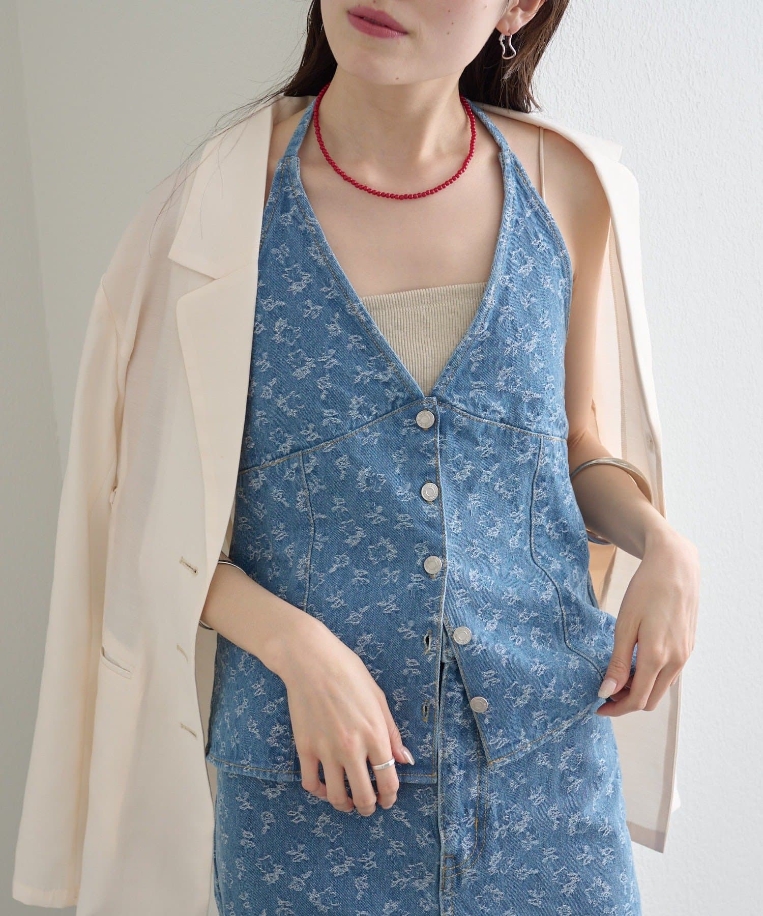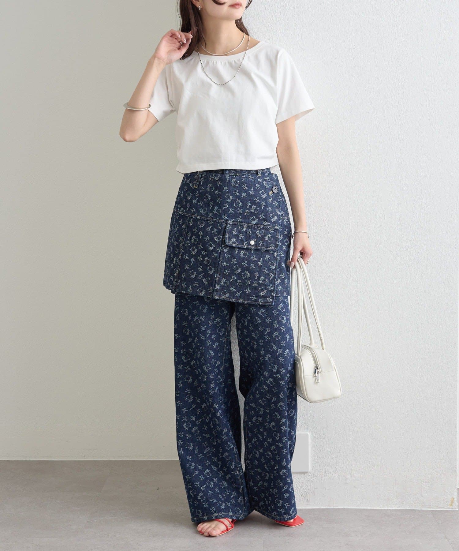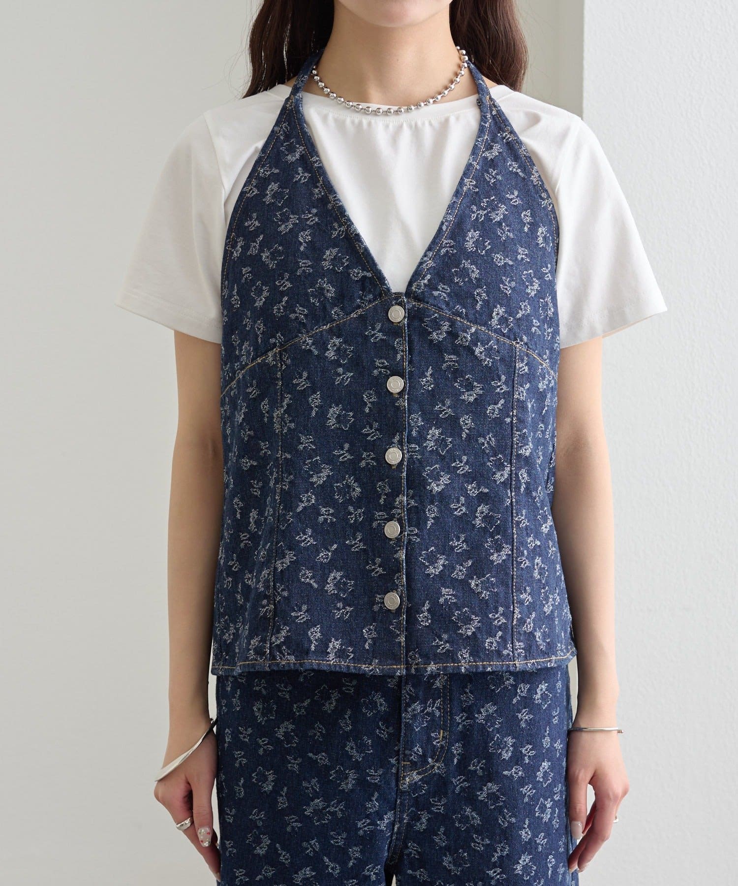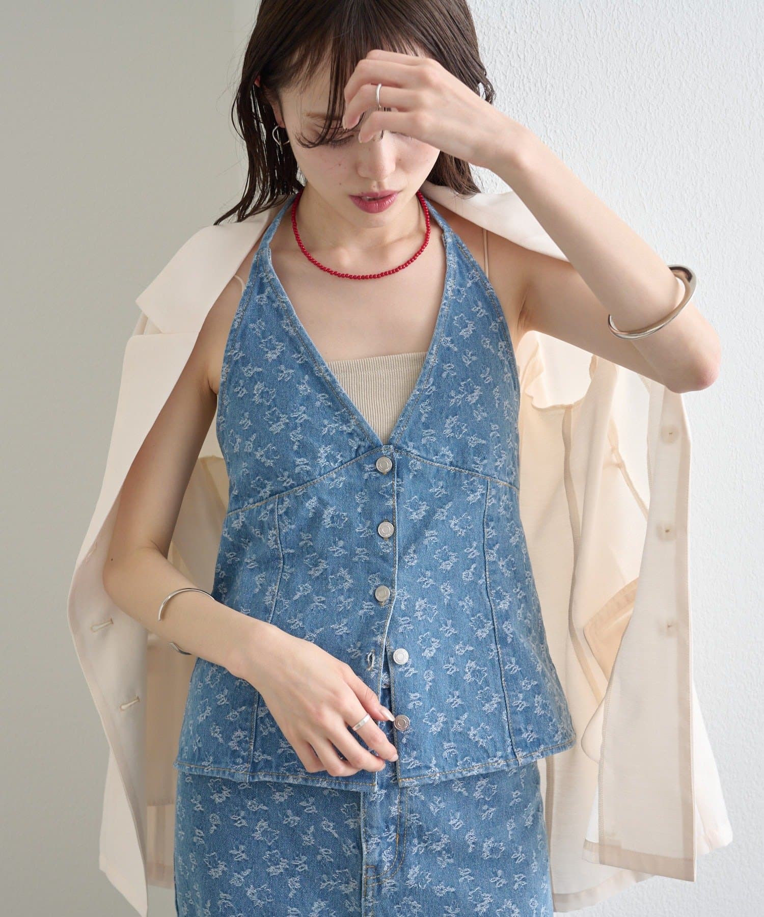 ・フラワー柄を落とし込んだデニム素材で、カジュアルになりすぎず女性らしさ感じられるセットアップアイテム。