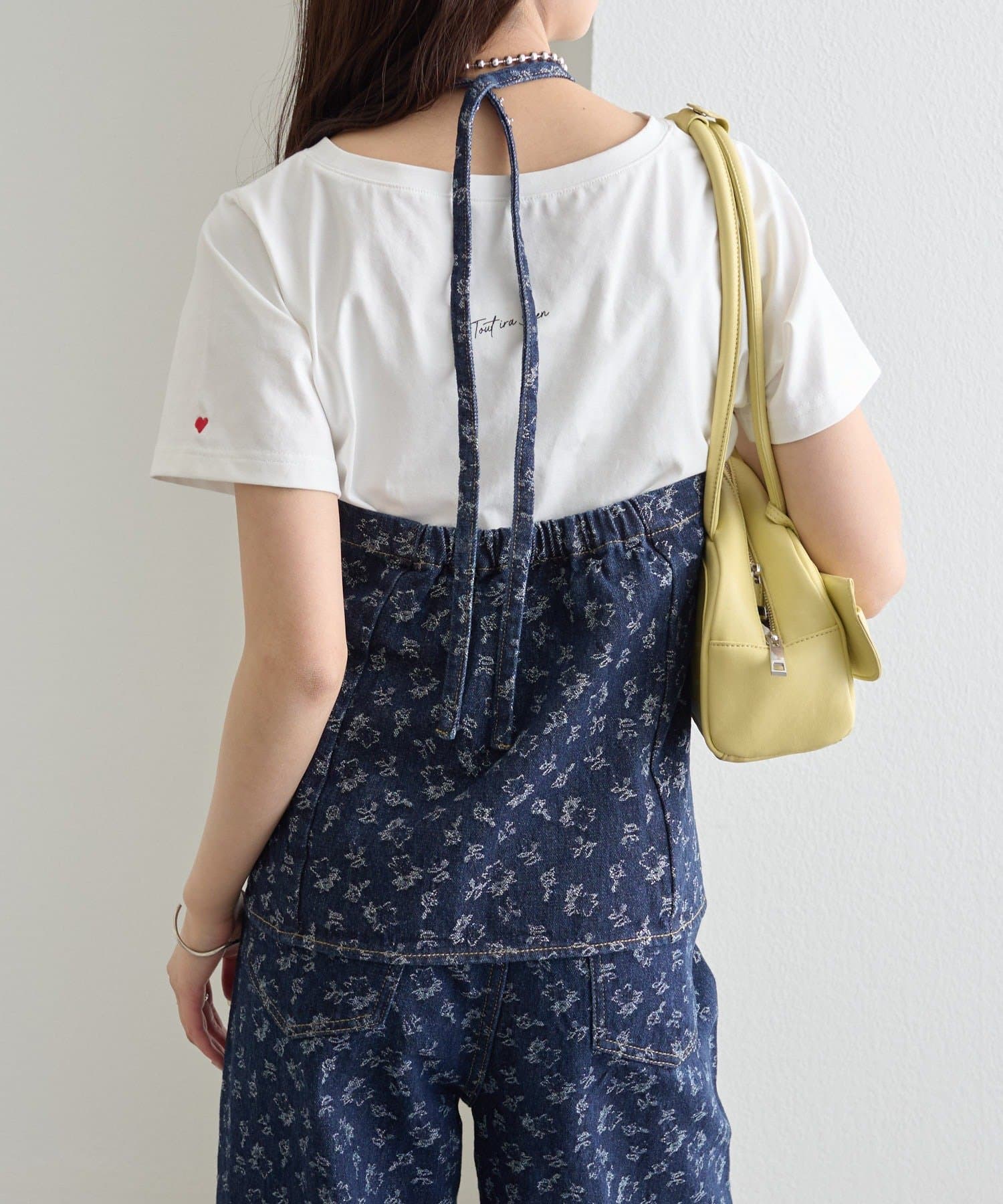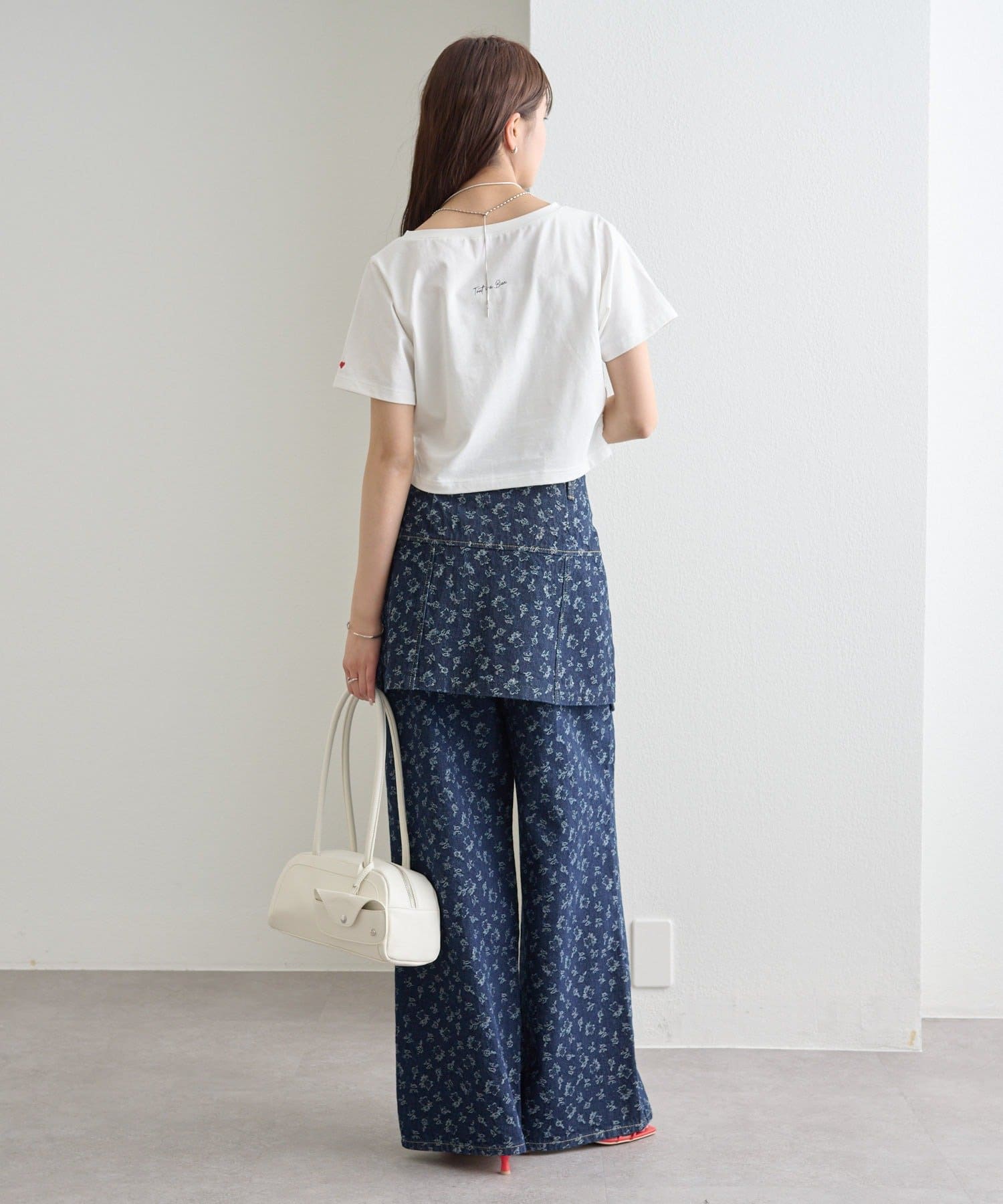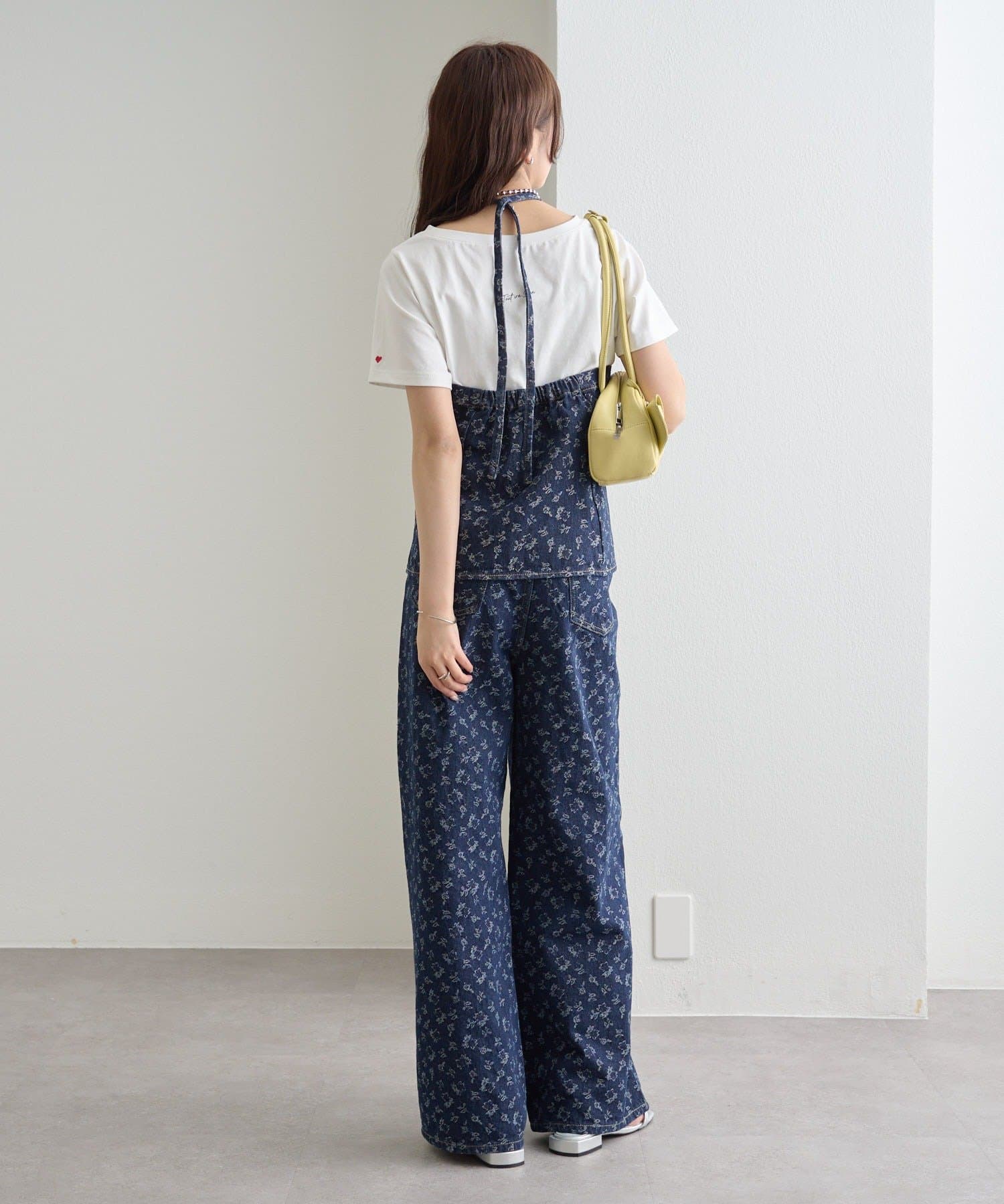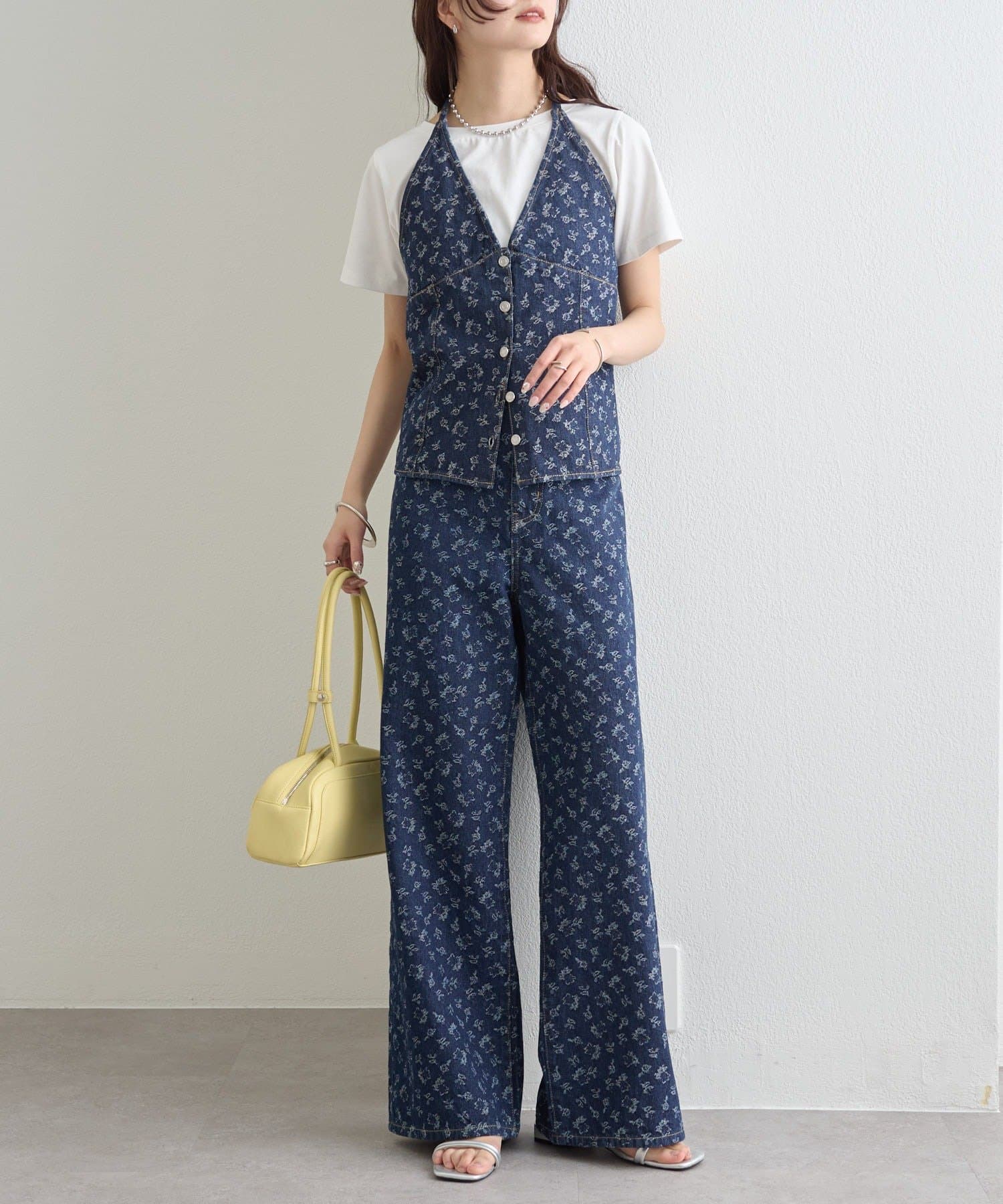 フラワーデザインが女性らしさをプラスするデニムセットアップ