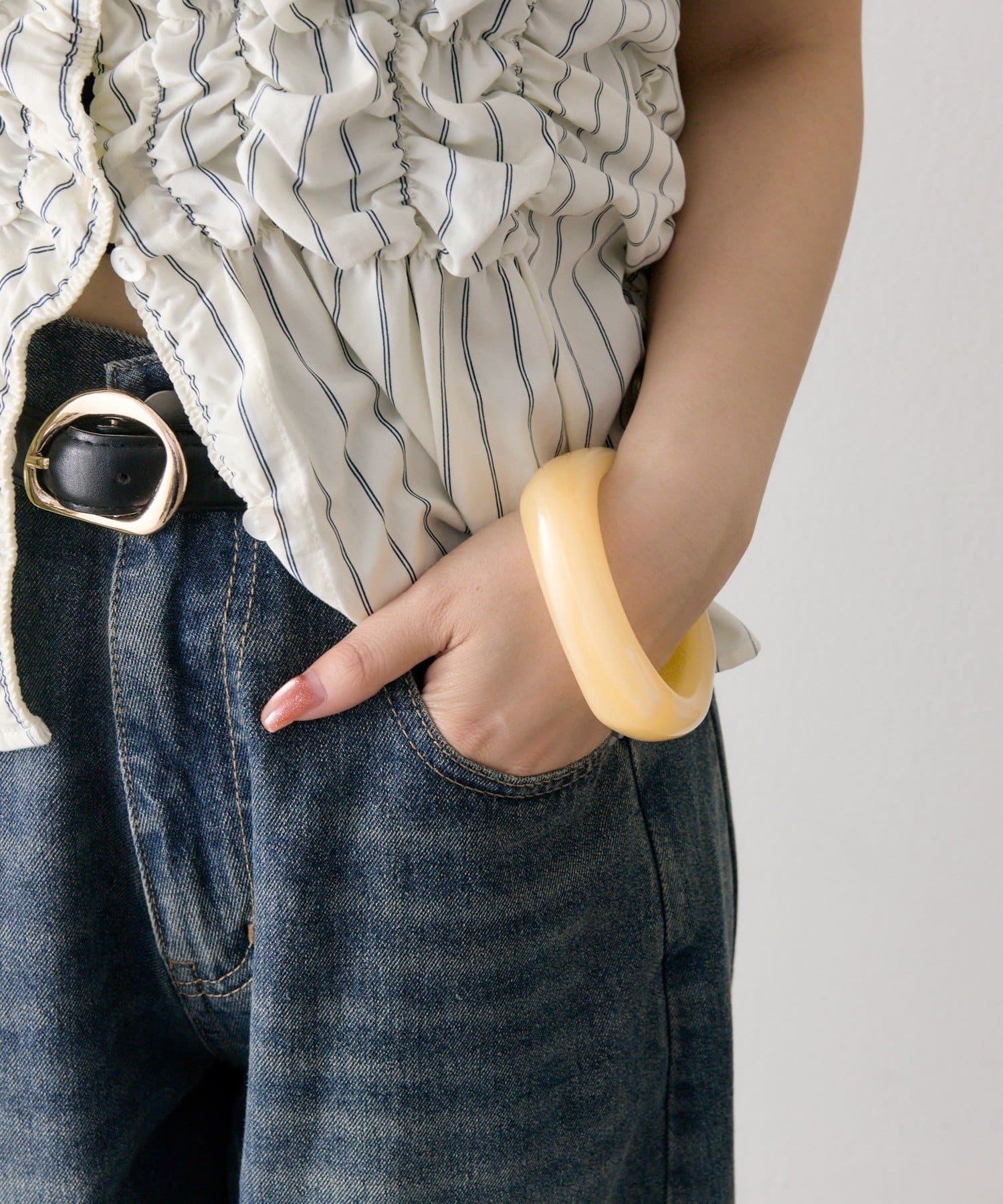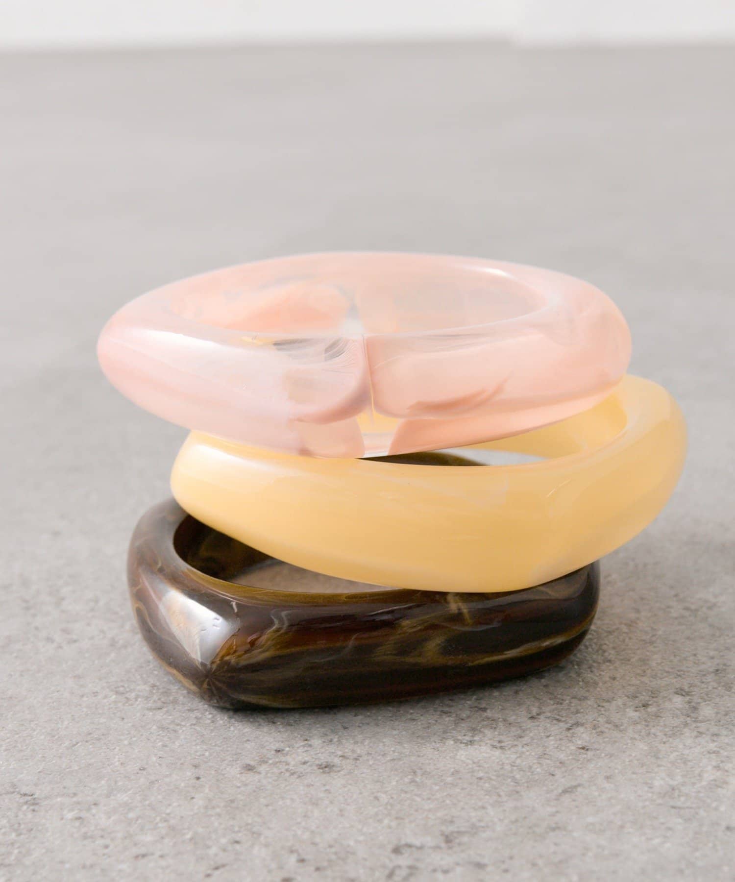 ・涼しげなクリア素材にマーブル模様を施したスクエアバングル。