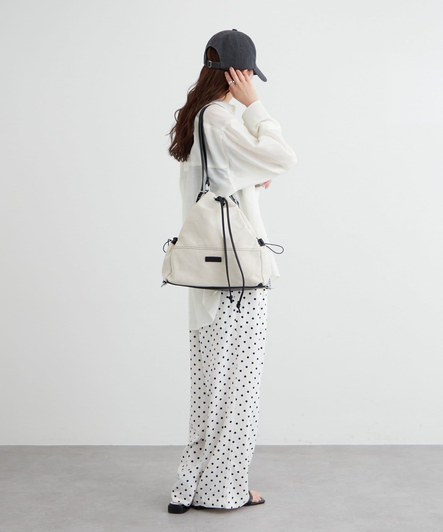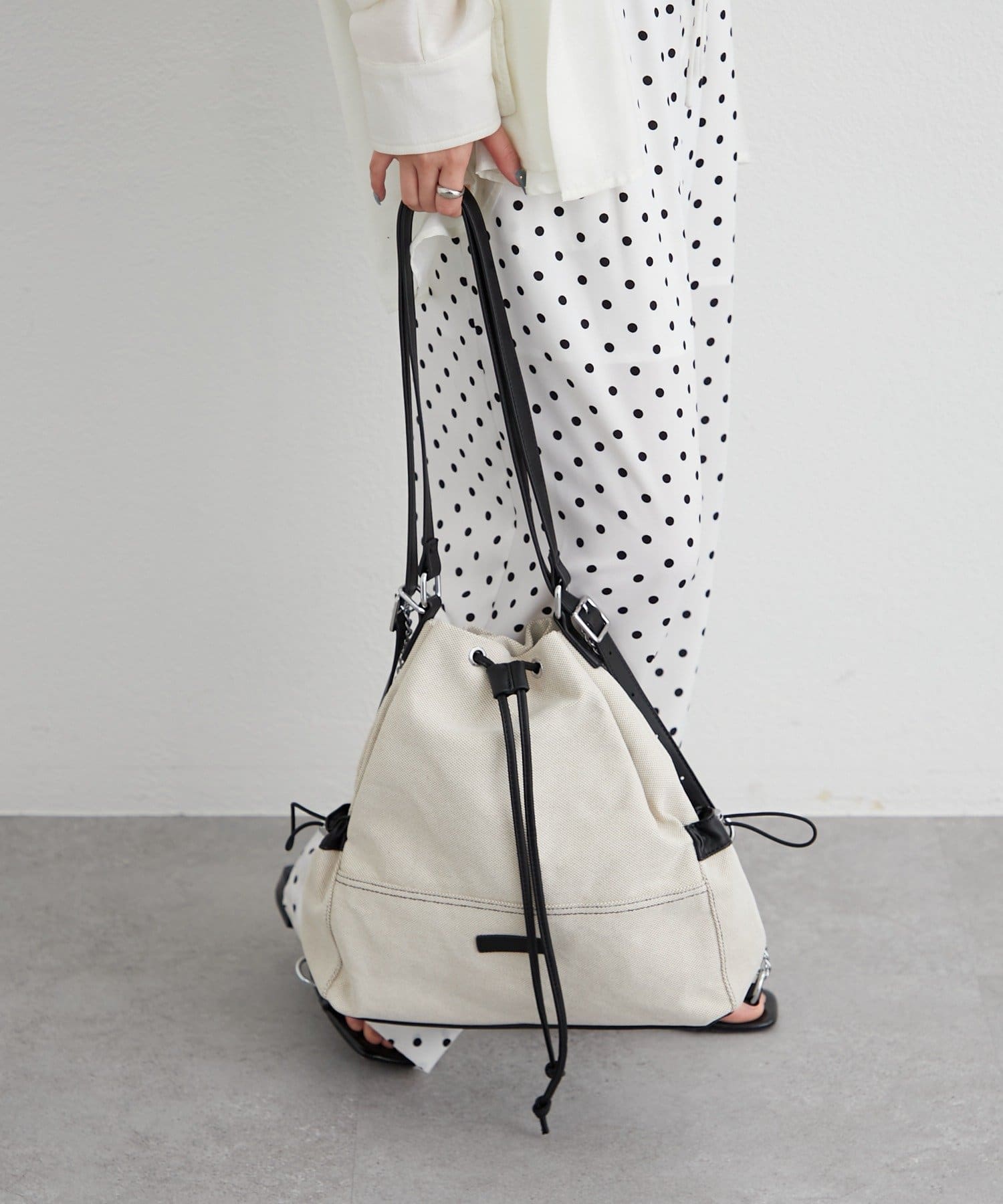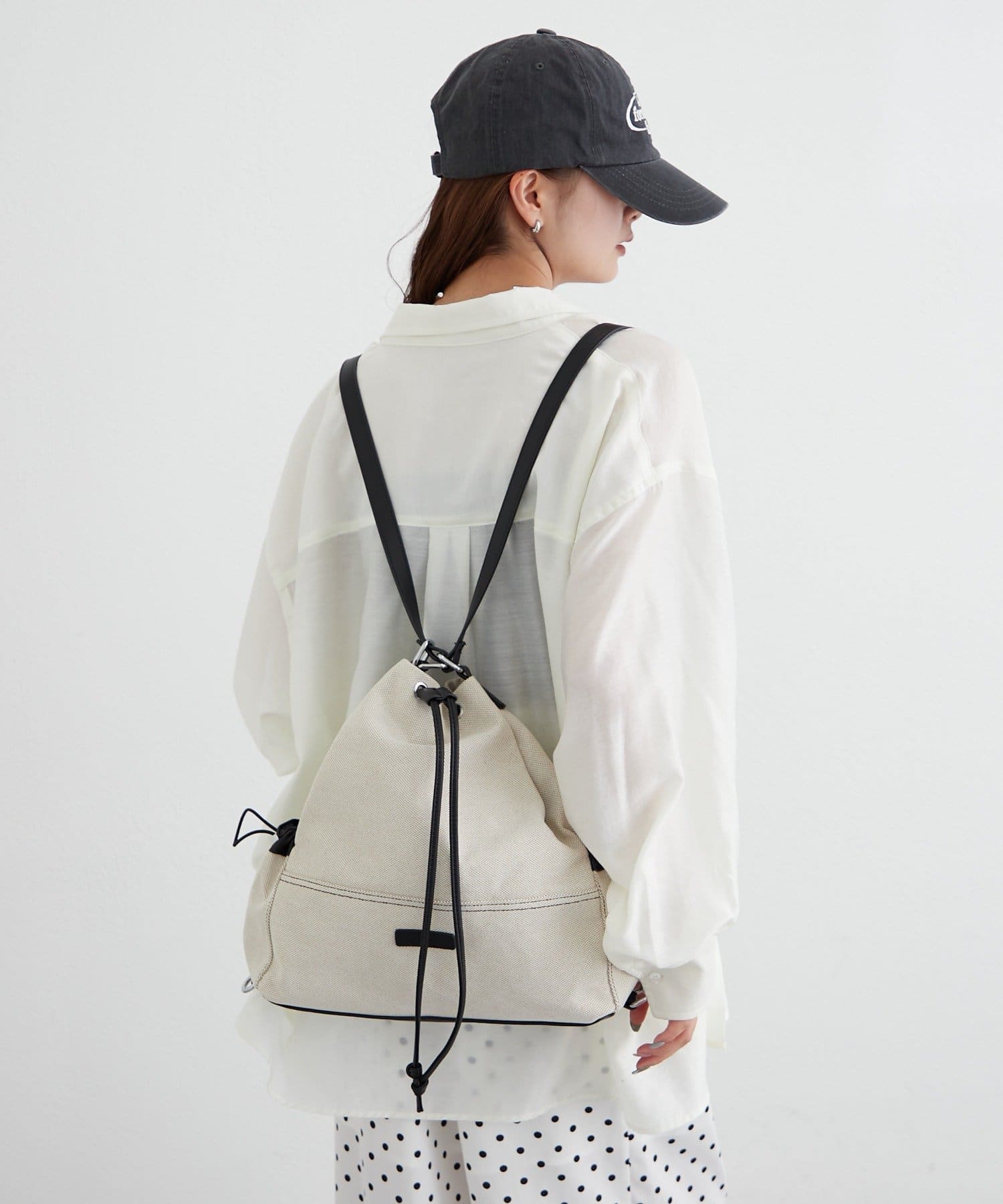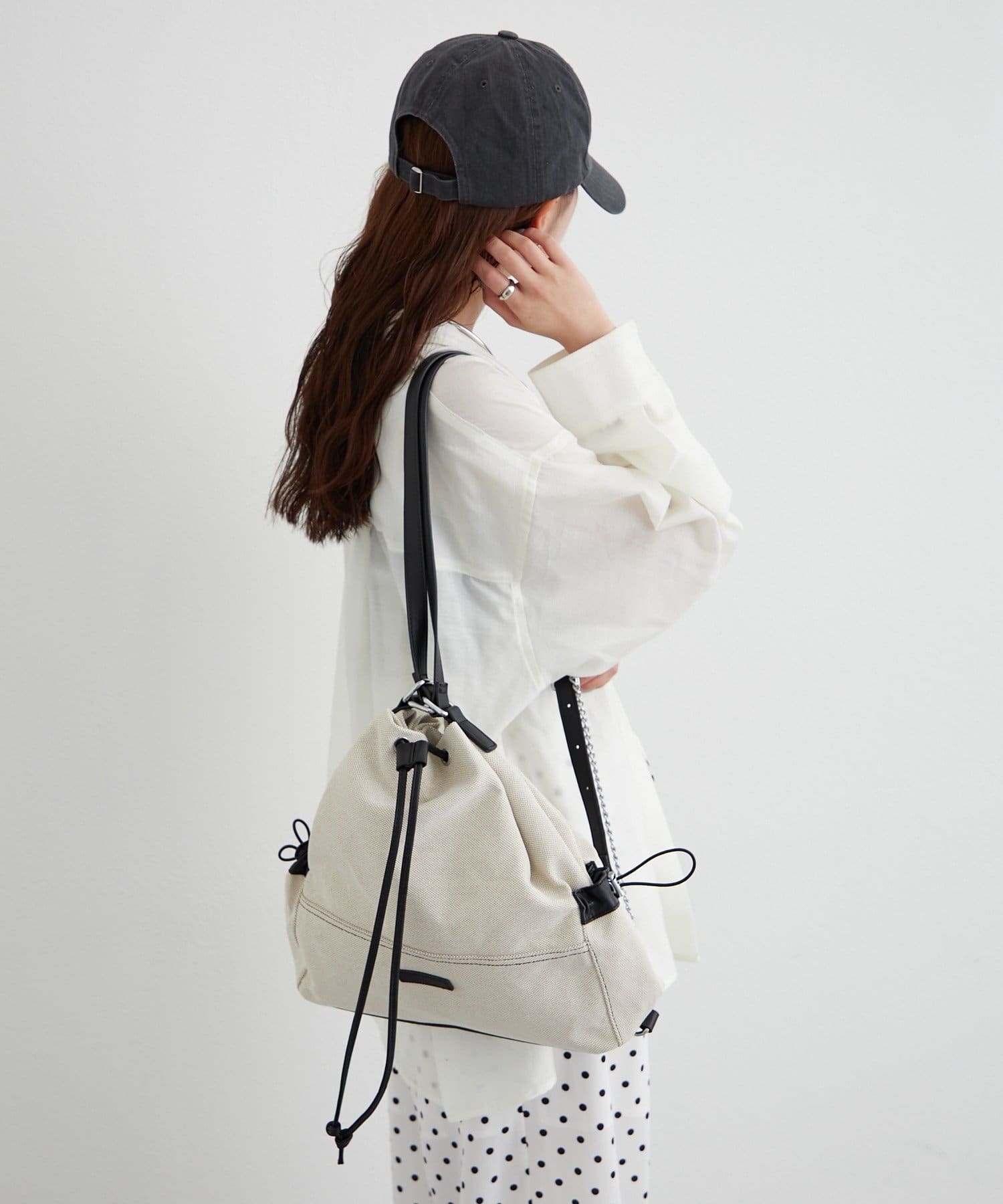 ・巾着仕様で開閉がしやすく、程よくラフなシルエットがこなれ感を演出。