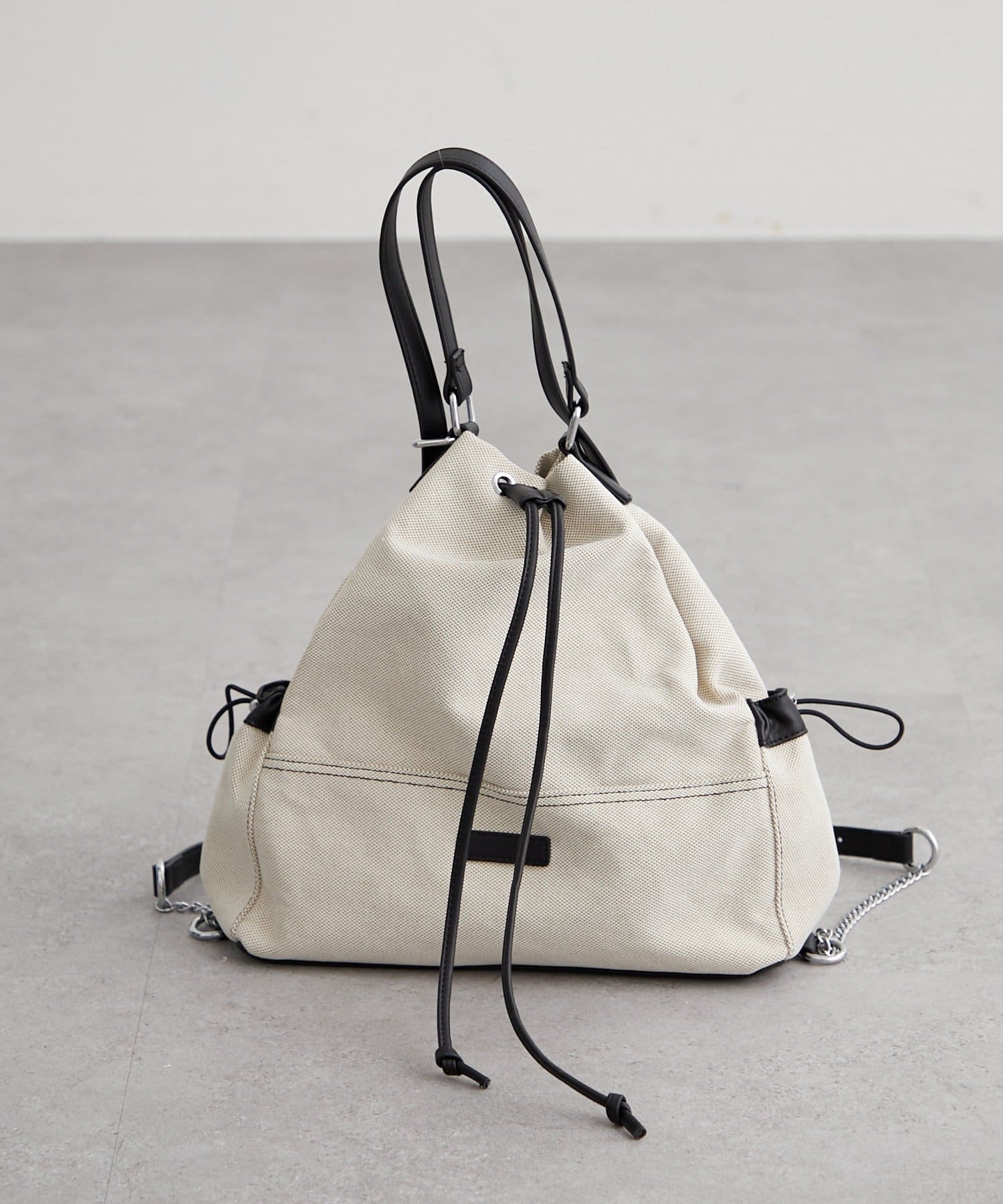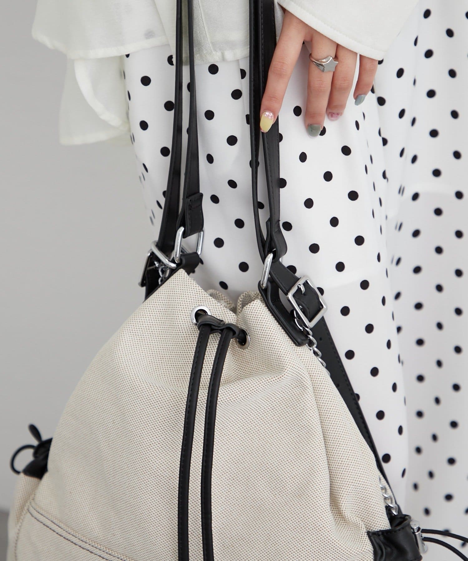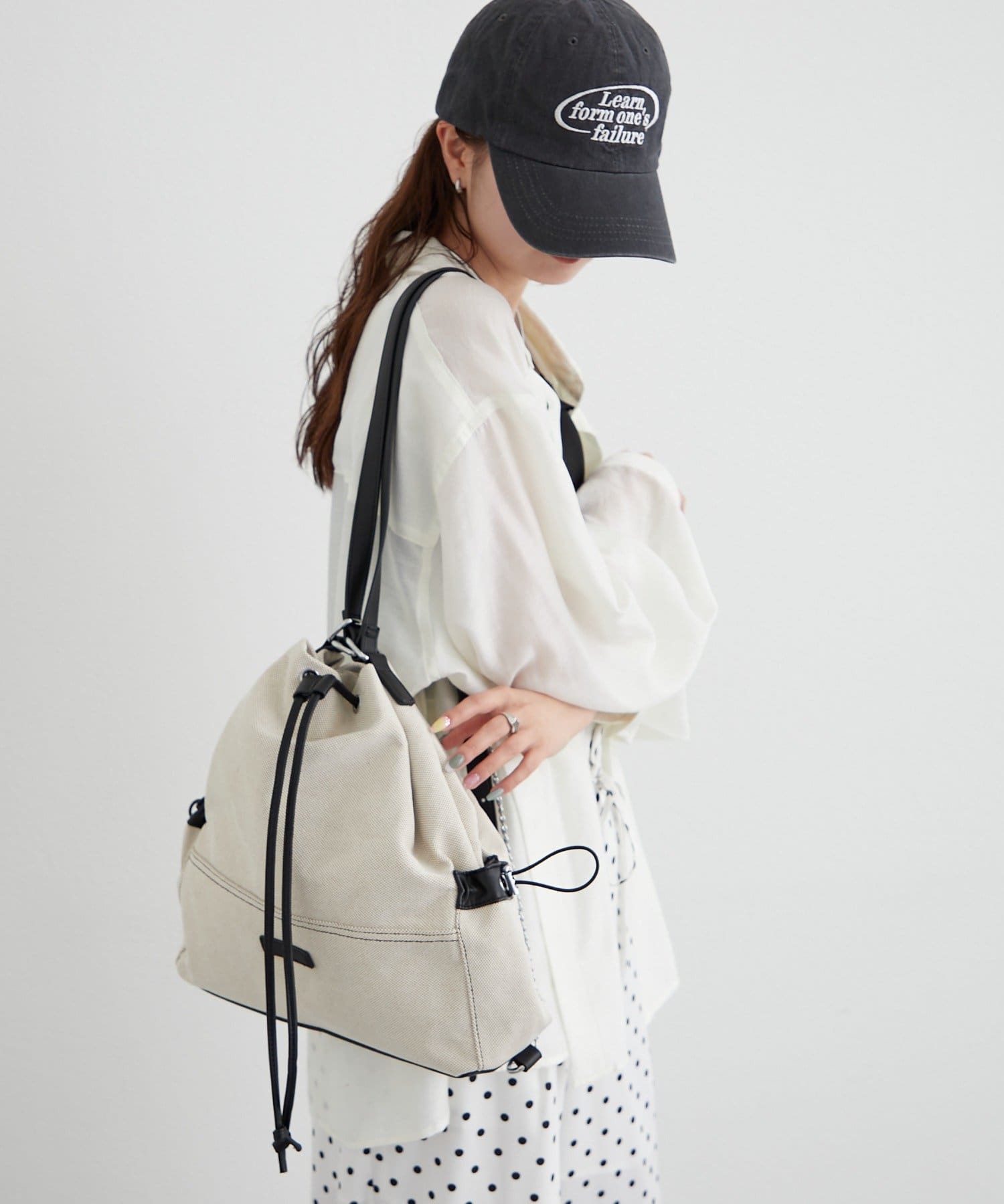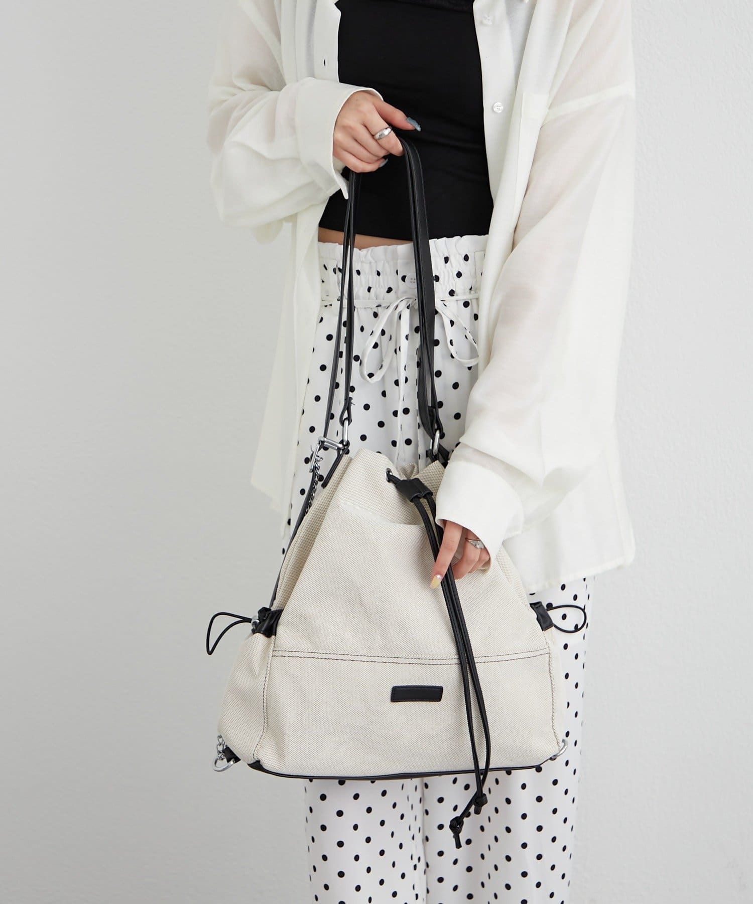 ・巾着仕様で開閉がしやすく、程よくラフなシルエットがこなれ感を演出。