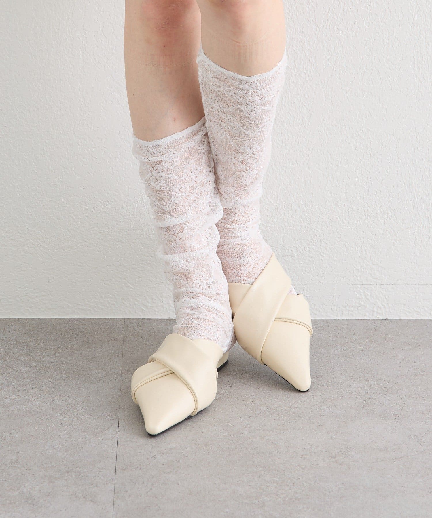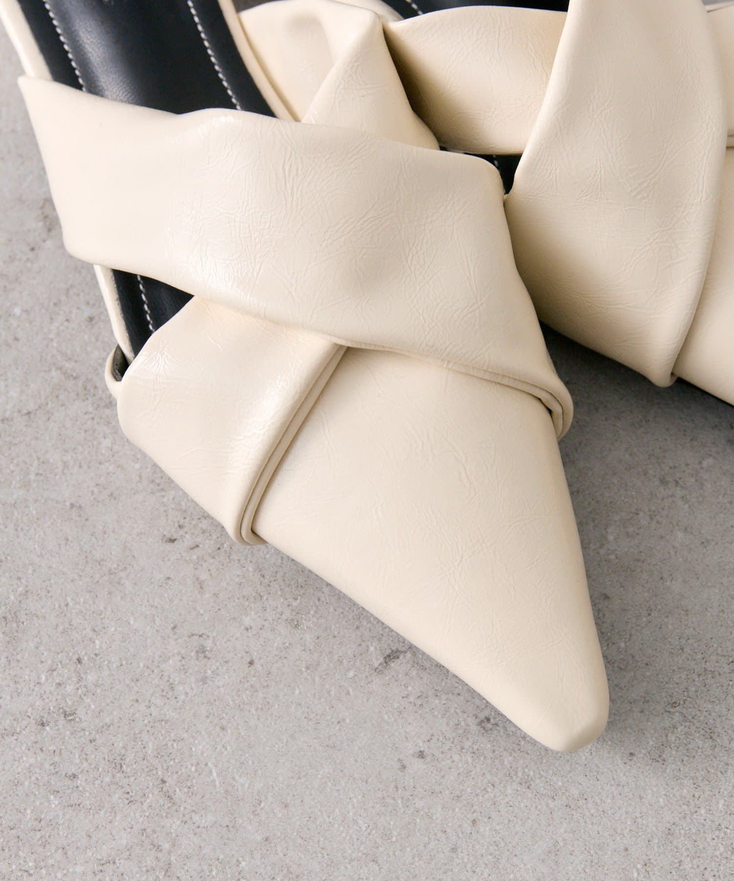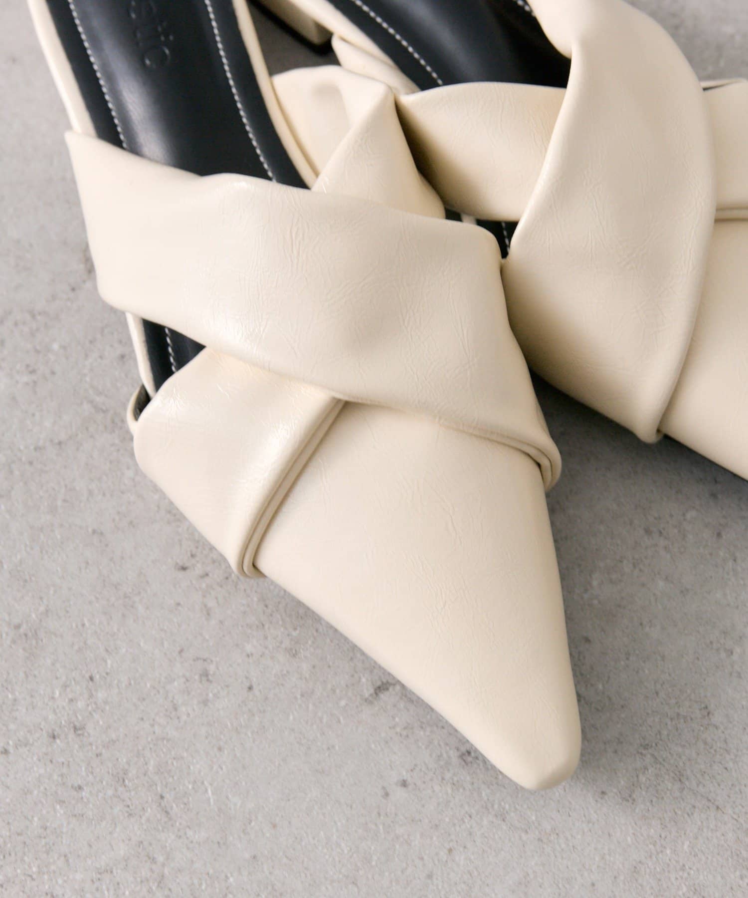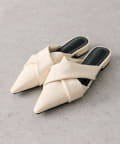 ・ポインテッドトゥのすっきりとしたシルエットに、クロスデザインがアクセントになったミュール。
