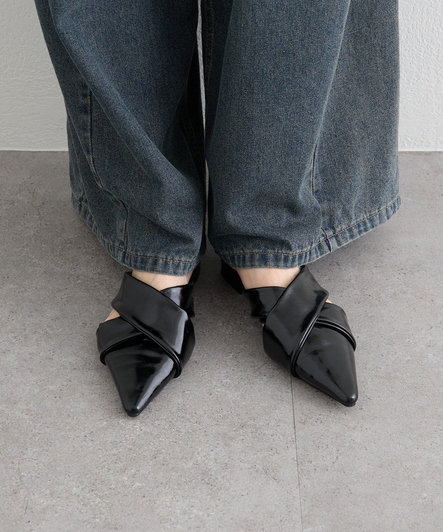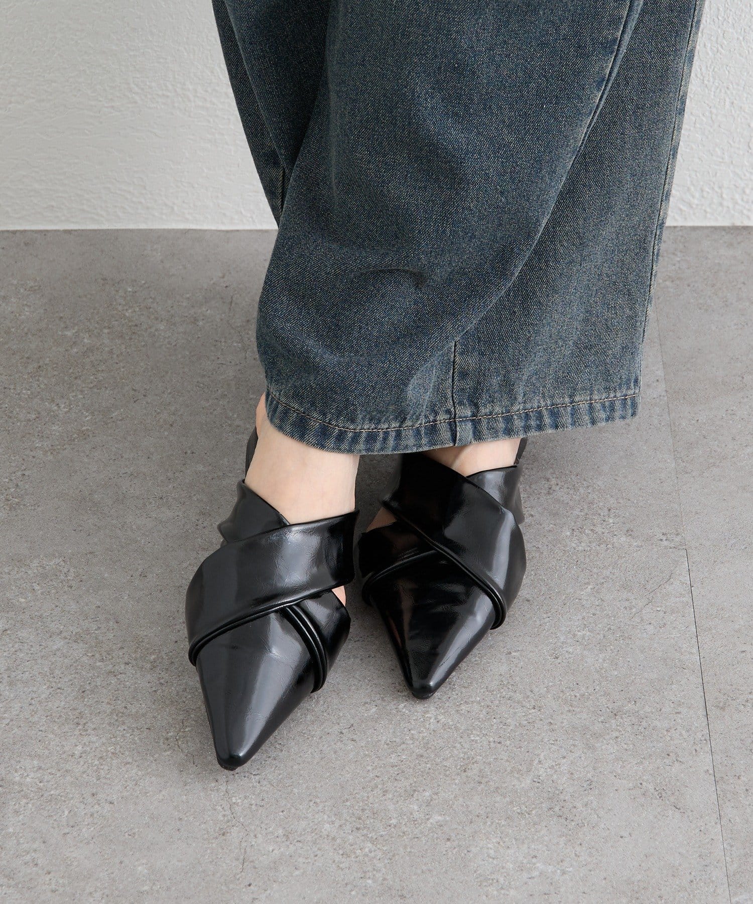 ポインテッドトゥクロスミュール