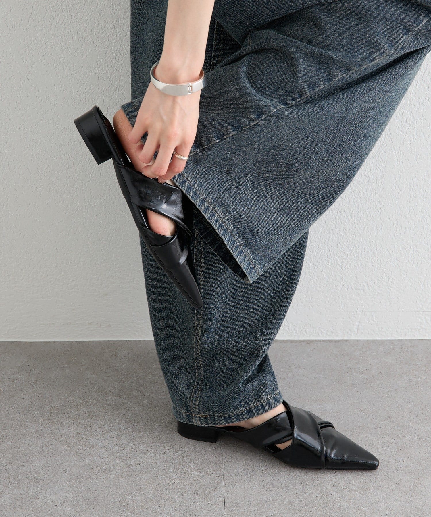 足元をシャープに仕上げる、クロスミュール