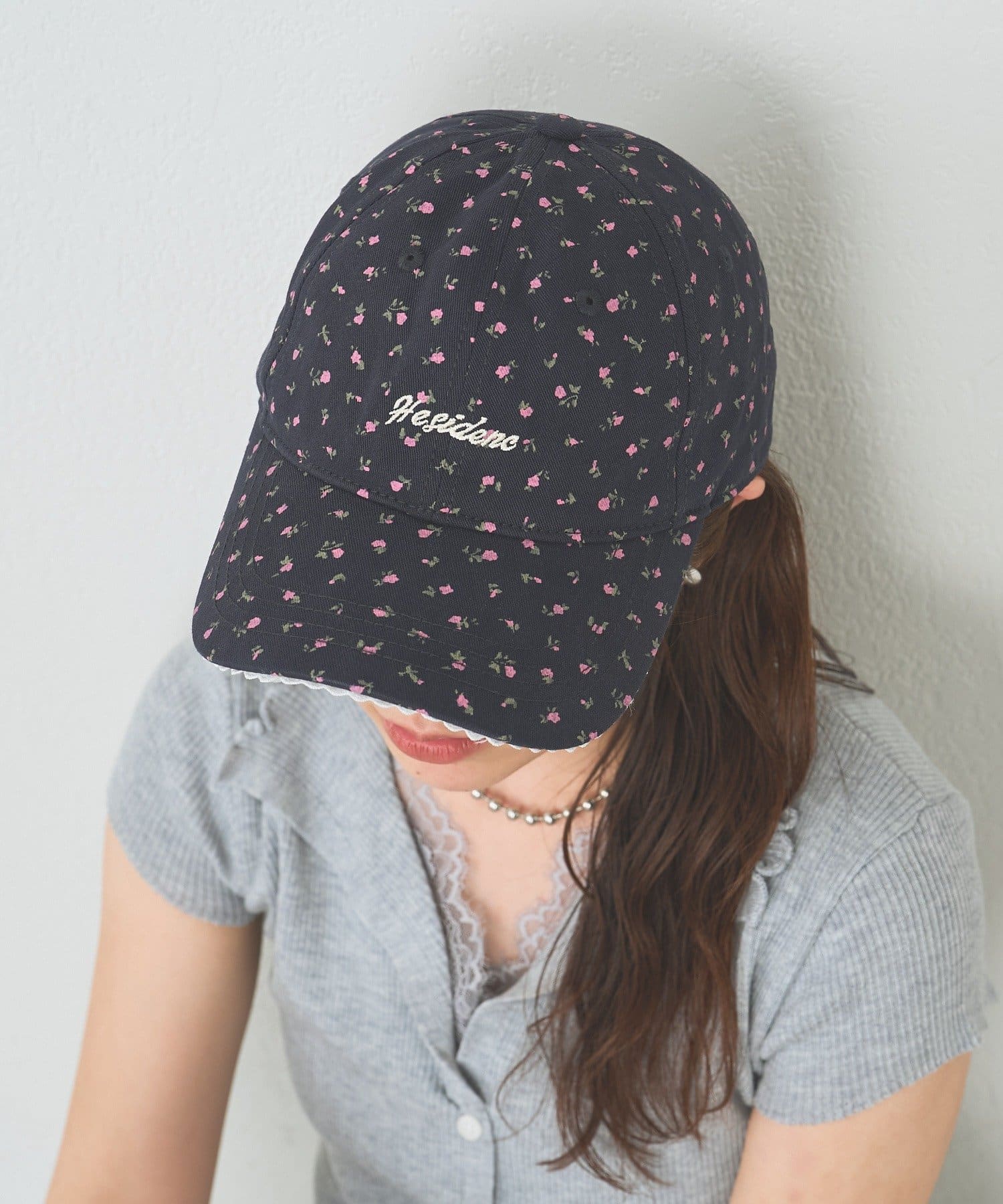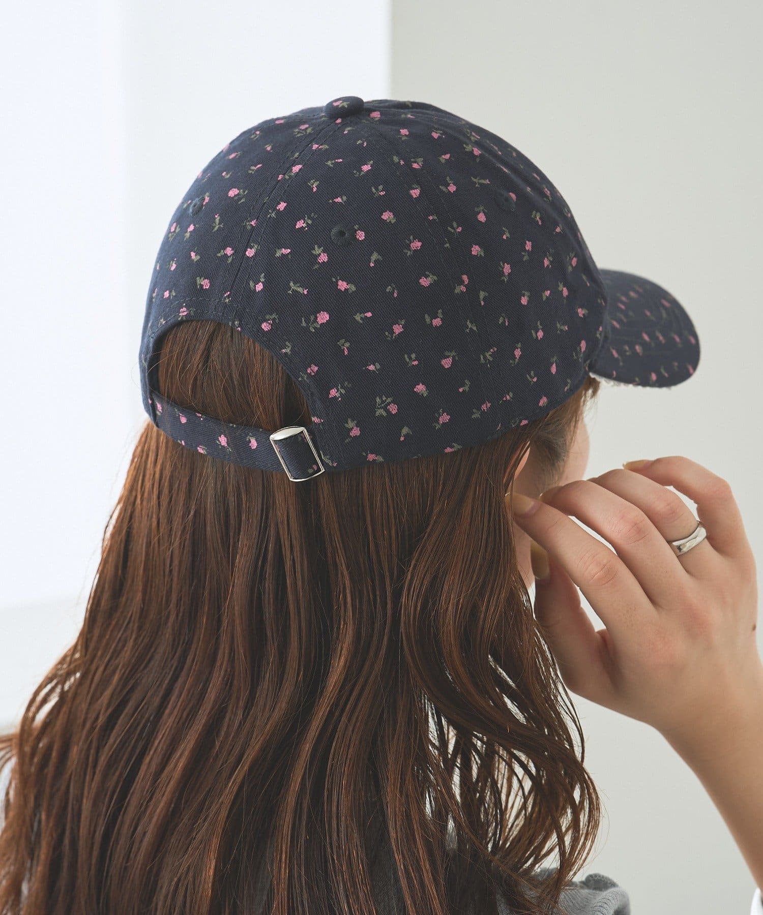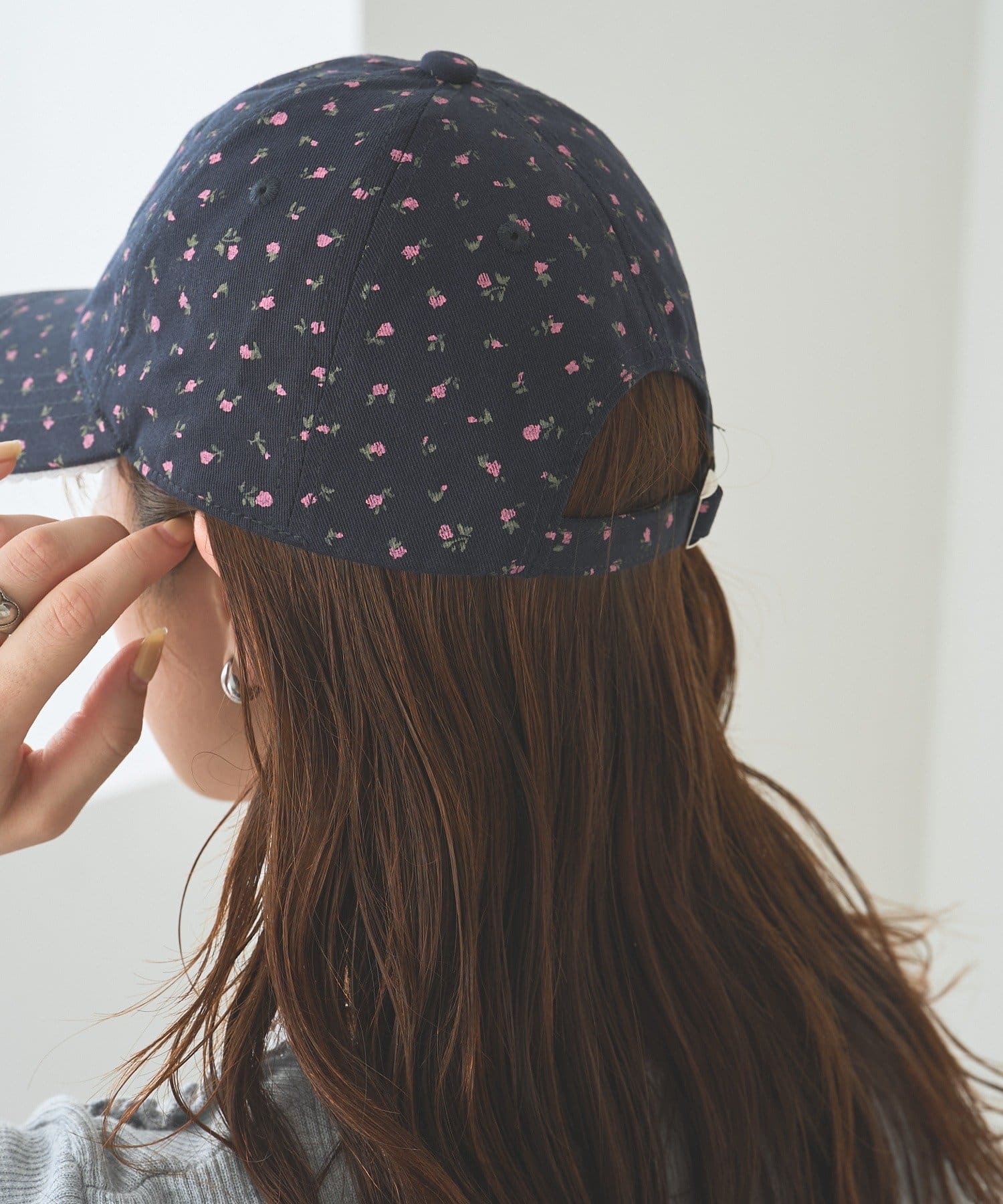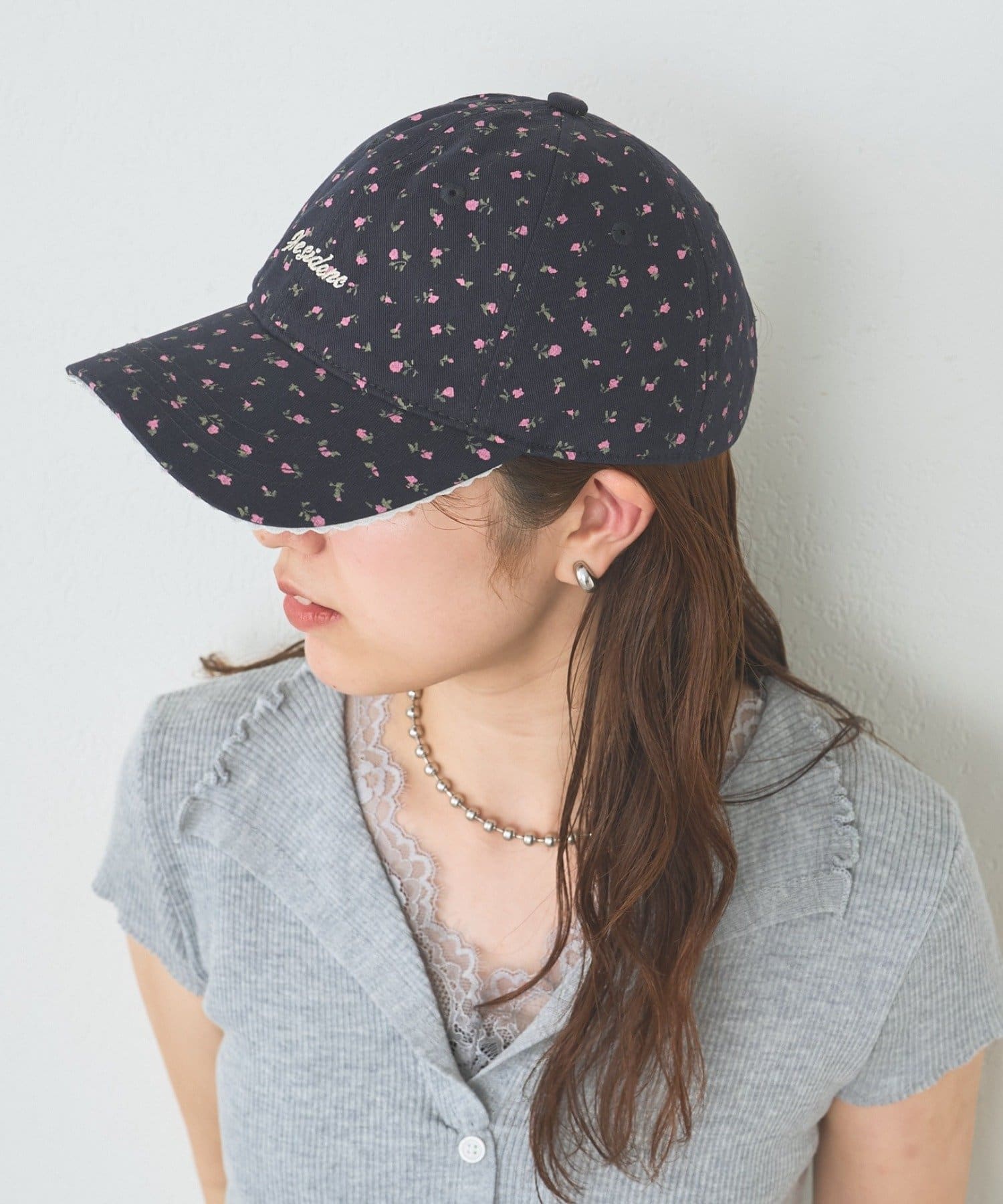 スタイリングにカジュアルさと小花柄でフェミニンさをプラスしてくれる刺繍キャップ