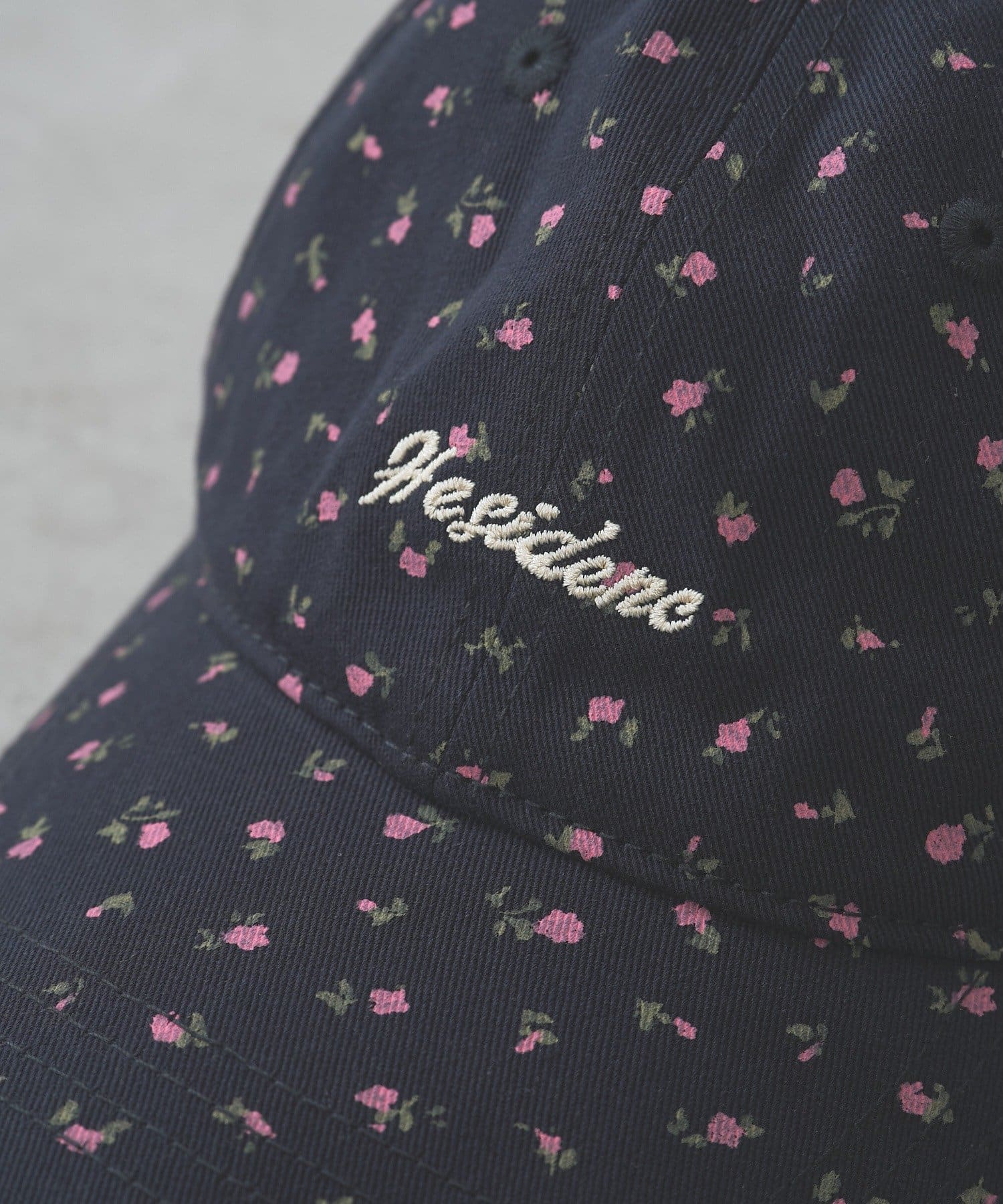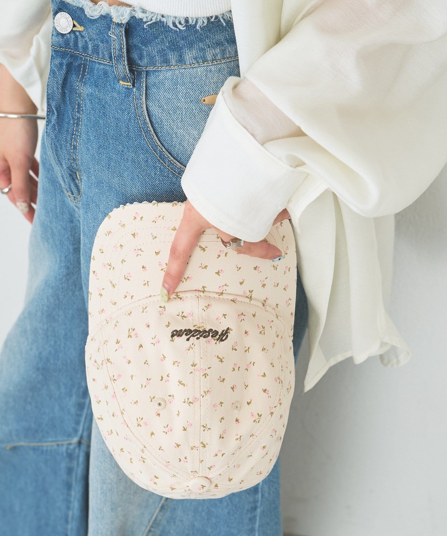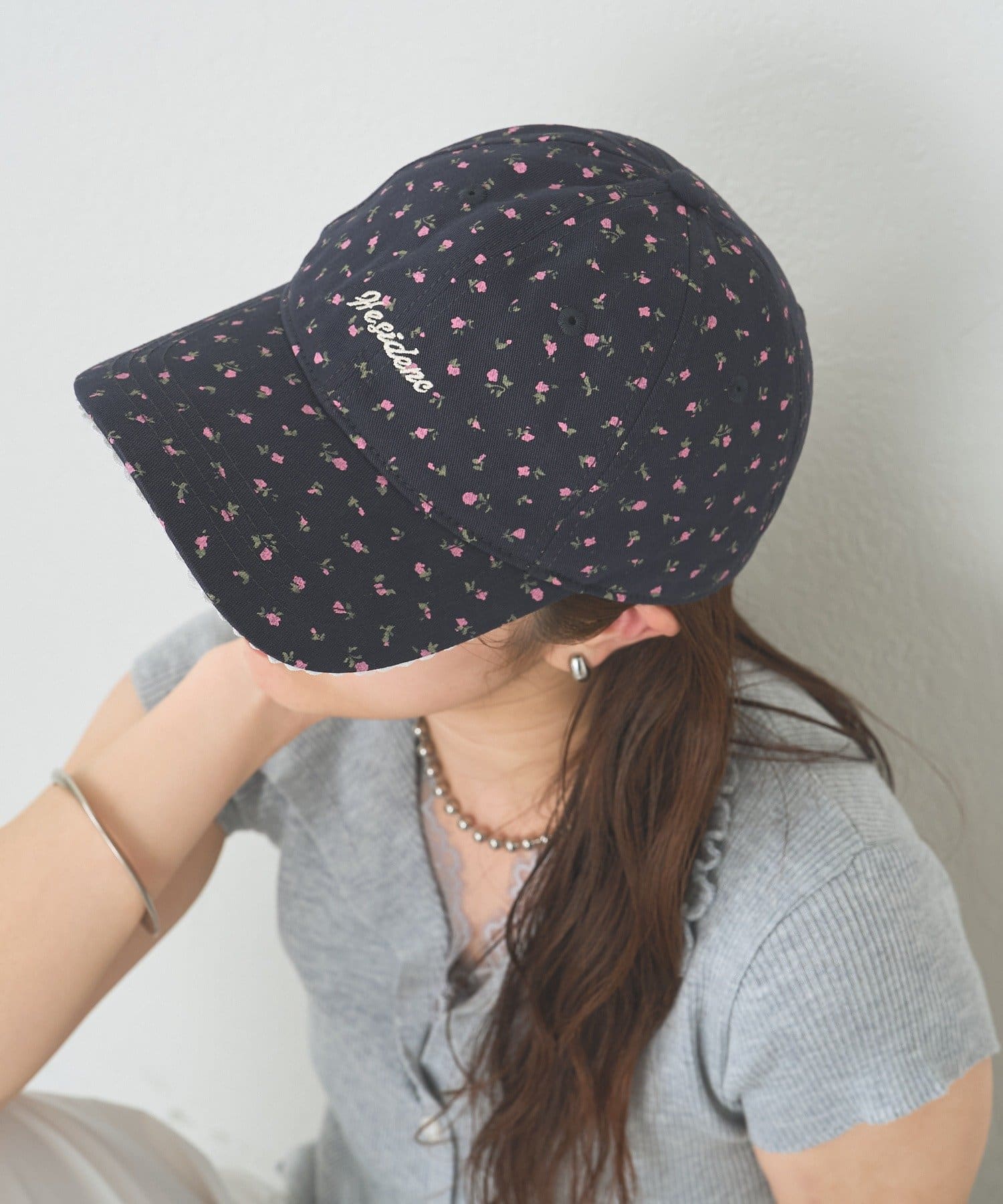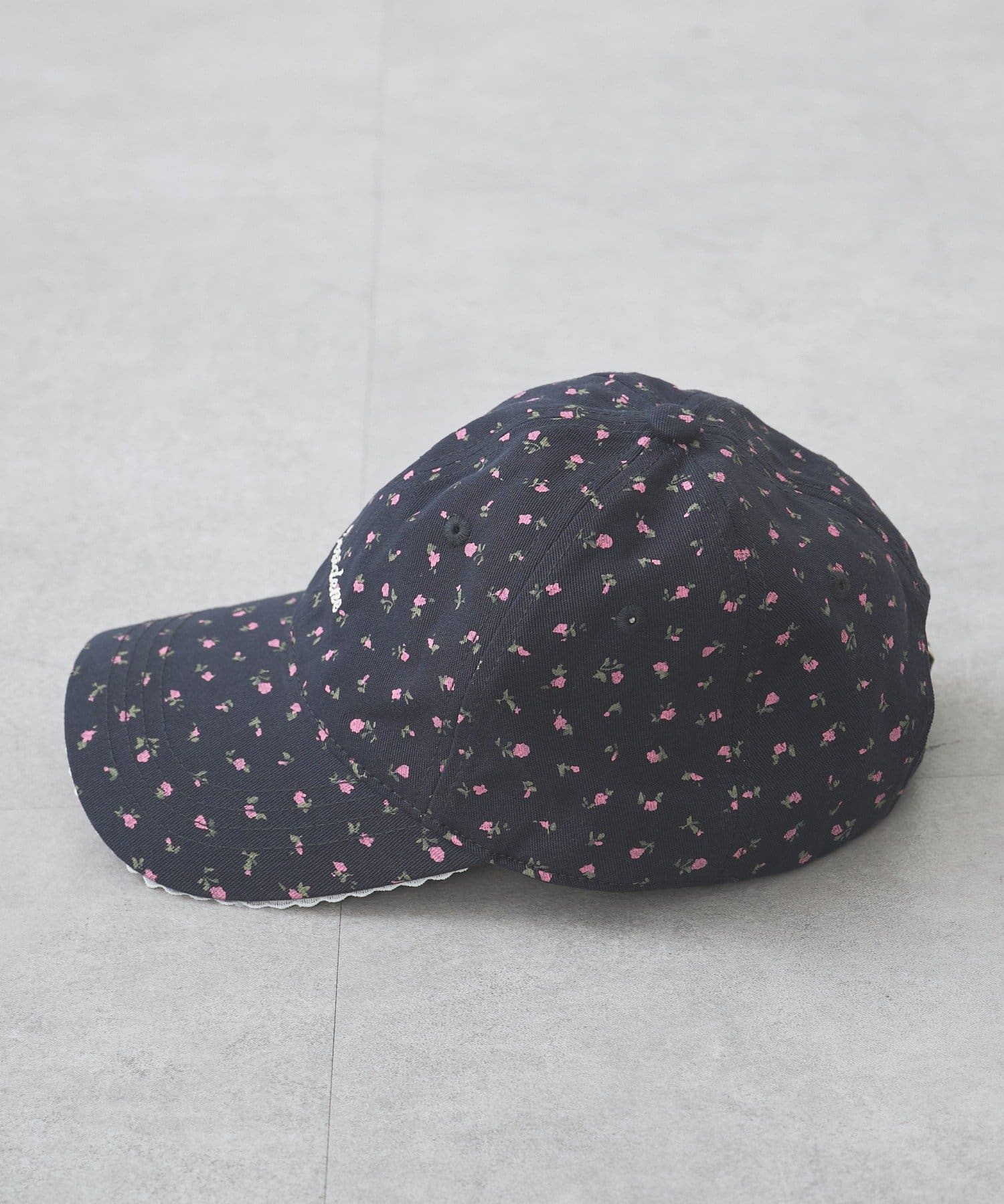スタイリングにカジュアルさと小花柄でフェミニンさをプラスしてくれる刺繍キャップ