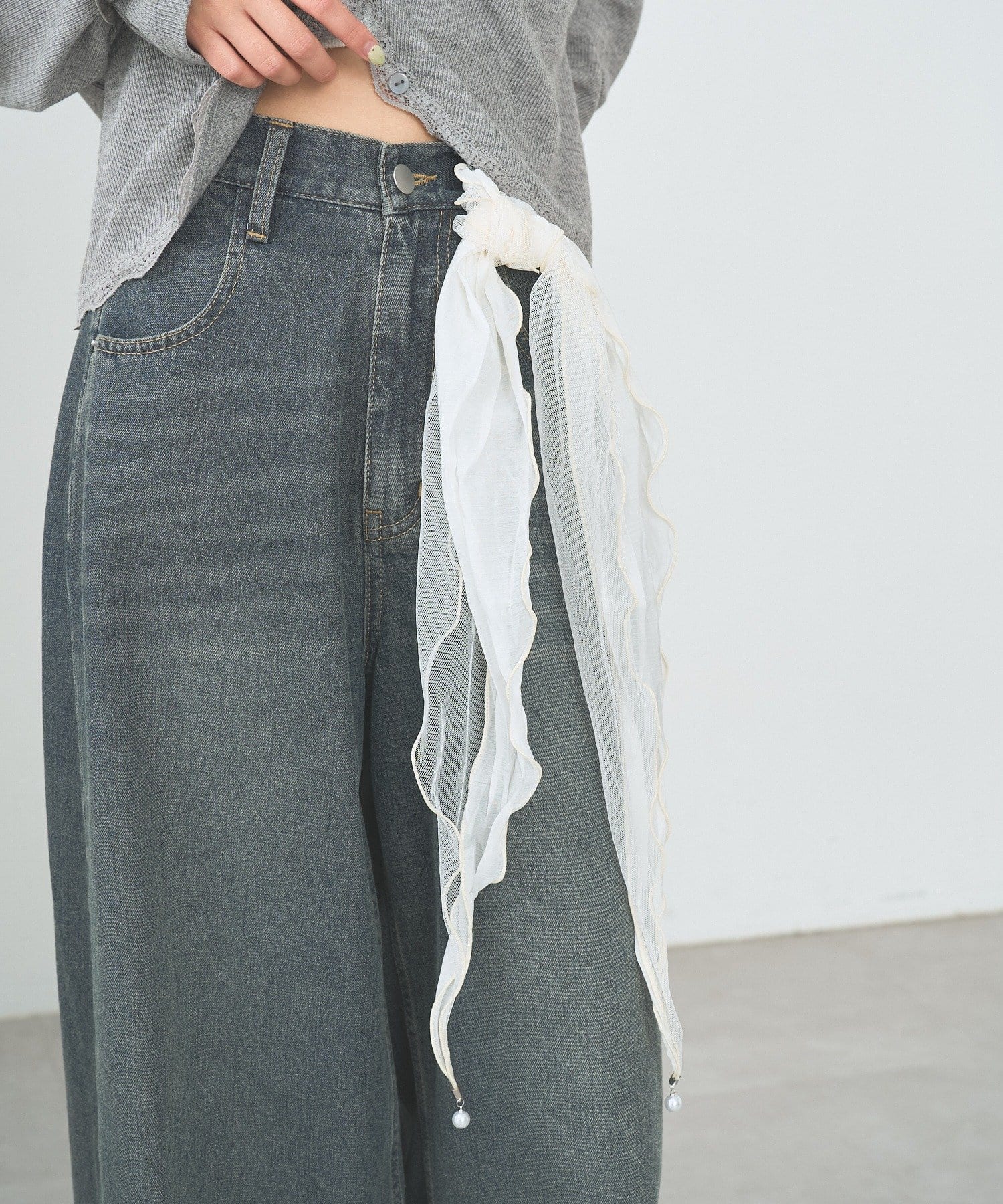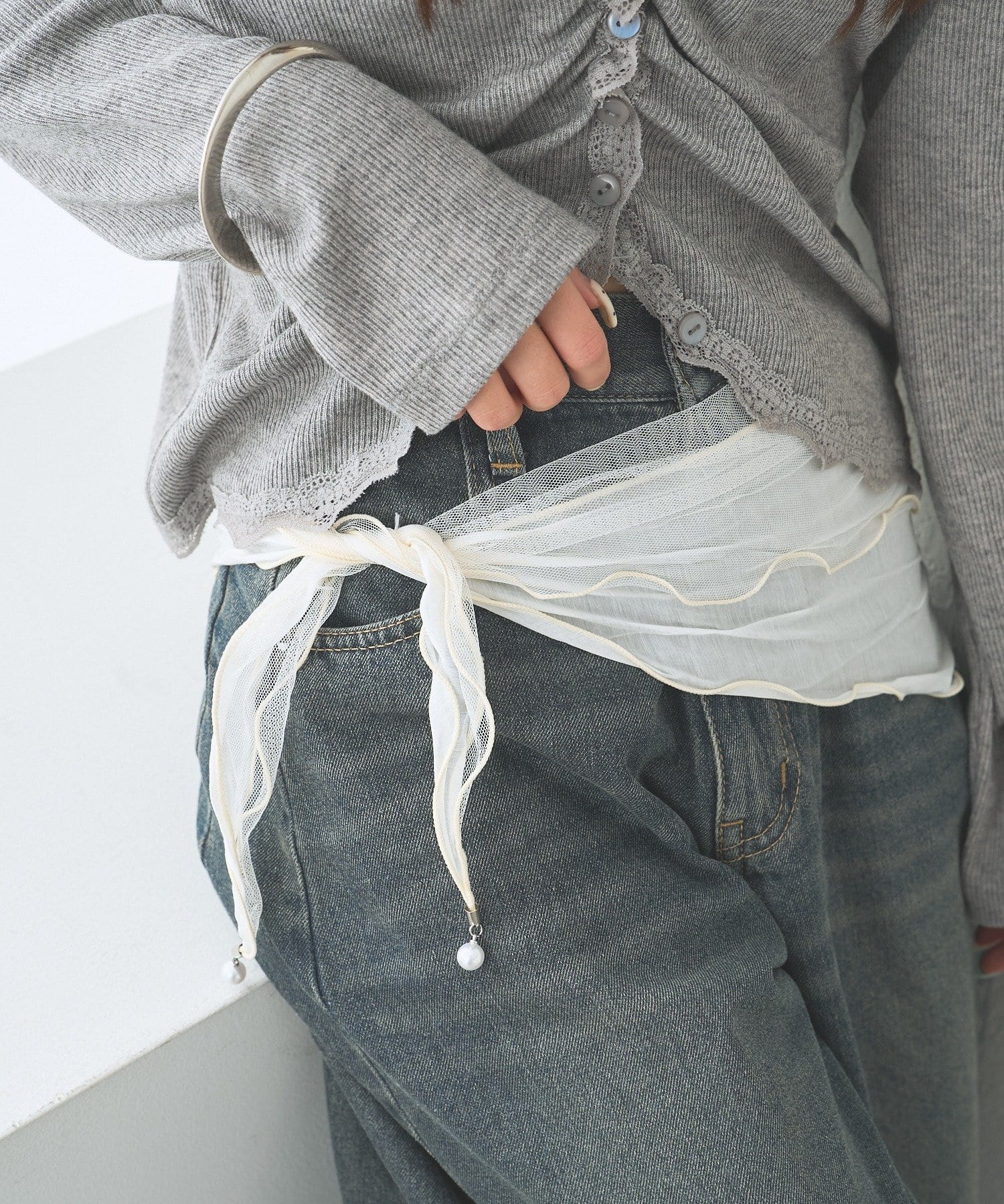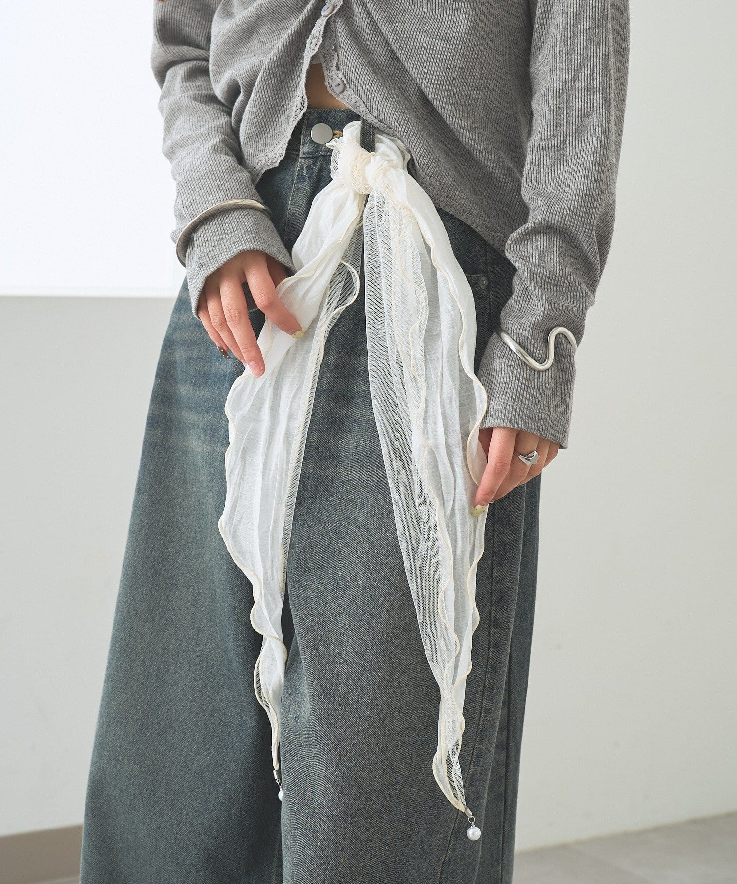 ウエスト部分にさっと巻くだけでスタイリングにムード感をプラスしてくれるワンポイントアイテム。