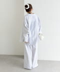 ・同素材のストライプBIGシャツとのセットアップスタイルもおすすめです。