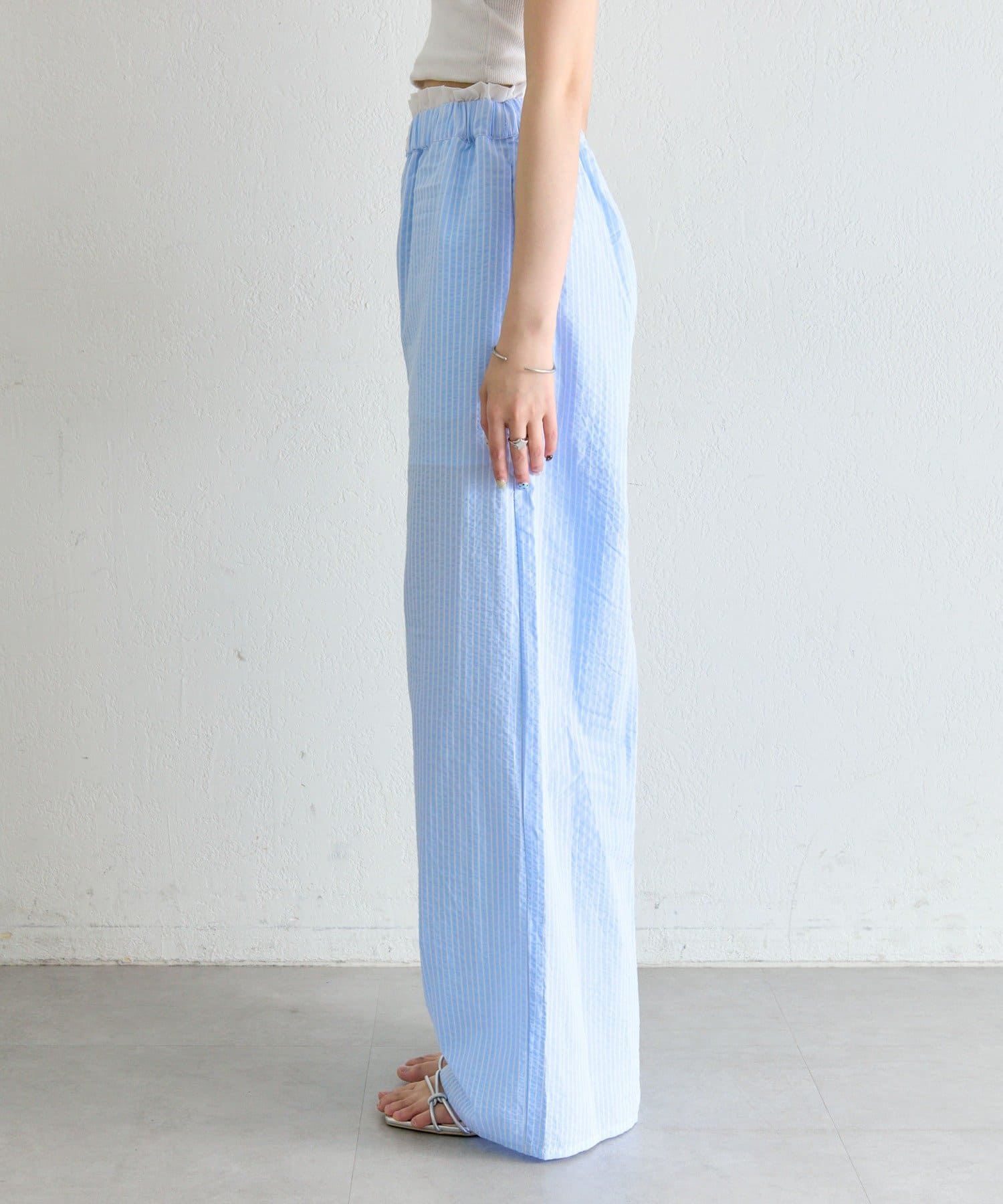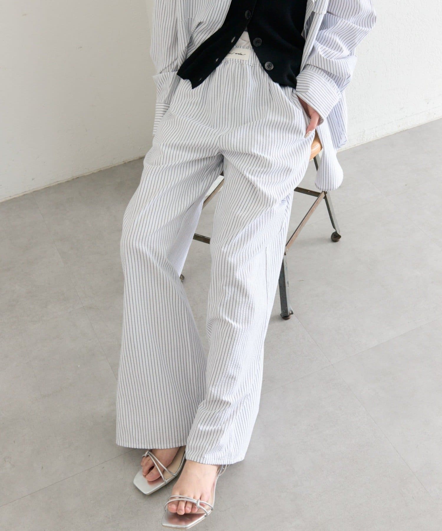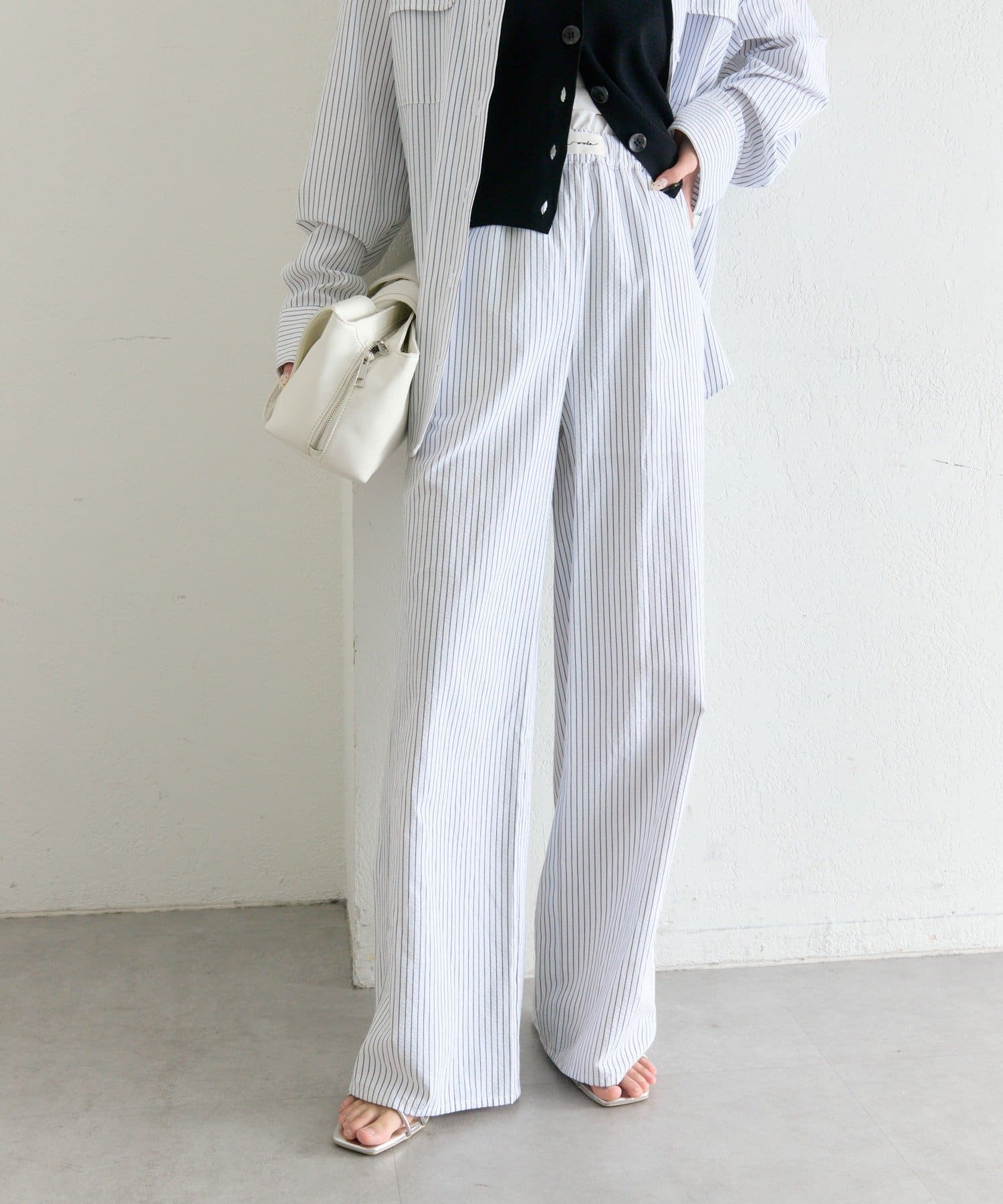 軽やか素材で履き心地の良いストライプイージーパンツ