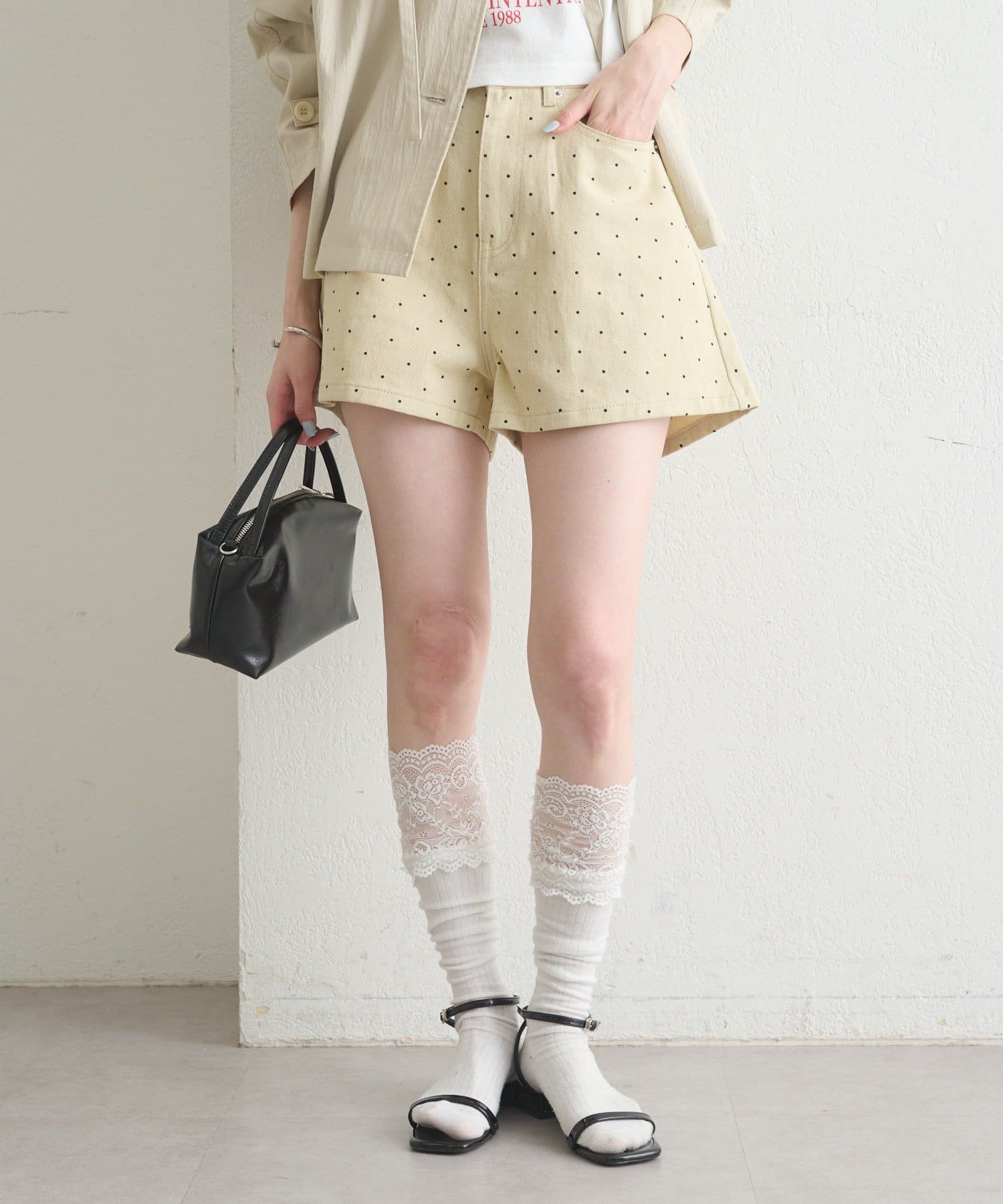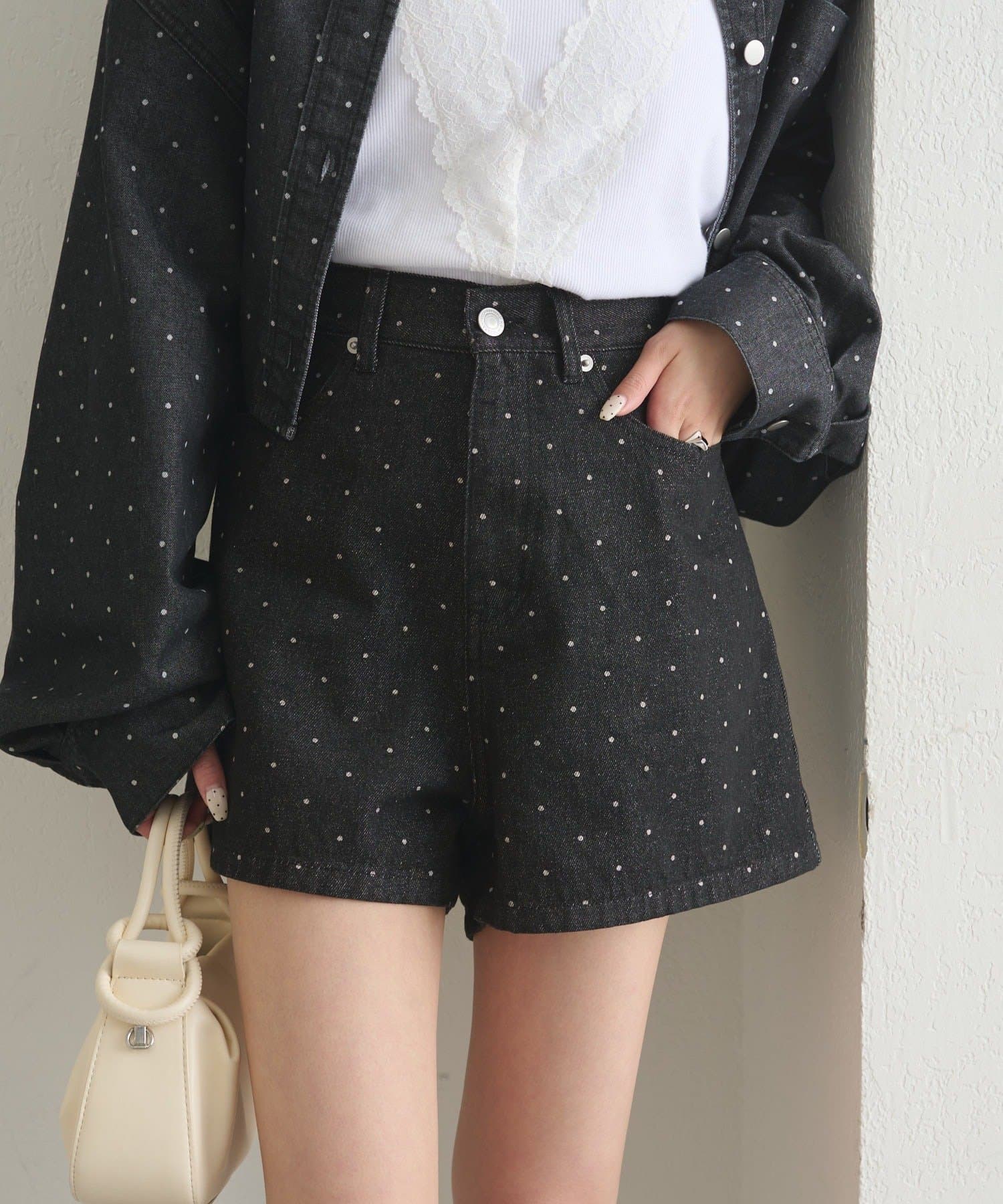 大人可愛いドット柄が目を惹くショートパンツ