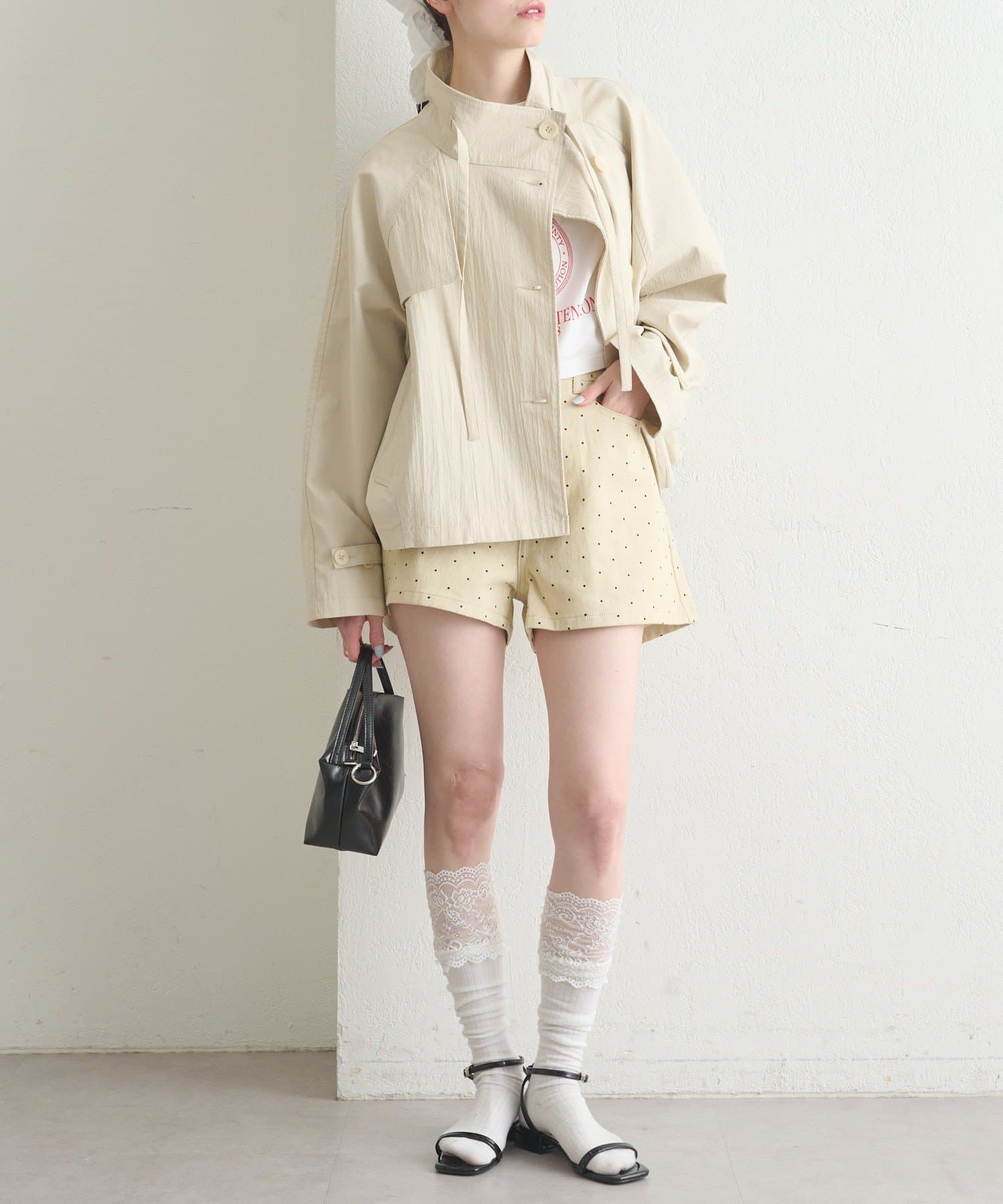 スタンドカラーショートトレンチ