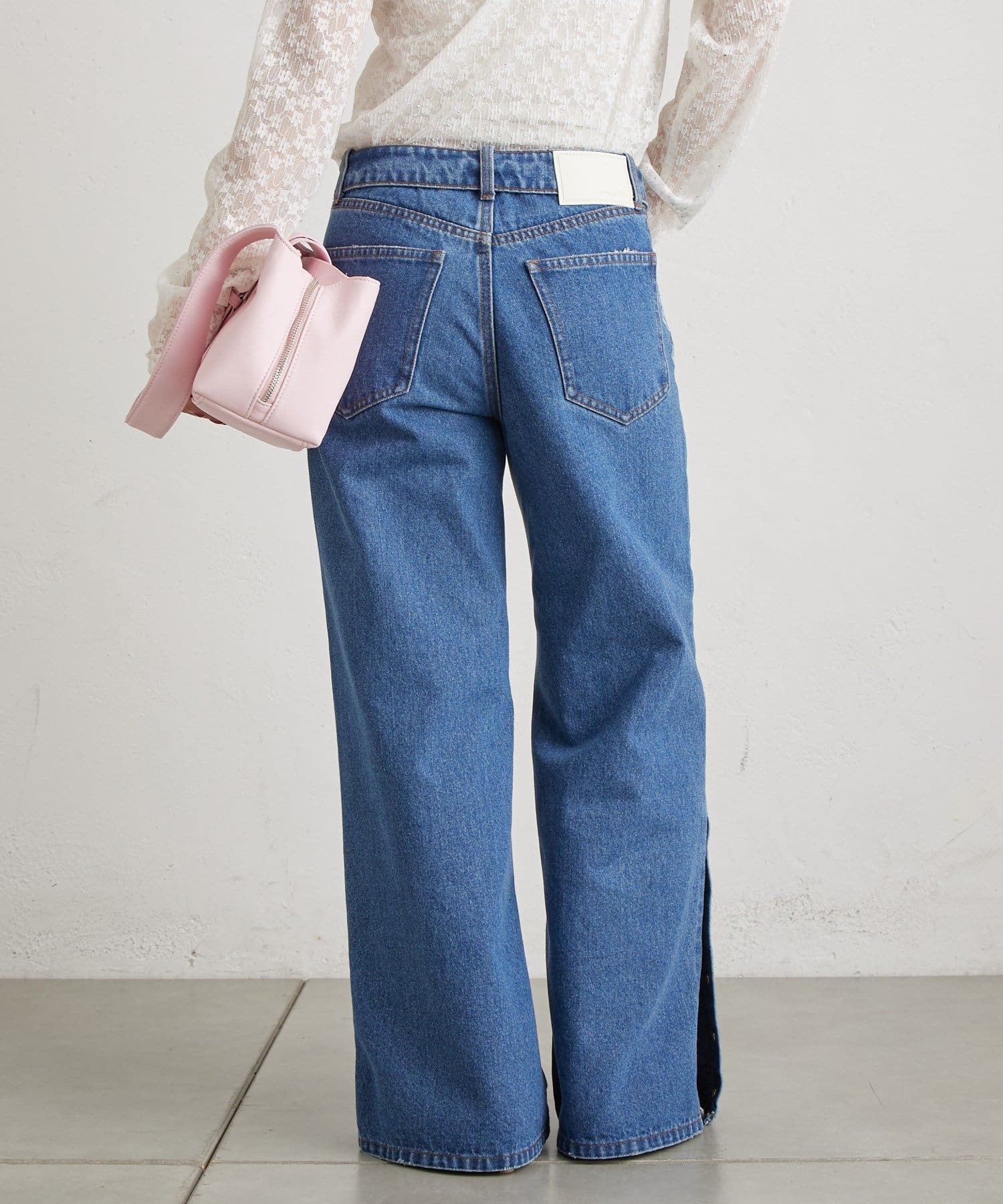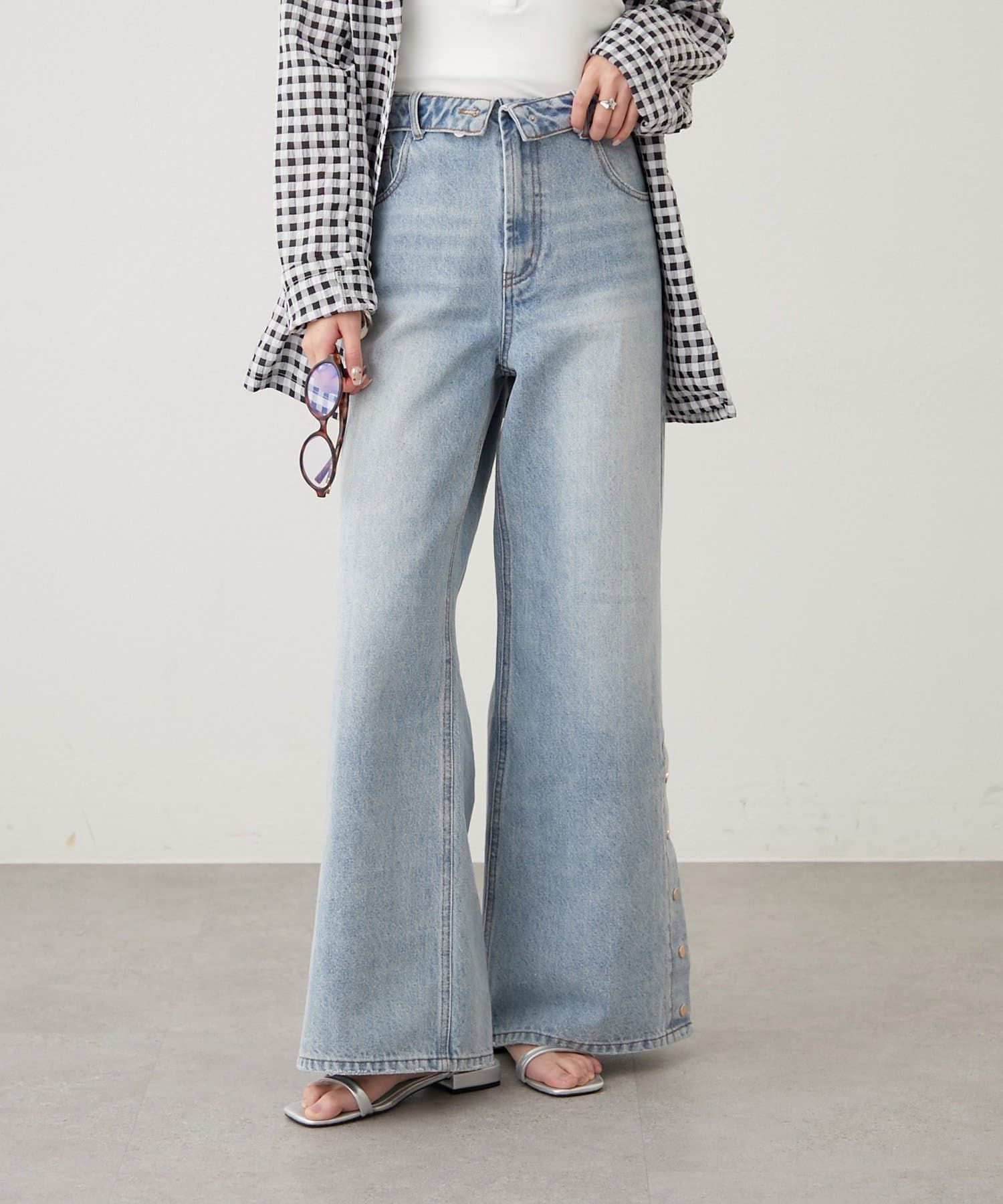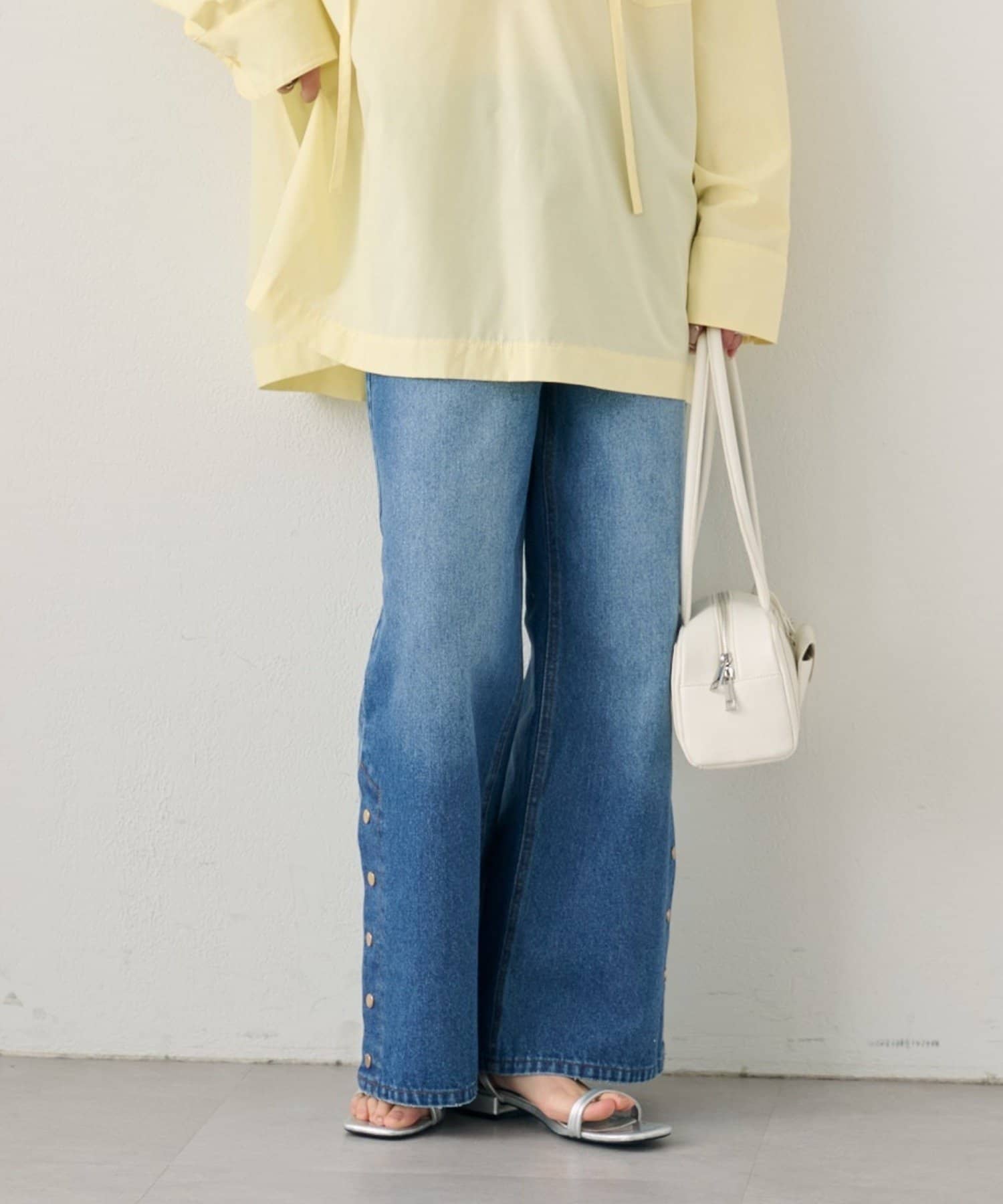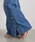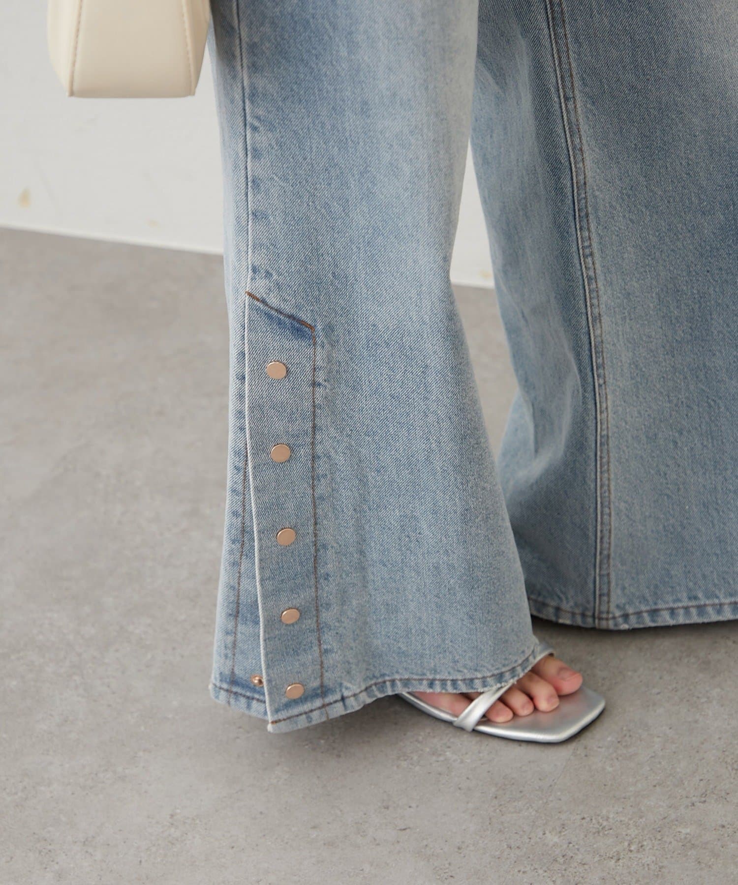 ・裾に施されたボタン×スリットデザインがポイントのフレアデニム。