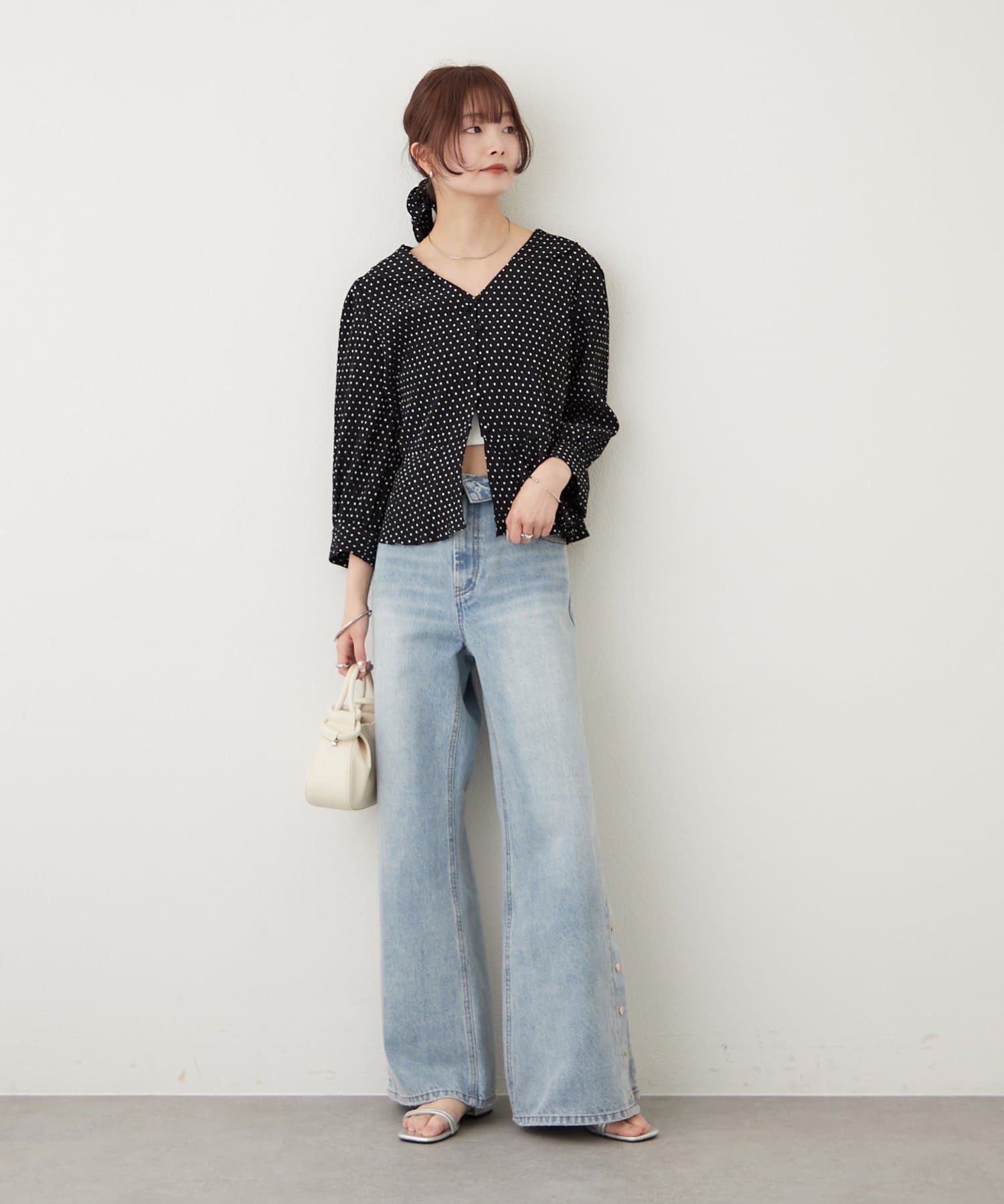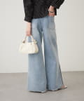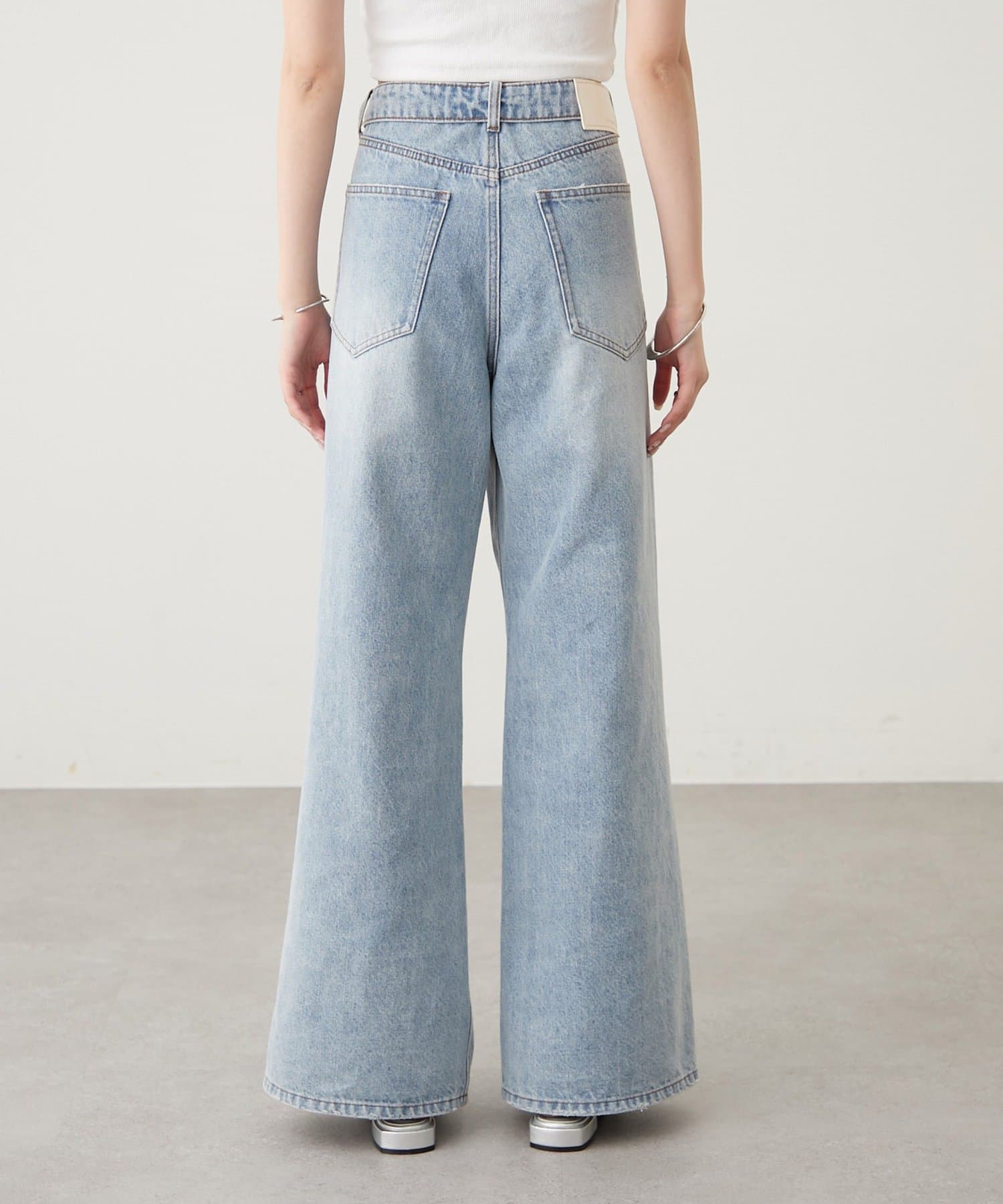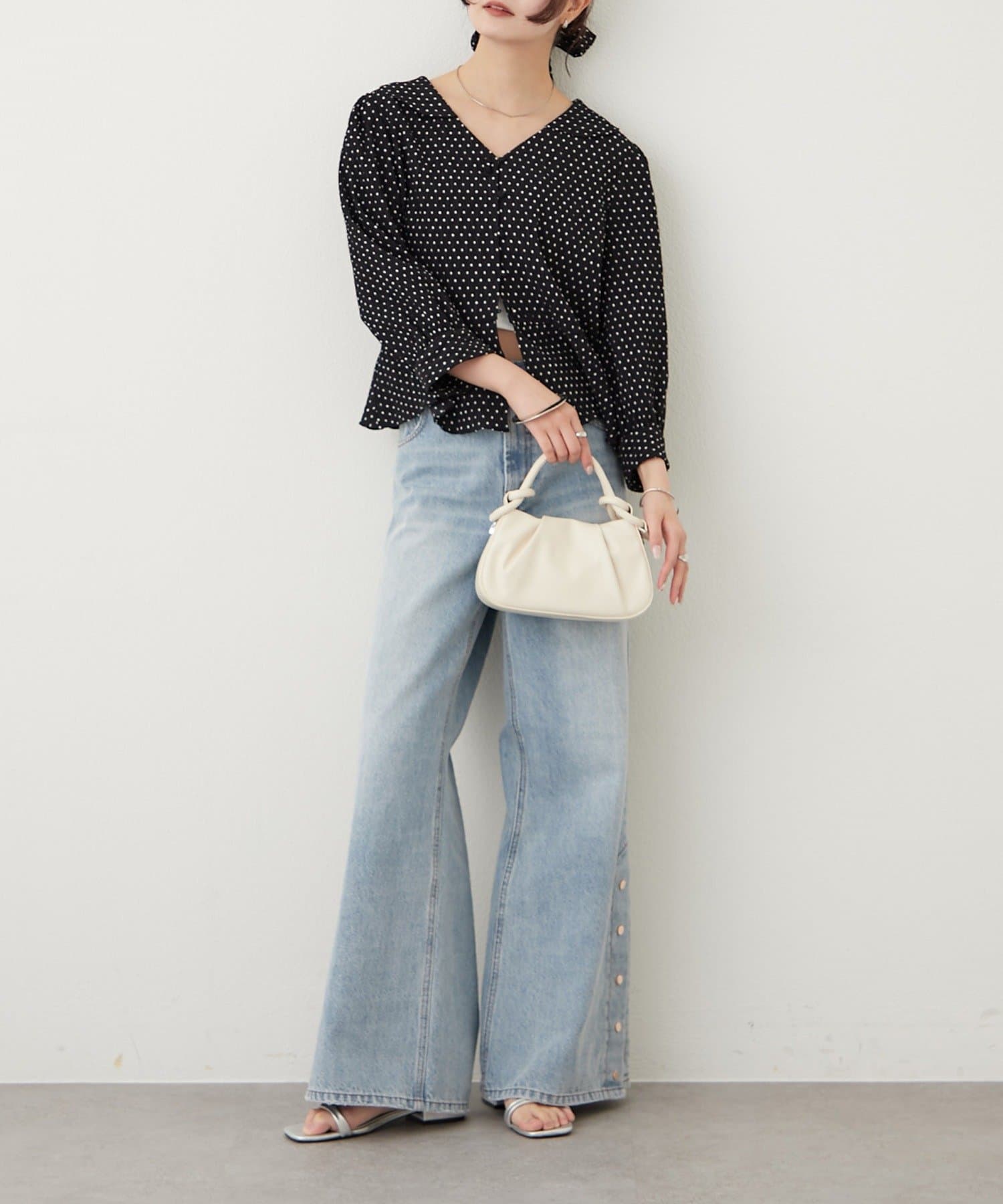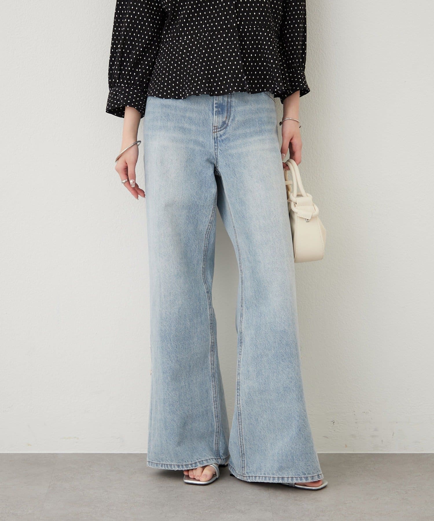・裾に施されたボタン×スリットデザインがポイントのフレアデニム。