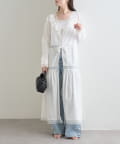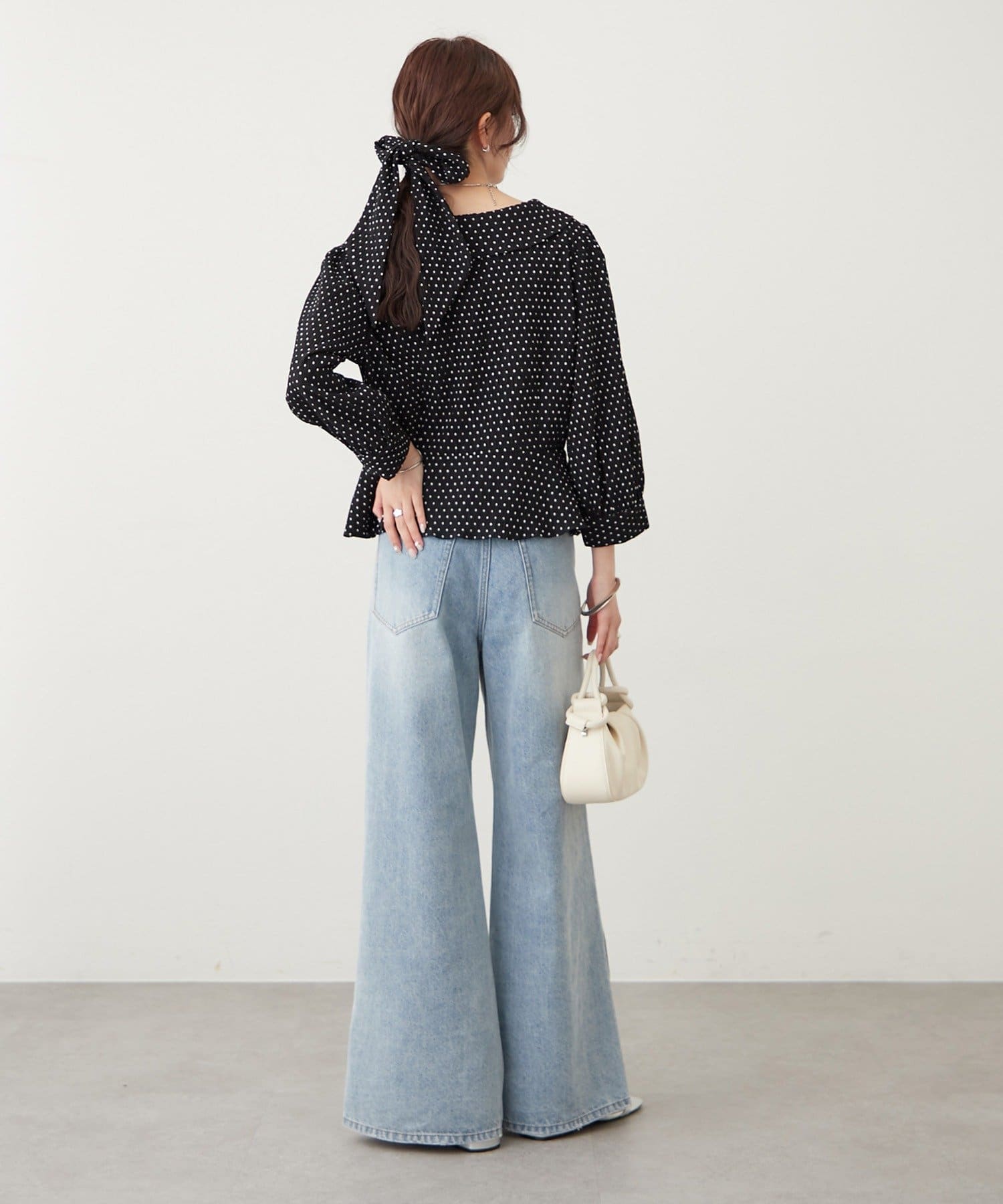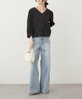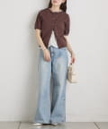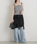 ・コンパクトなトップスを合わせて、ウエストデザインを見せるとスタイリングのアクセントに。