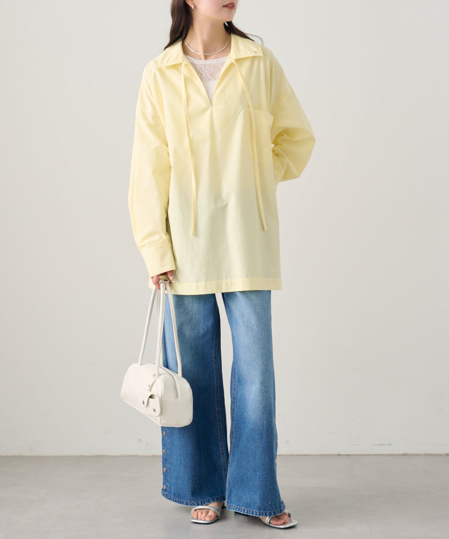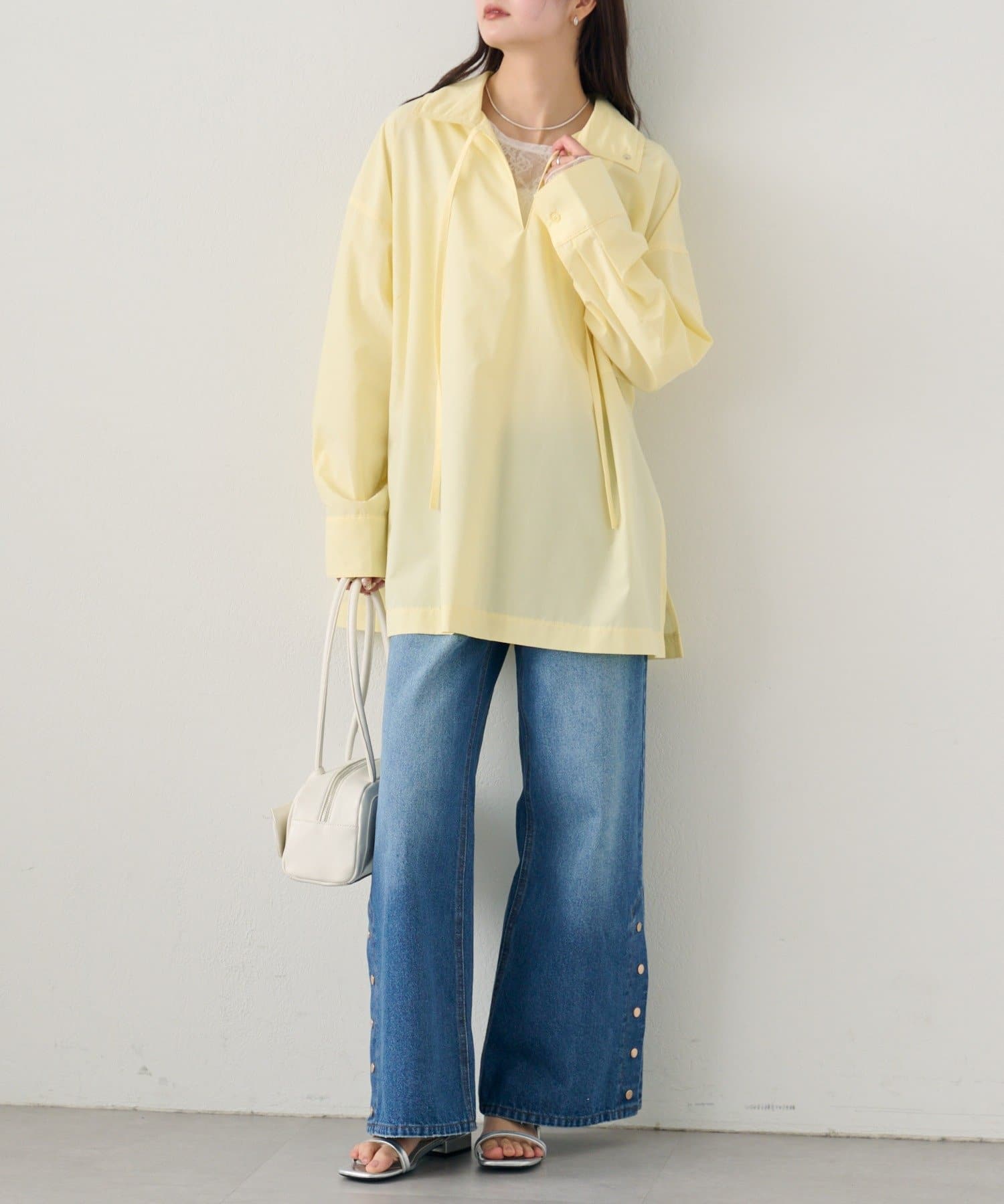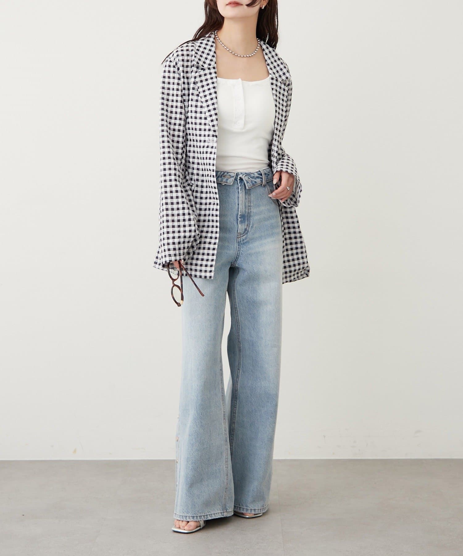 ・ウエスト部分が折り返されたデザインでスタイリングにこなれ感をプラスしてくれます。