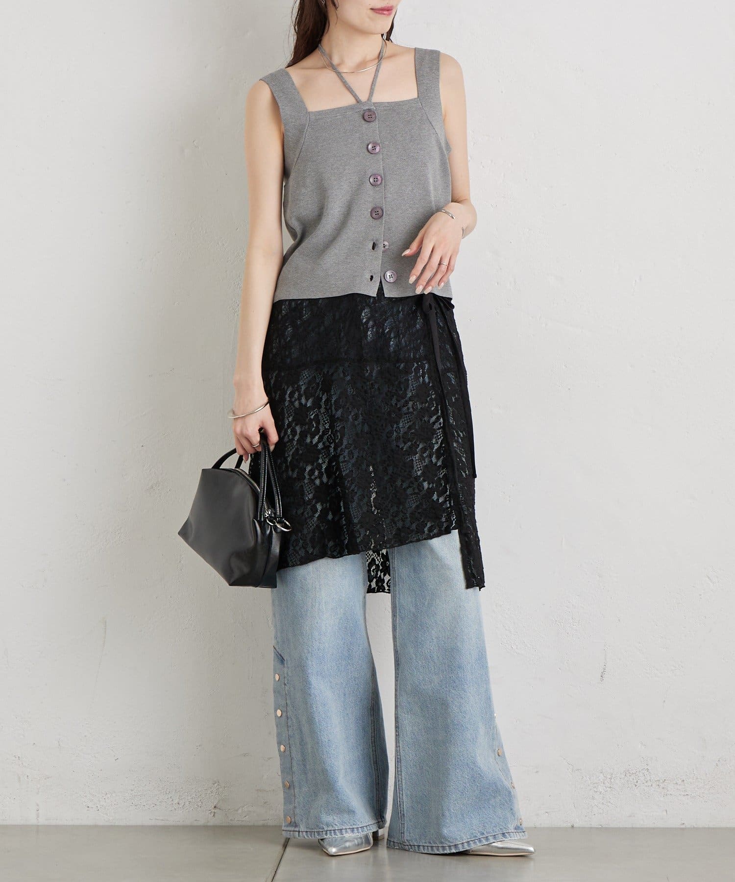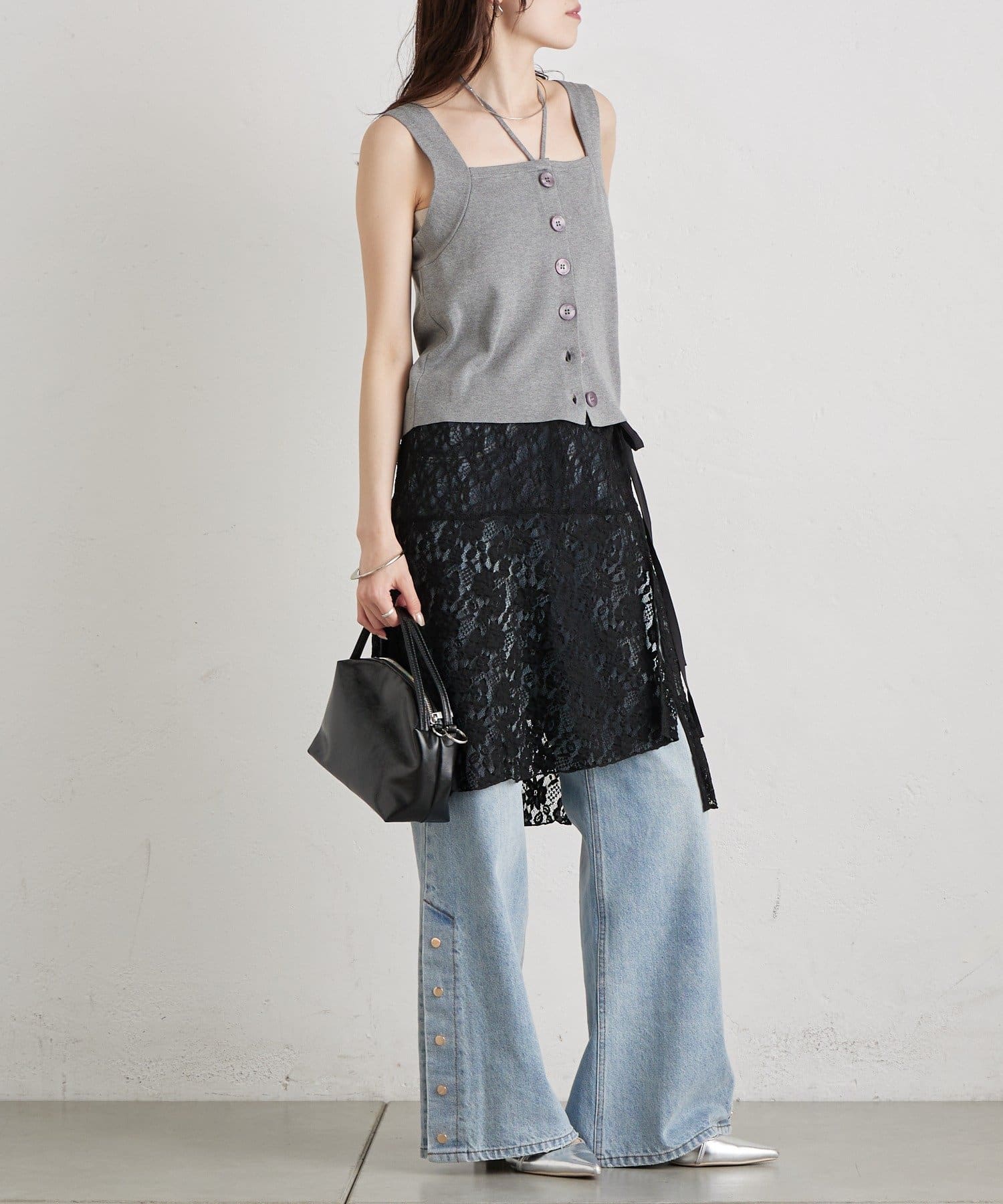 • mystic(ミスティック) ボタンスリットフレアデニム