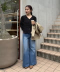 ・裾に施されたボタン×スリットデザインがポイントのフレアデニム。