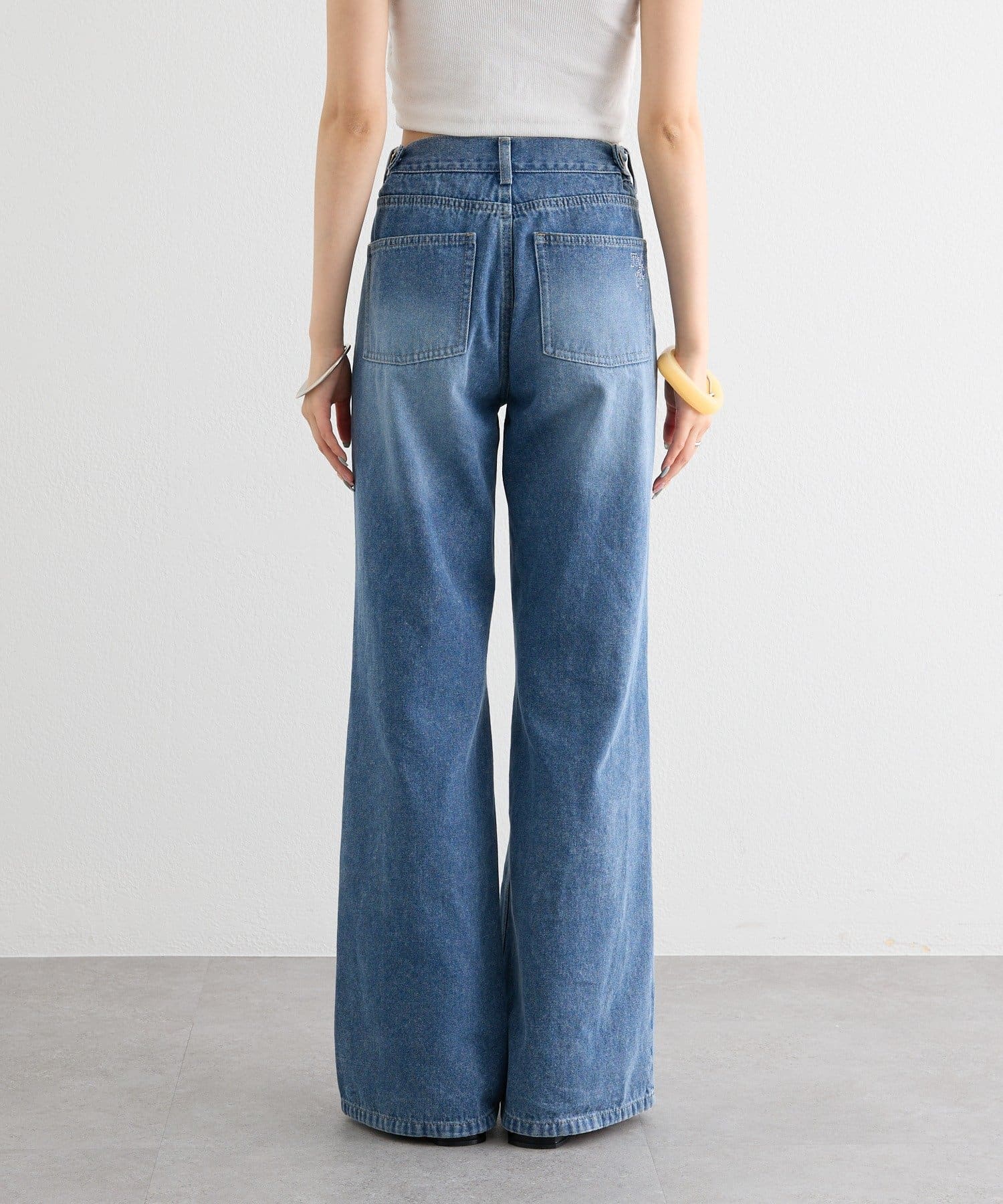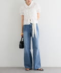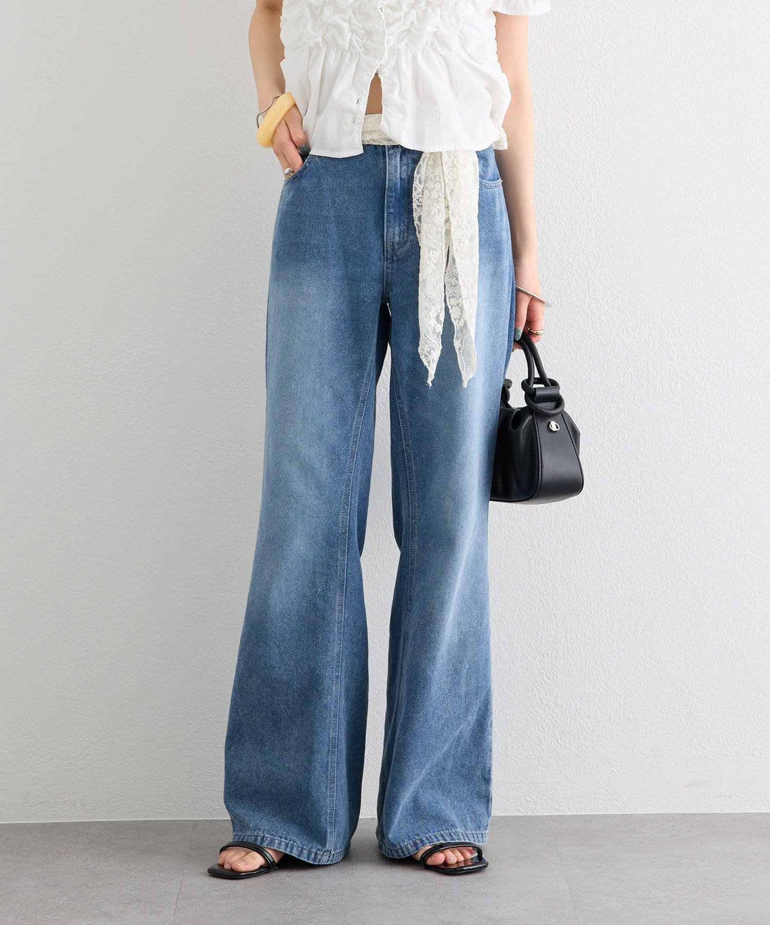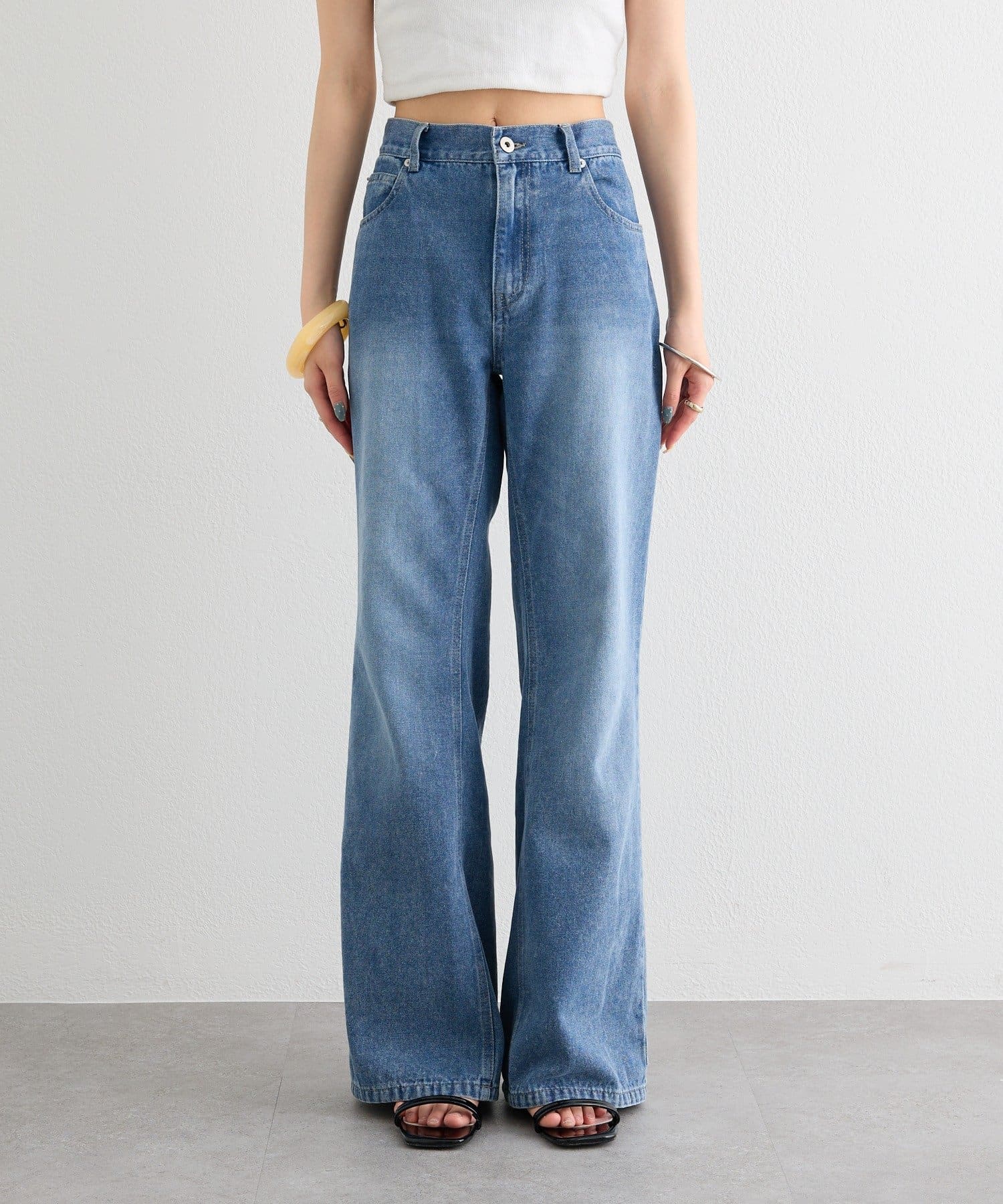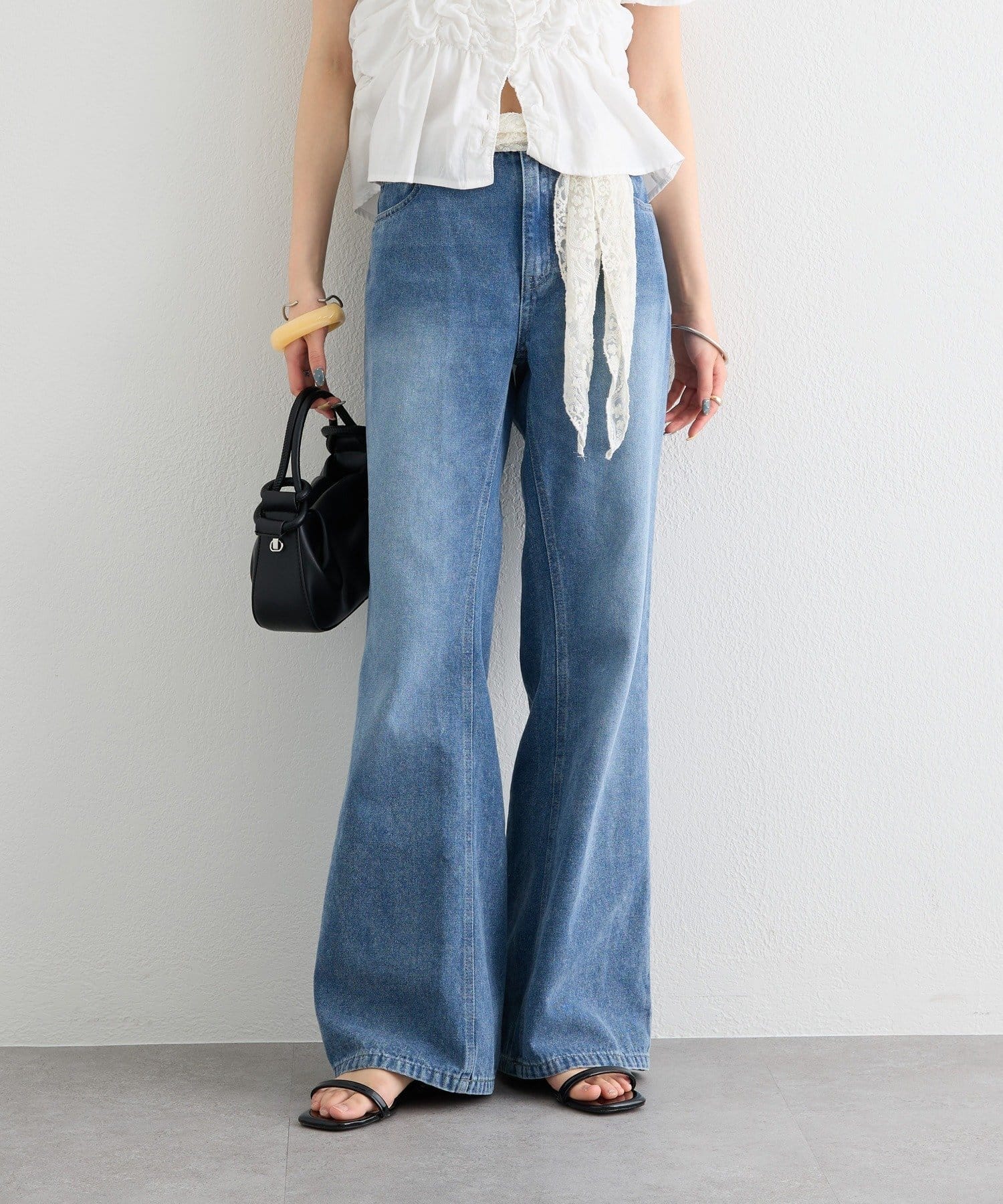 ・膝下から広がるフレアシルエットが特徴のデニムパンツ。