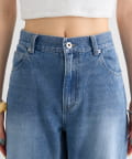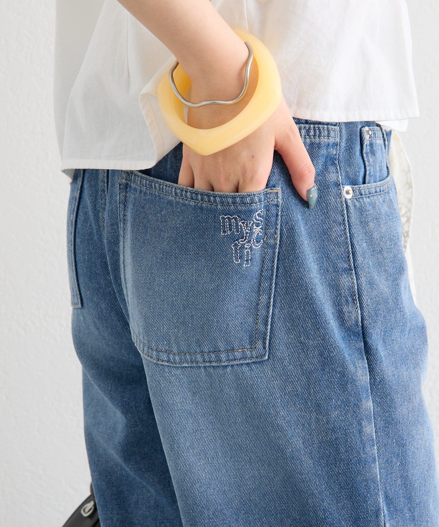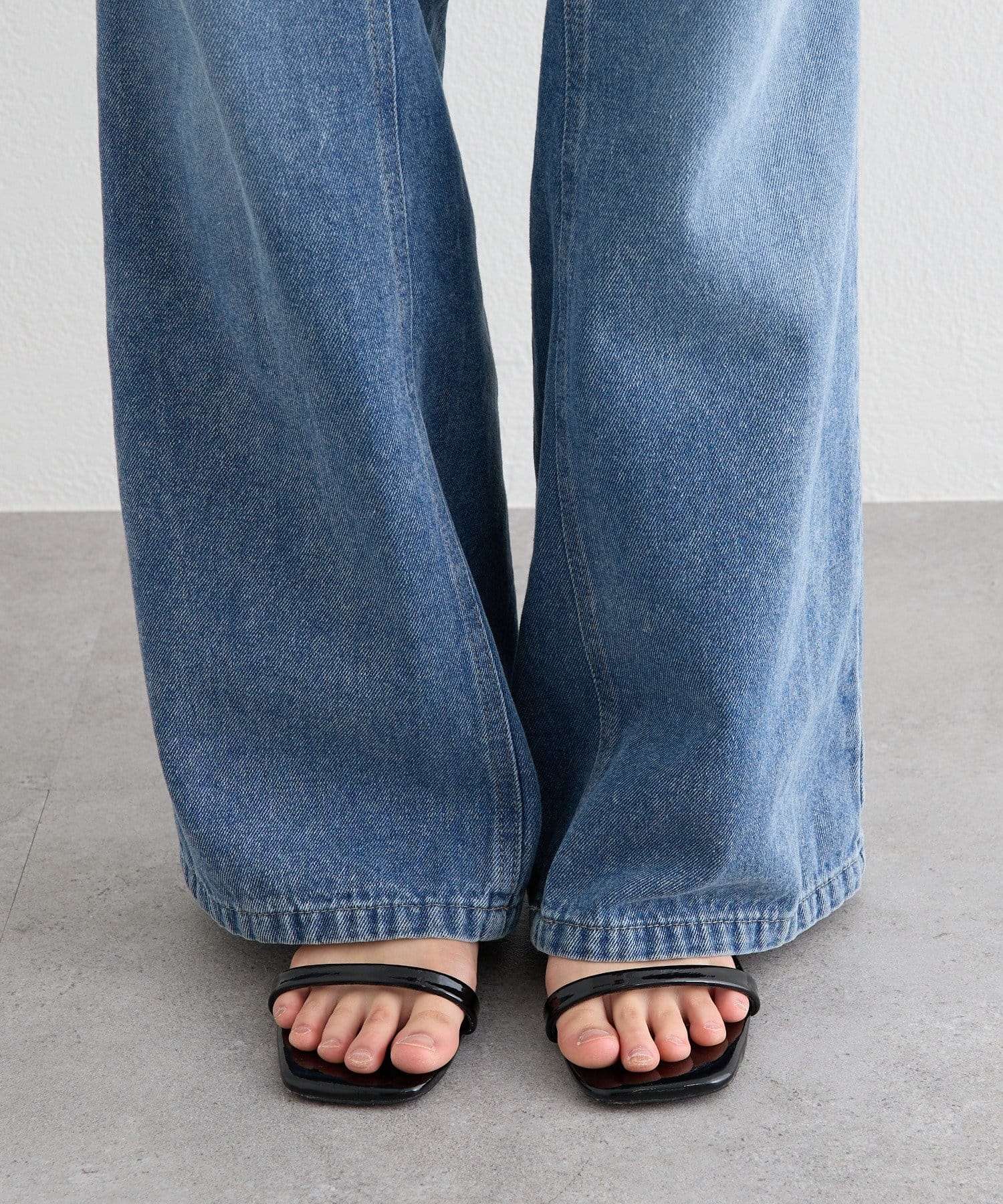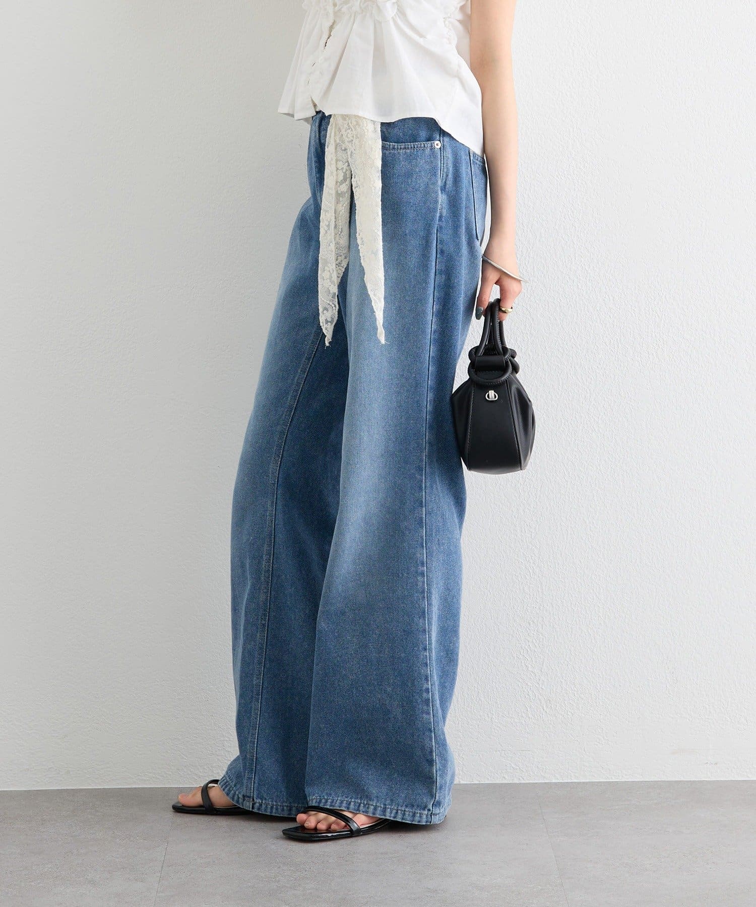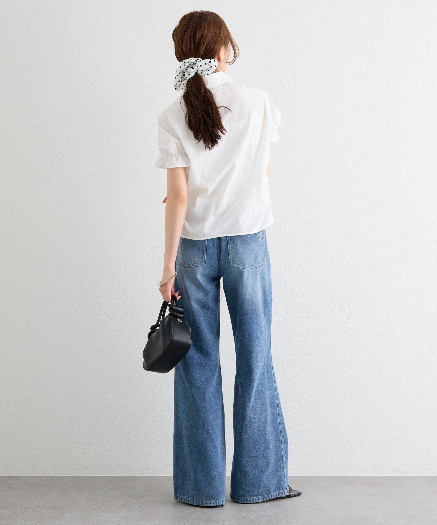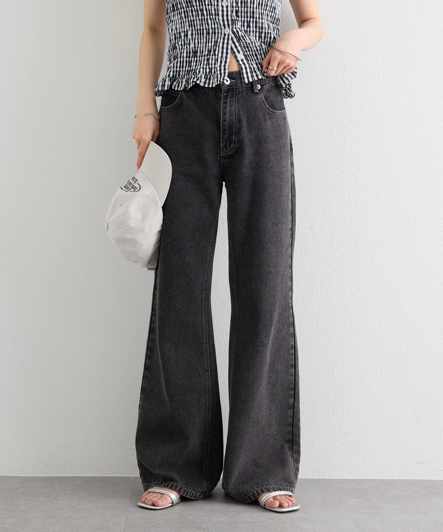 ・膝下から広がるフレアシルエットが特徴のデニムパンツ。