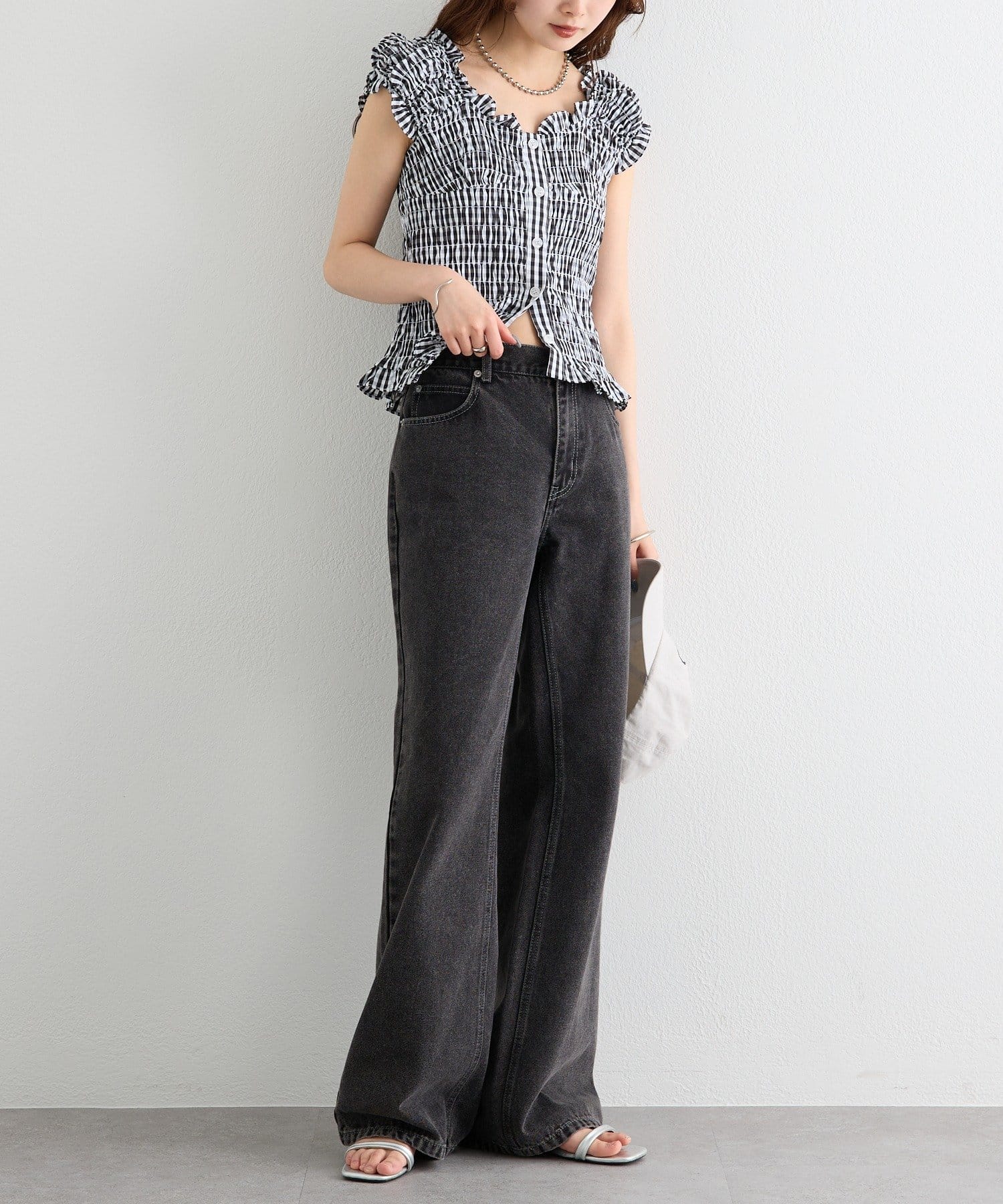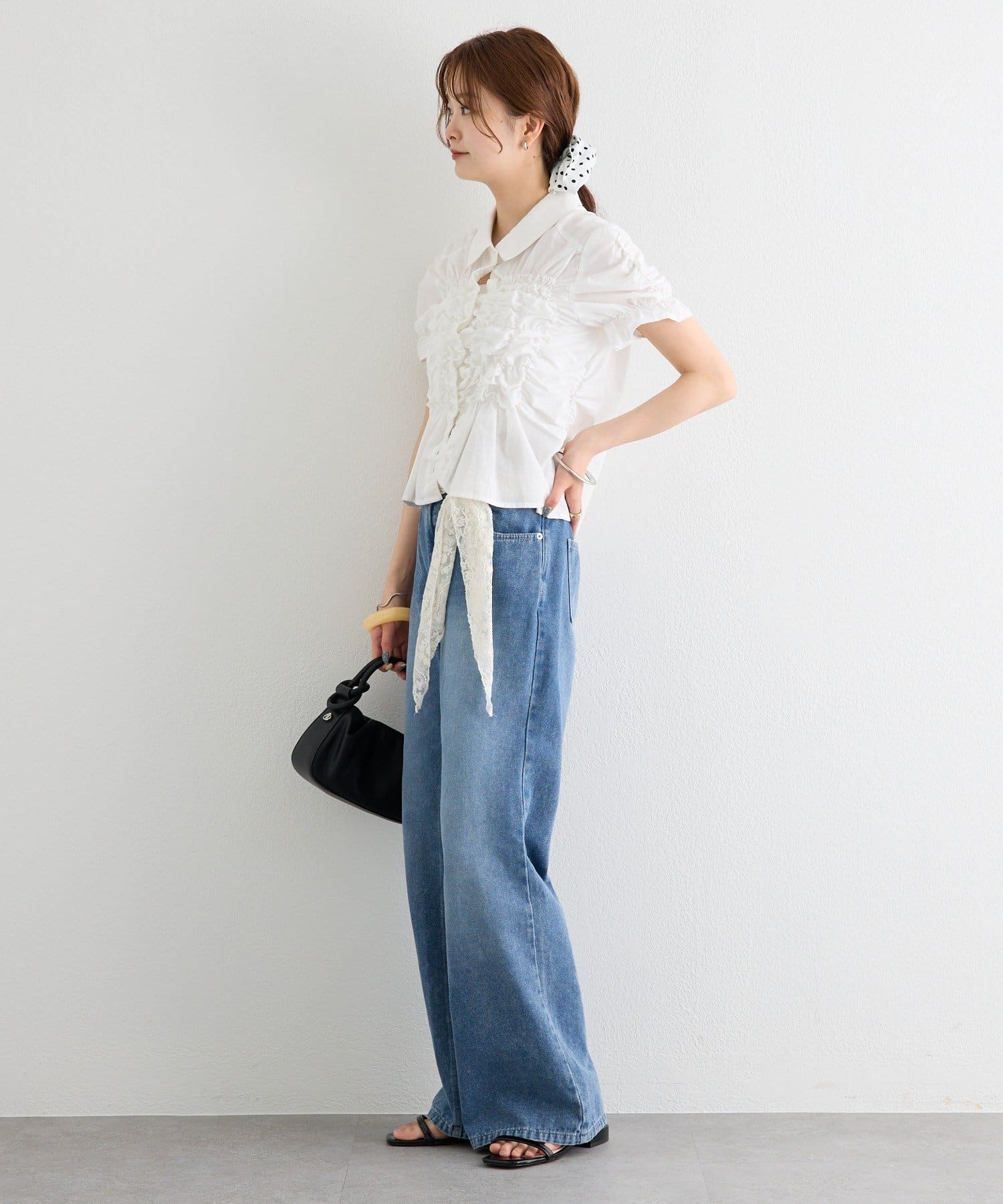 ・ブラウスを合わせて、カジュアルすぎない大人っぽい着こなしにも◎