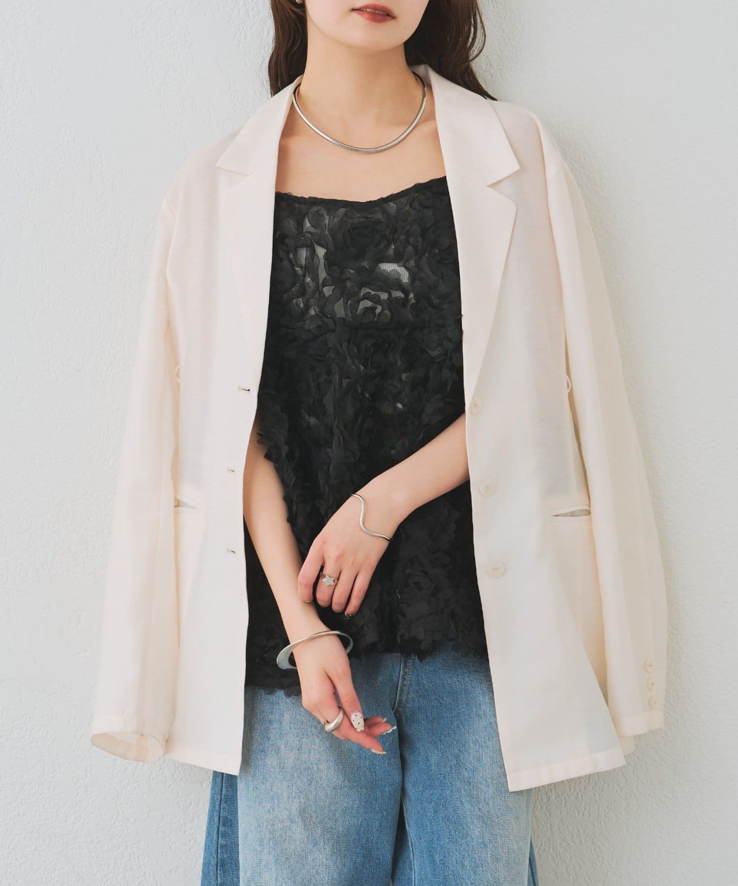 ・ロゴTやシンプルなカットソーにレイヤードするだけでトレンド感のある着こなしになります。