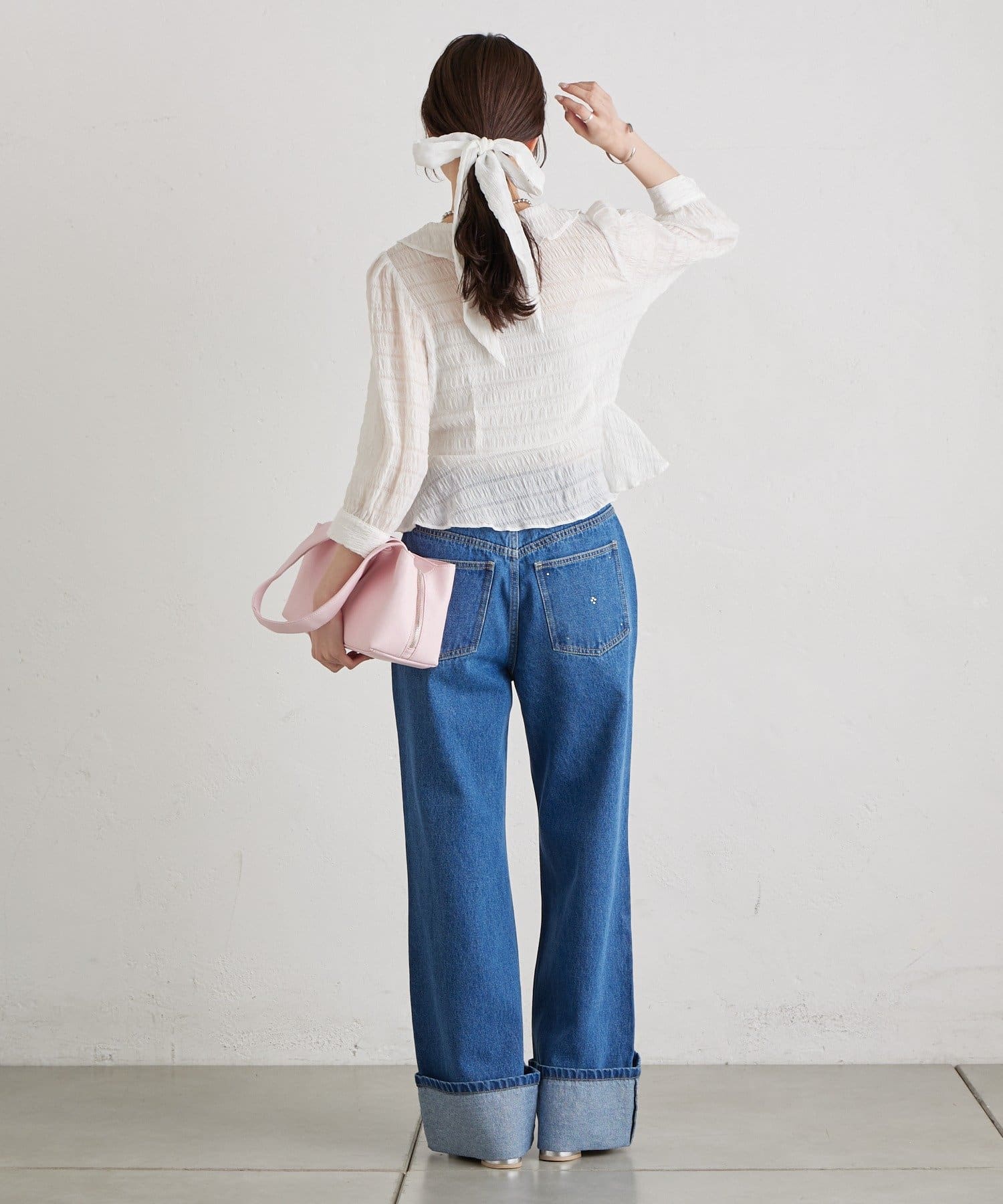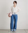 ・デニム合わせでカジュアルダウンしても、程よく甘さが残る大人フェミニンなバランスに。